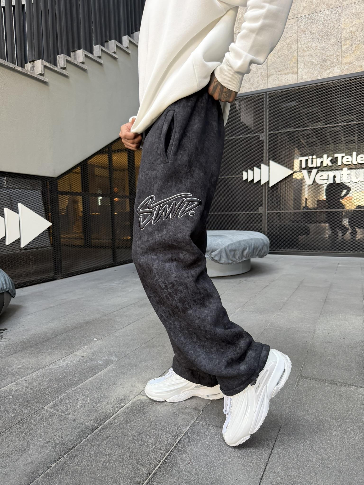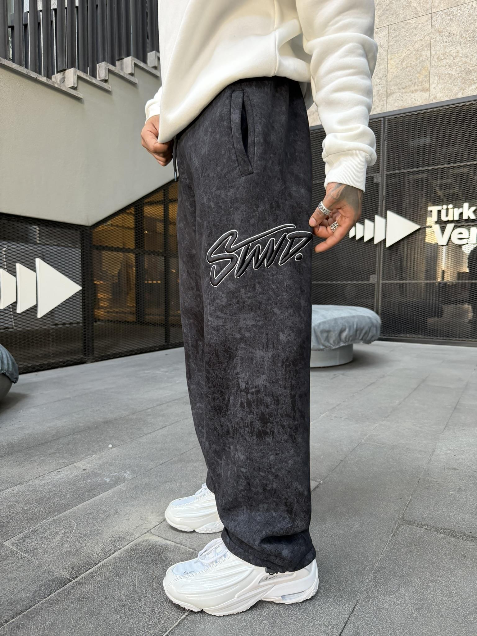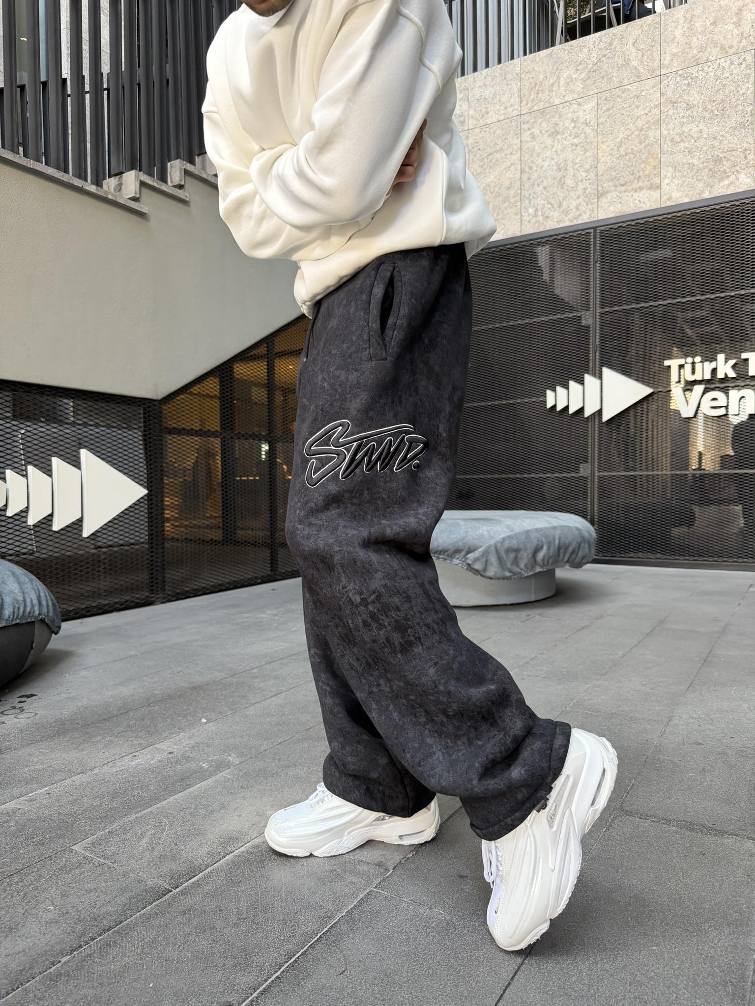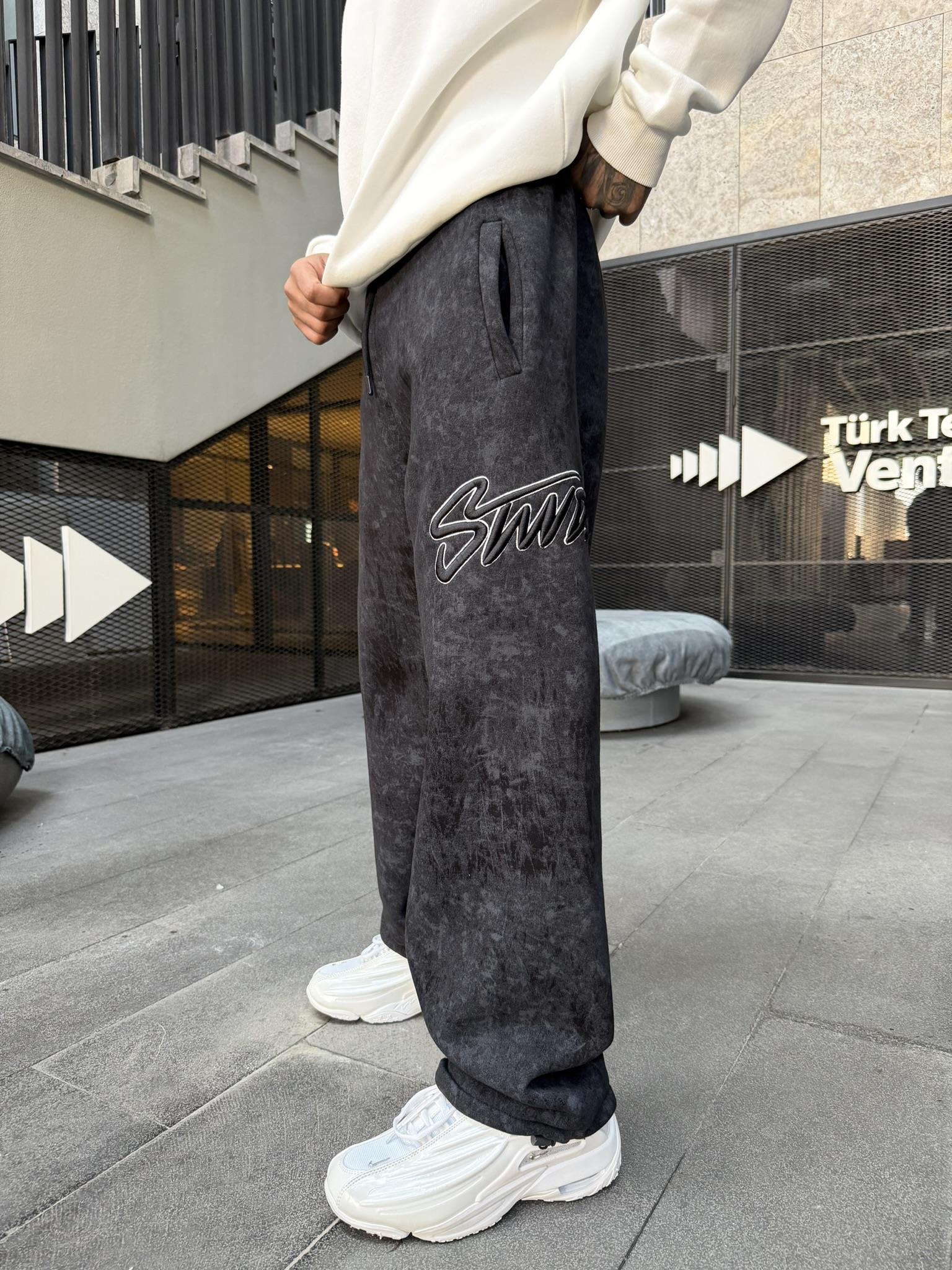 Premium Acid İşlemeli SW Yıkamalı Baggy Eşofman - Siyah (EŞF.0037-Siyah-S)