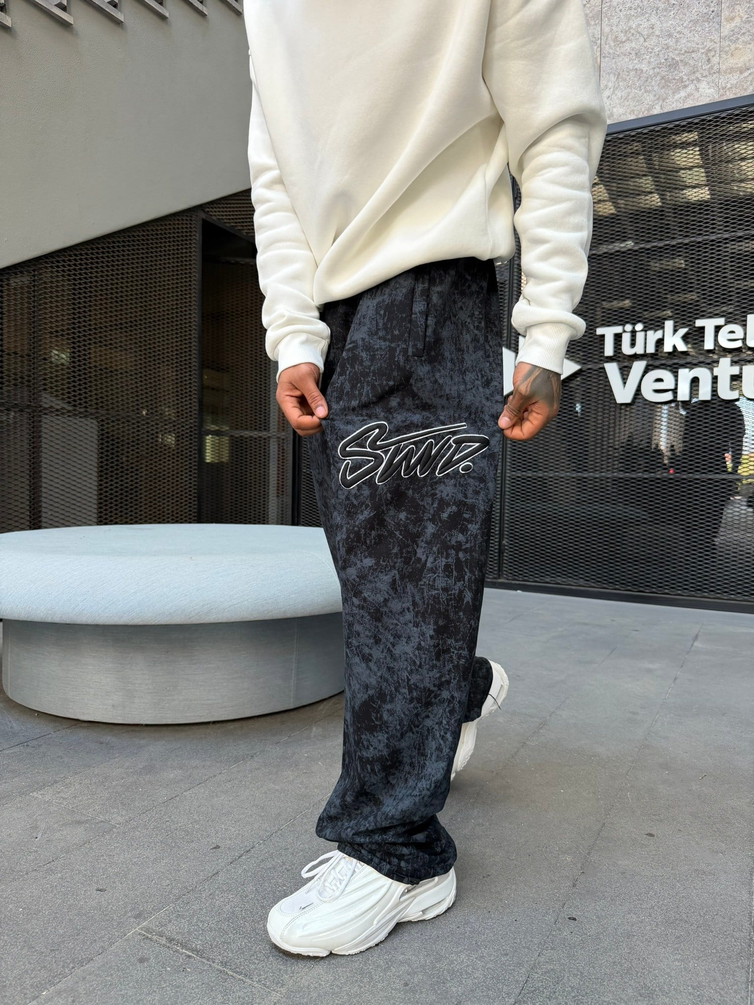 Premium Acid Yıkama Nakışlı Eşofman - Siyah (EŞF.0074-Siyah-S)
