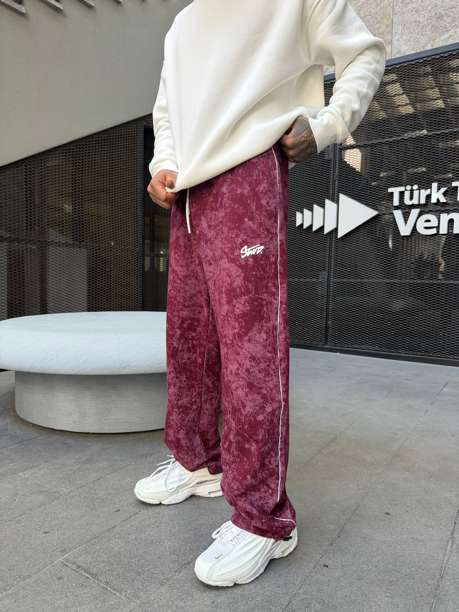 Premium Acid Yıkama Şeritli Enjeksiyon Baskı Eşofman - Bordo (EŞF.0075-Bordo-S)