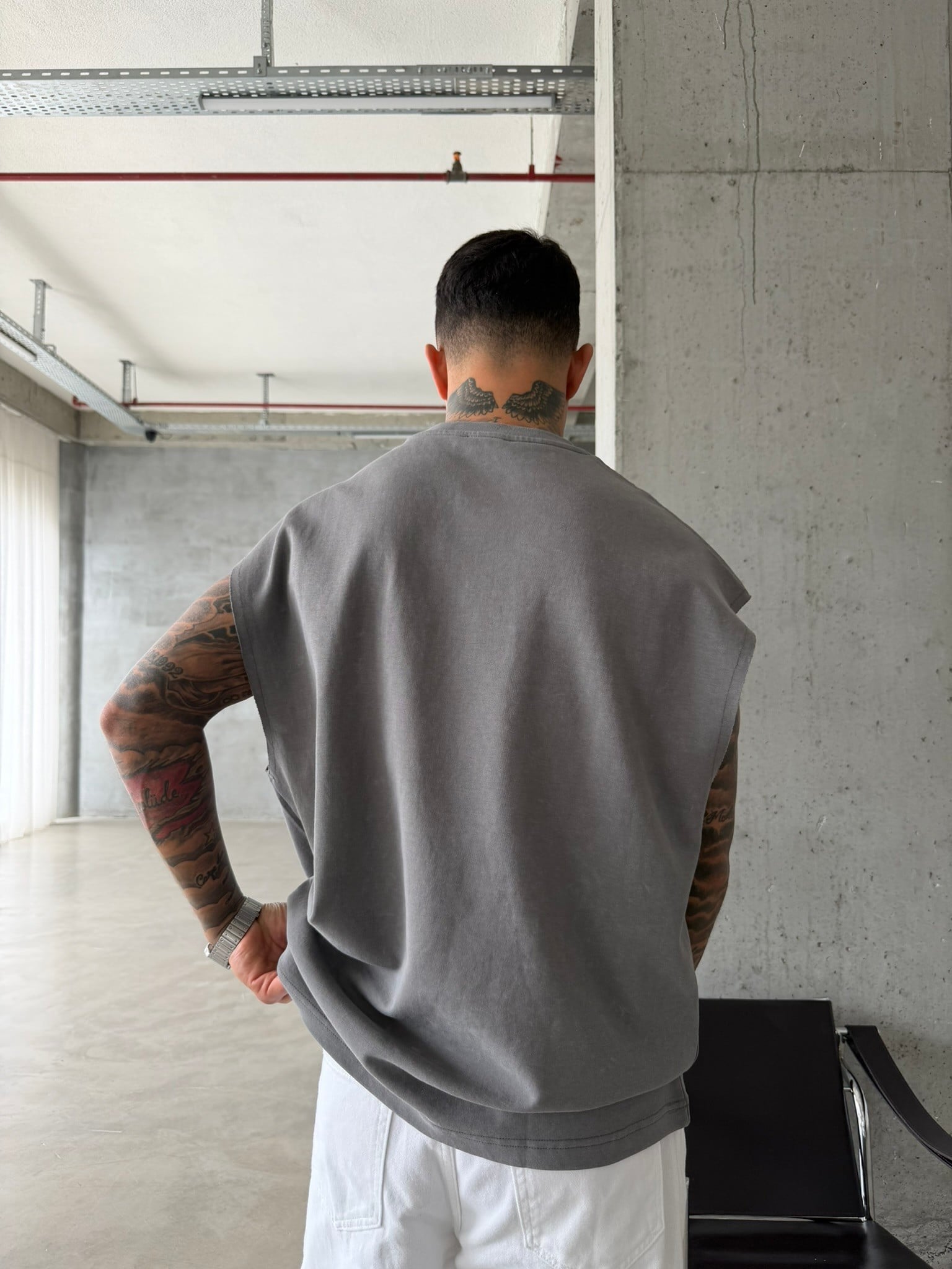 Premium Acid Yıkamalı Sıfır Kol T-Shirt - Gri (TST.0156-Gri-S)