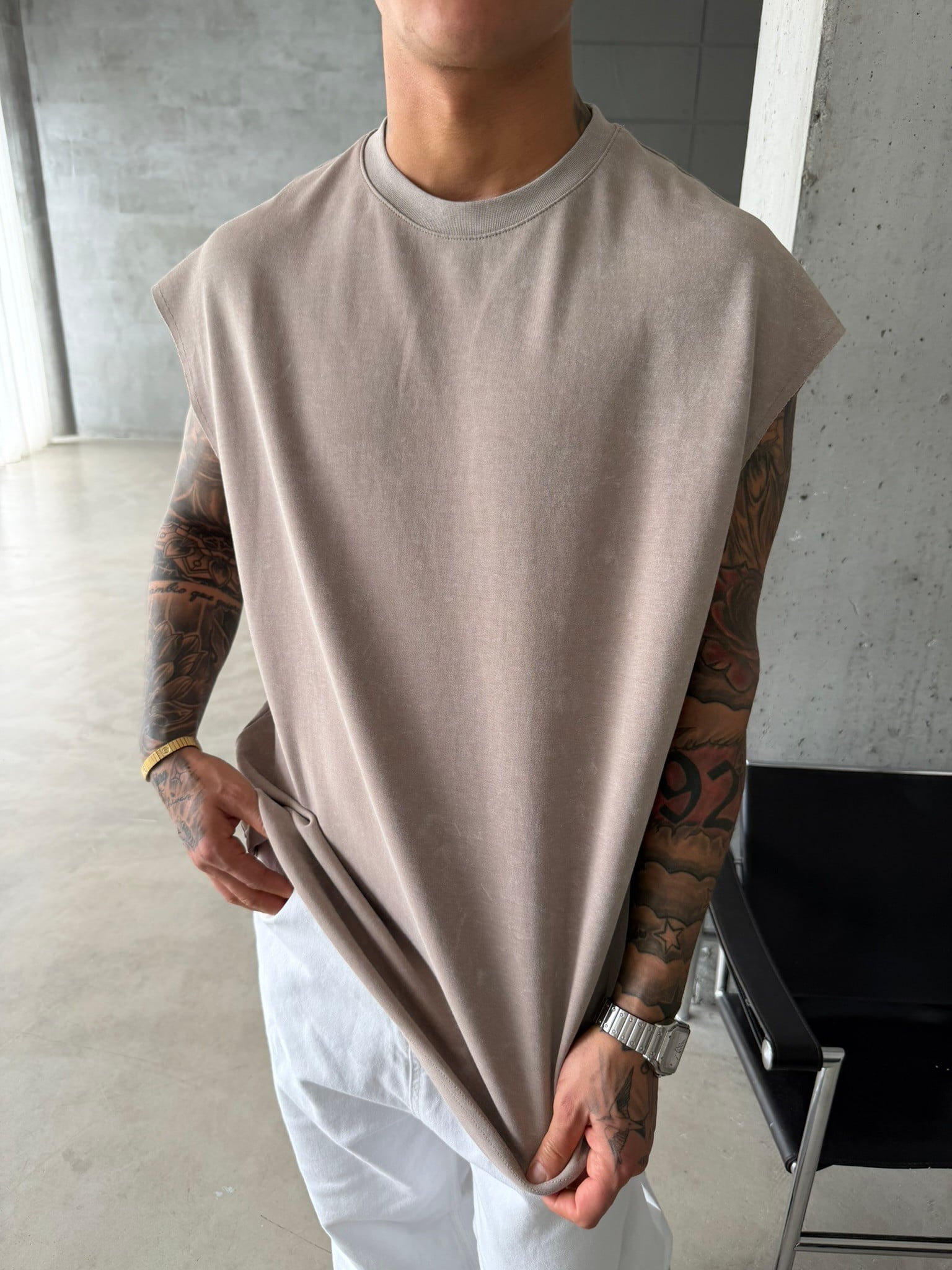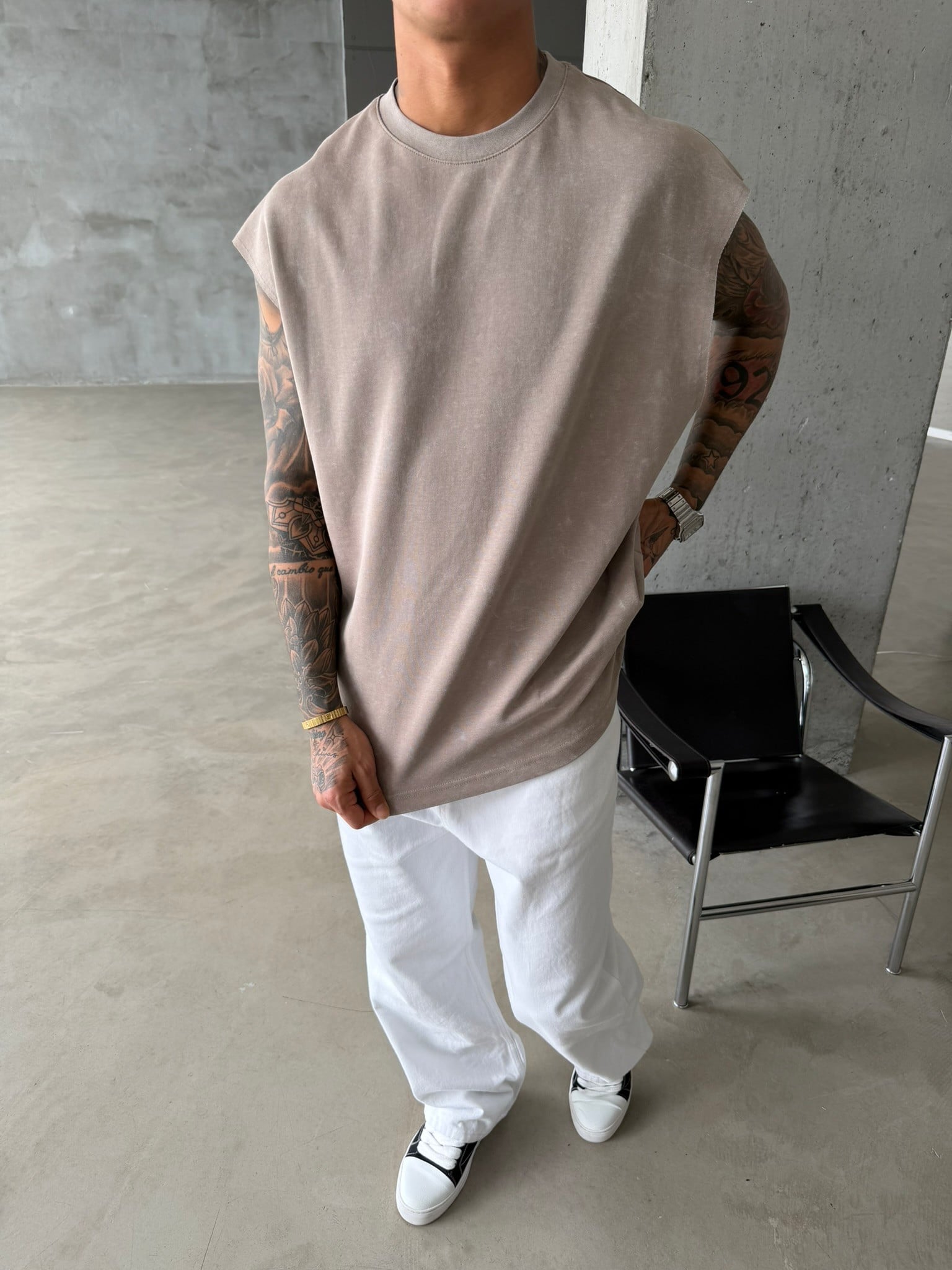 Premium Acid Yıkamalı Sıfır Kol T-Shirt - Taş (TST.0156-Taş-S)