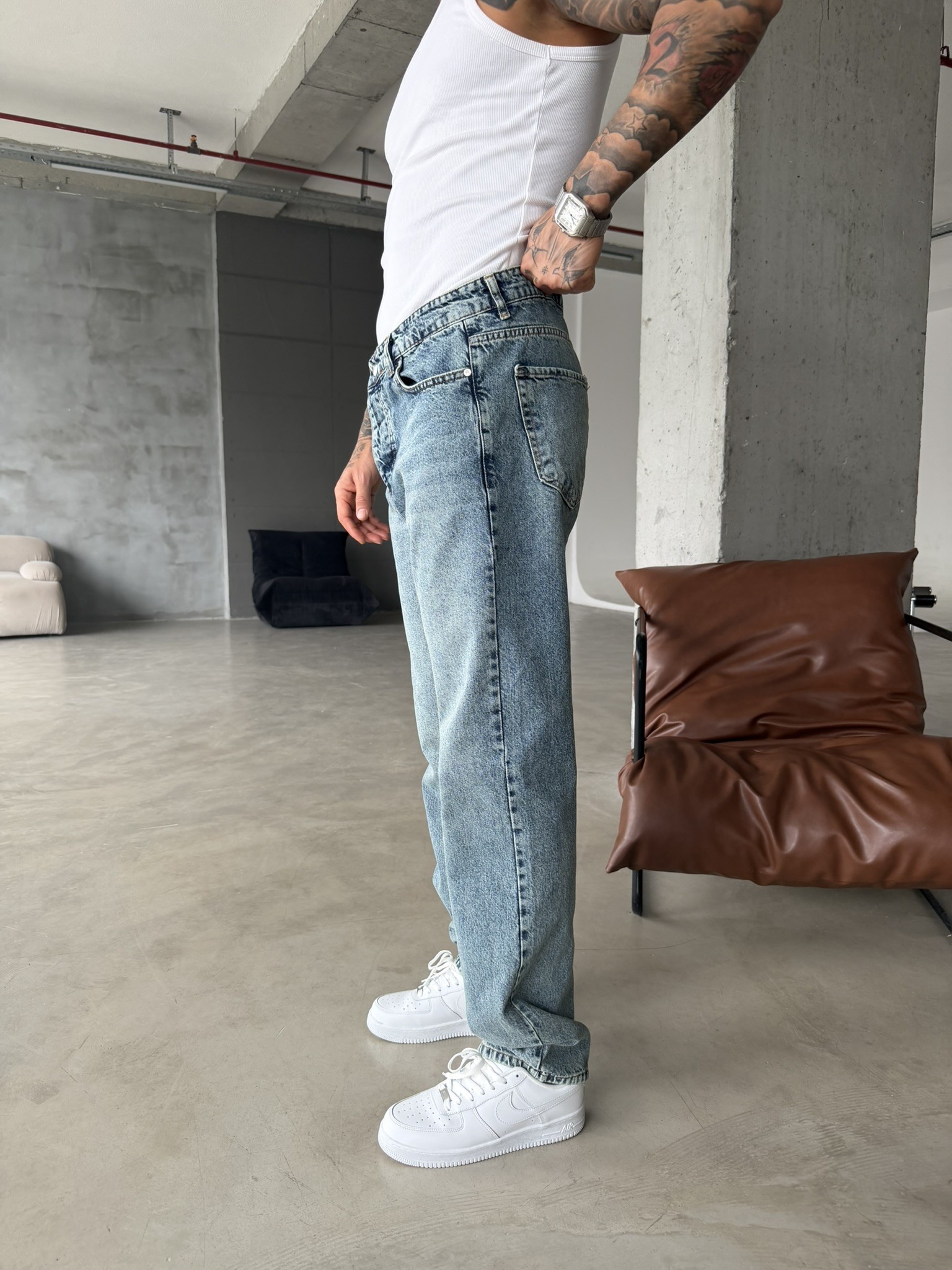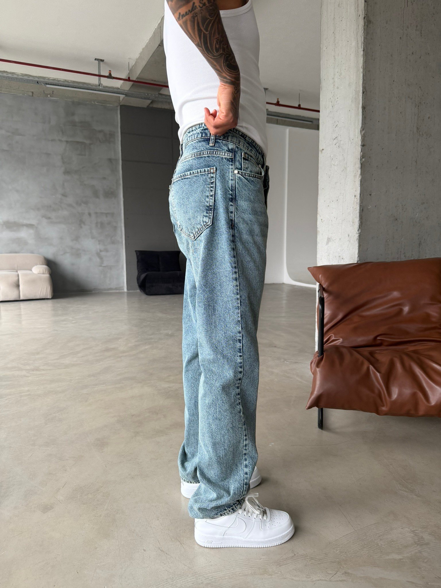 Premium Düz Basic Baggy Fit Pantolon - İndigo (PNT.0122-İndigo-29)