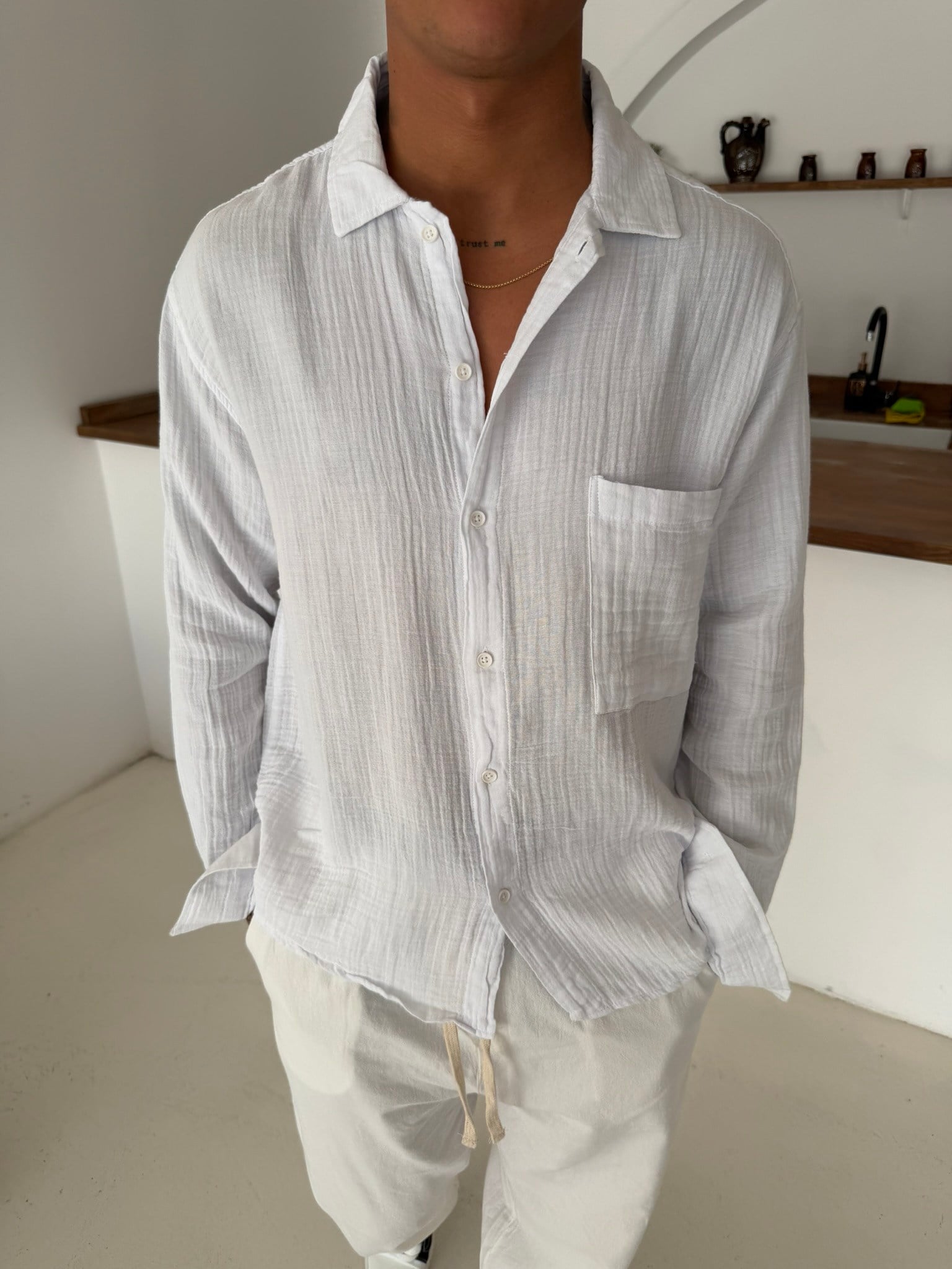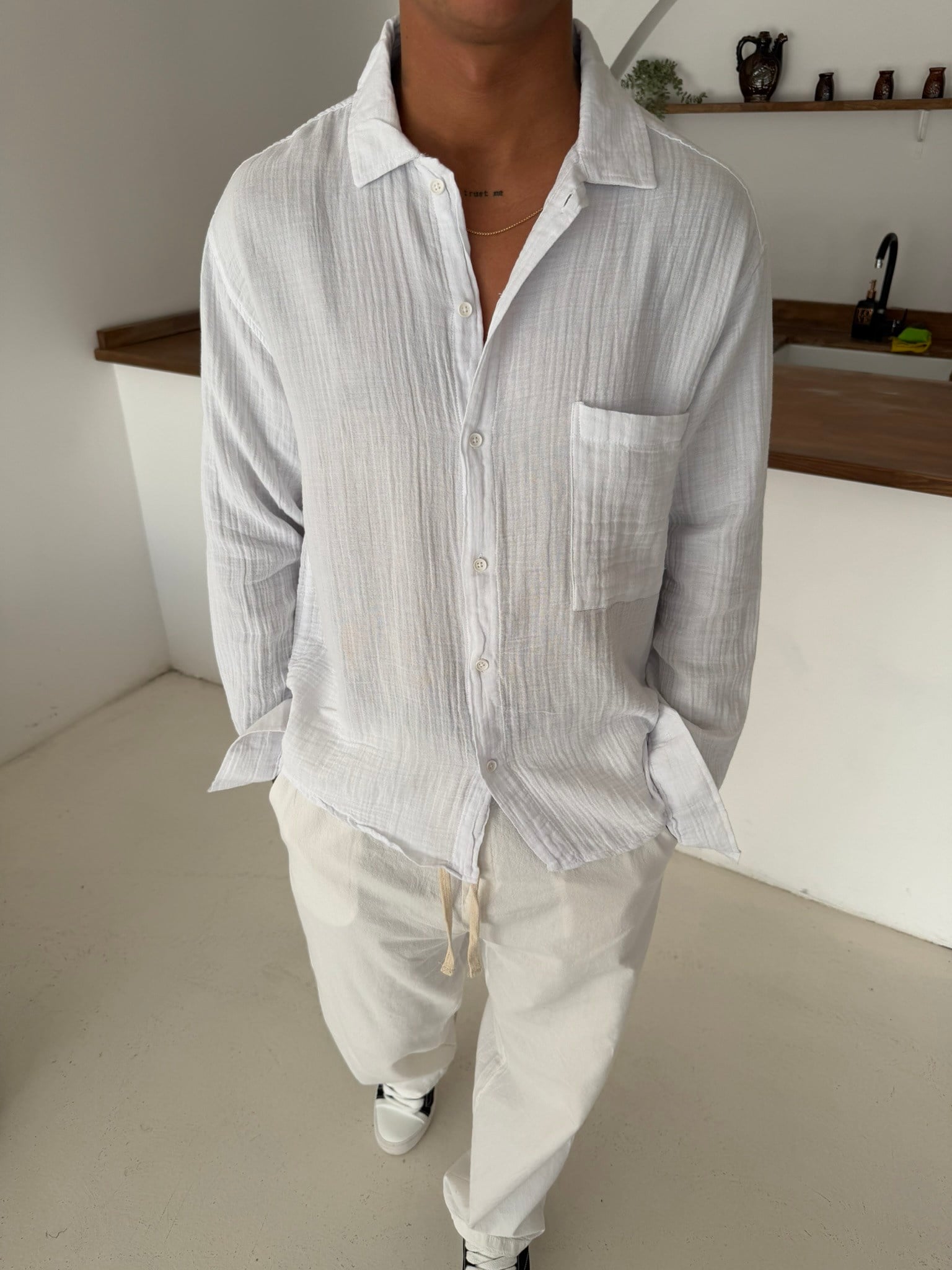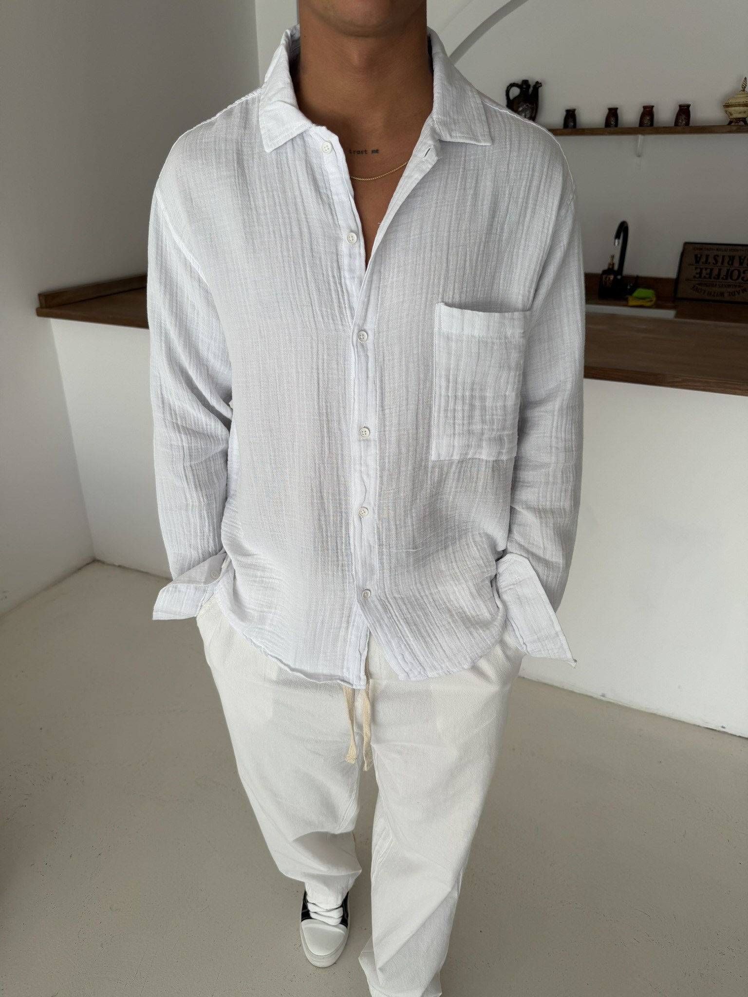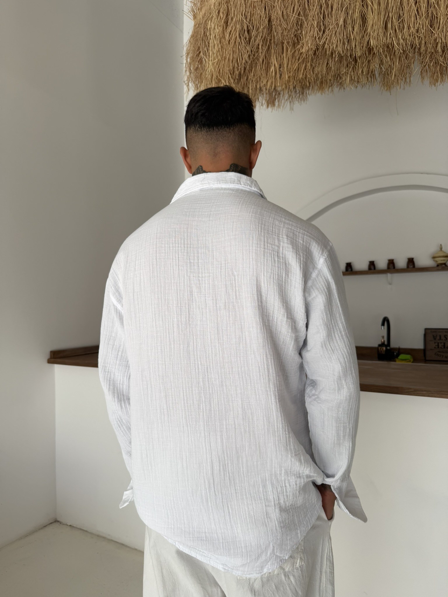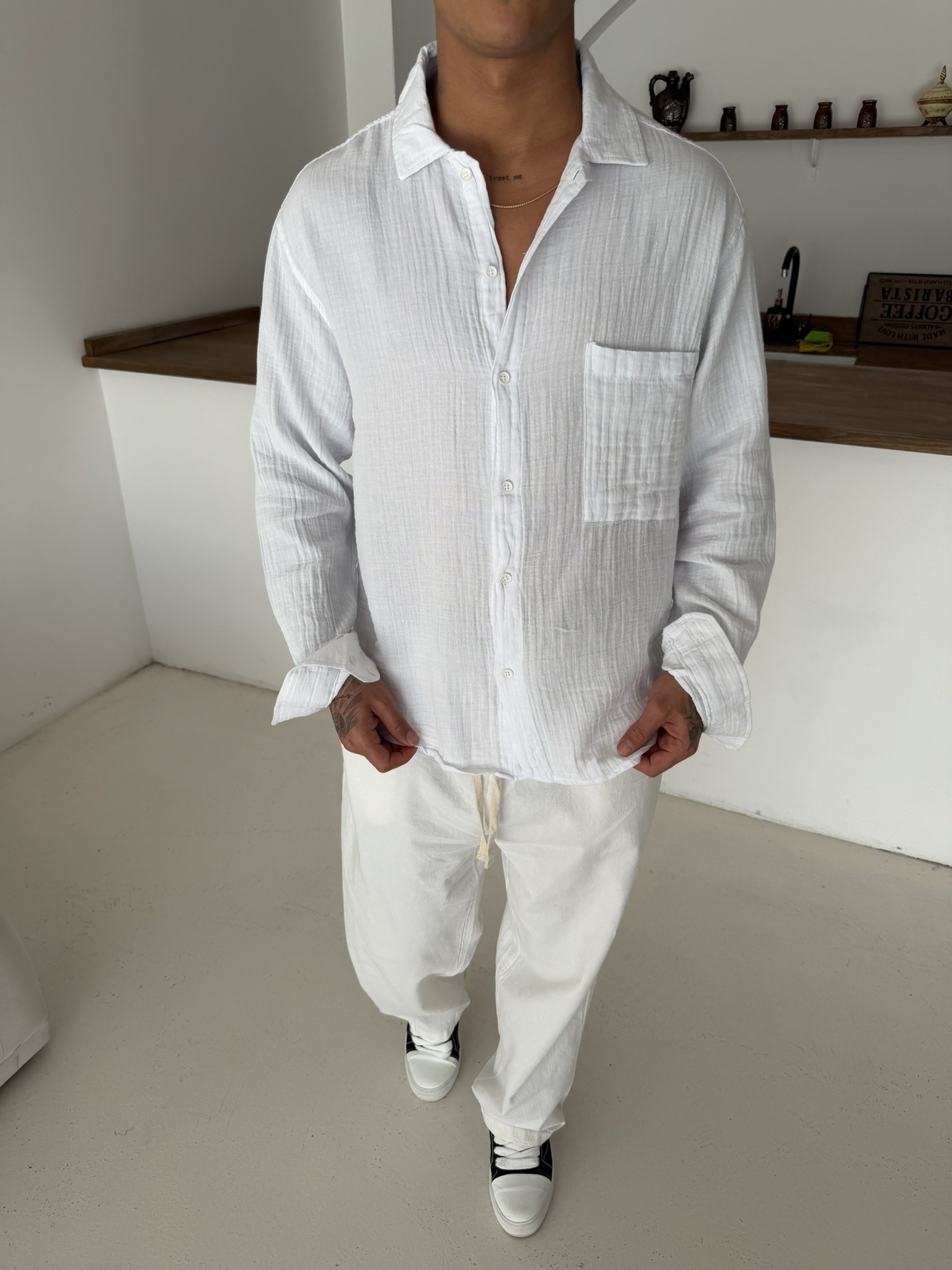 Premium Müslin Kumaş Gömlek - Beyaz (GML.0045-Beyaz-S)