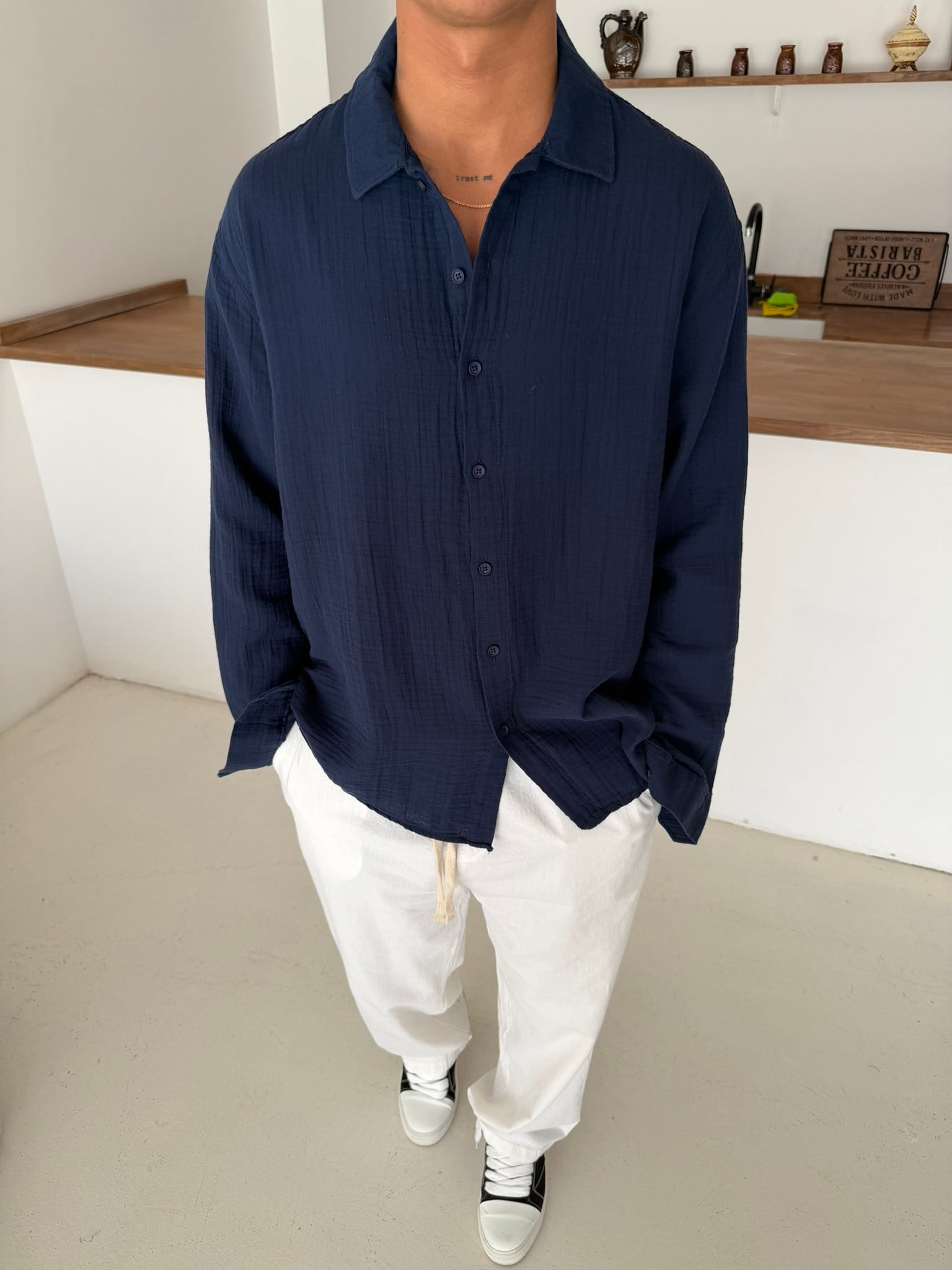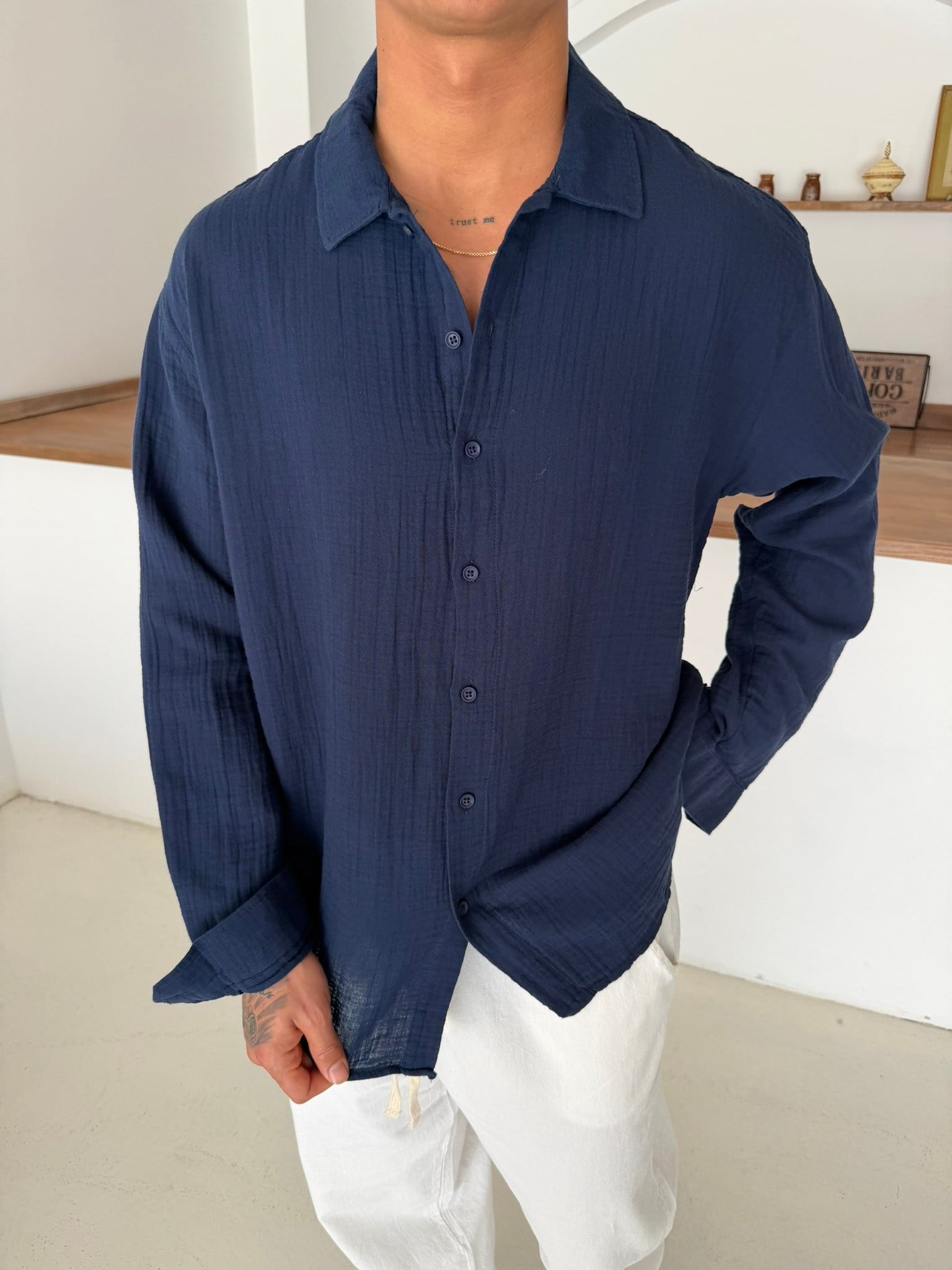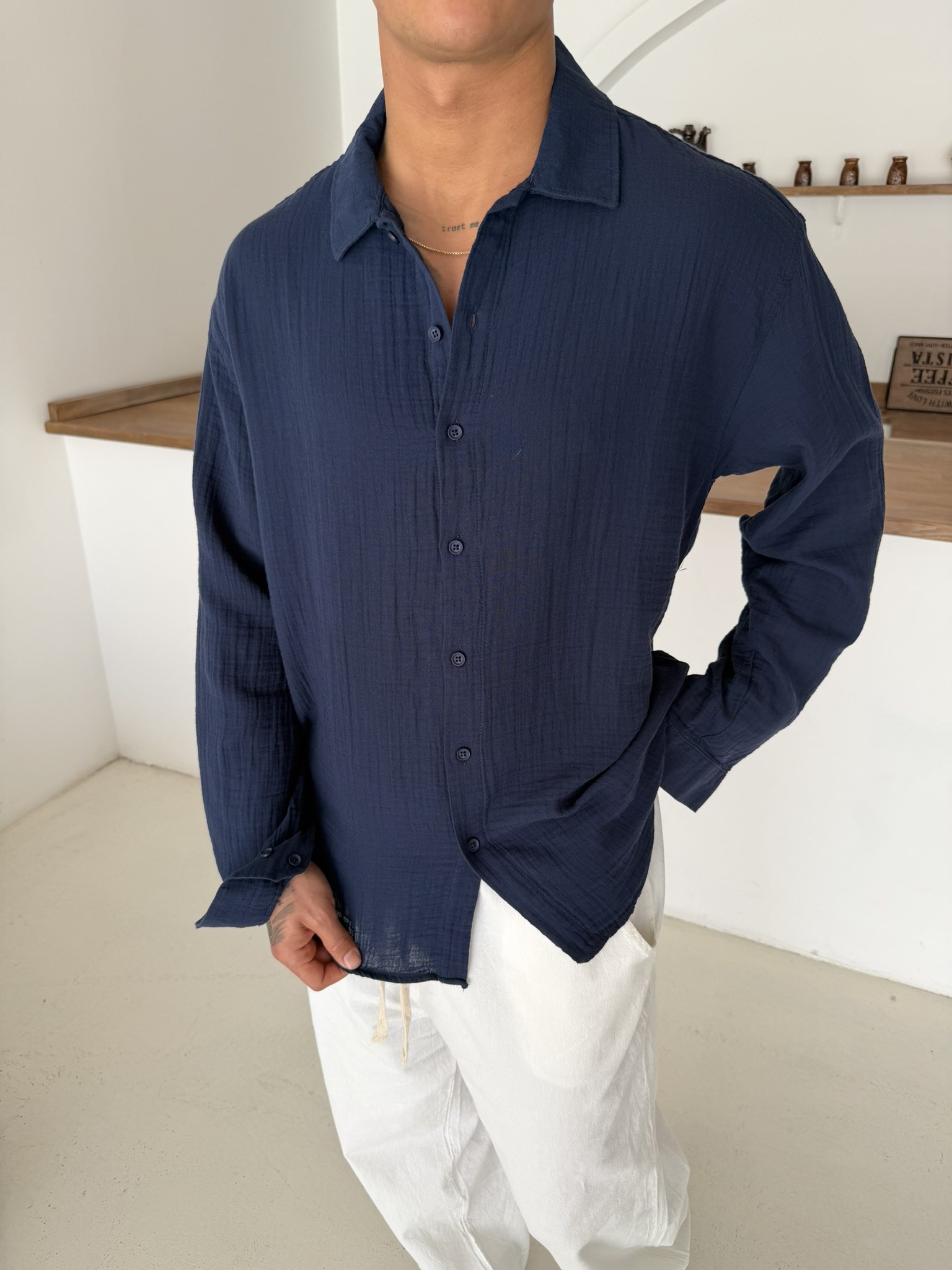 Premium Müslin Kumaş Gömlek - Lacivert (GML.0045-Lacivert-S)