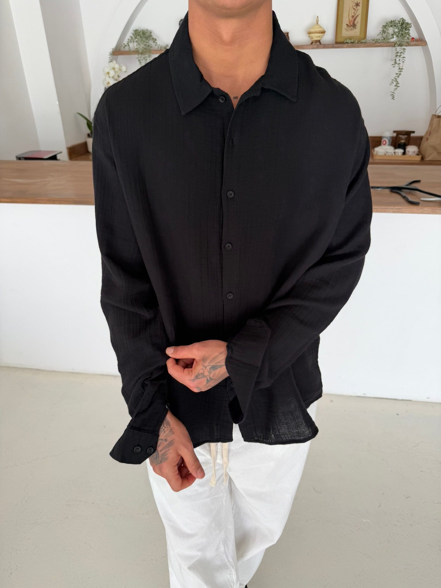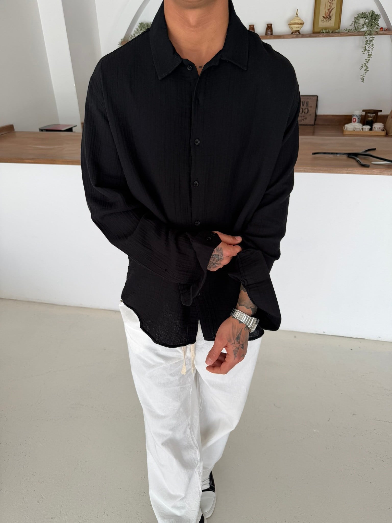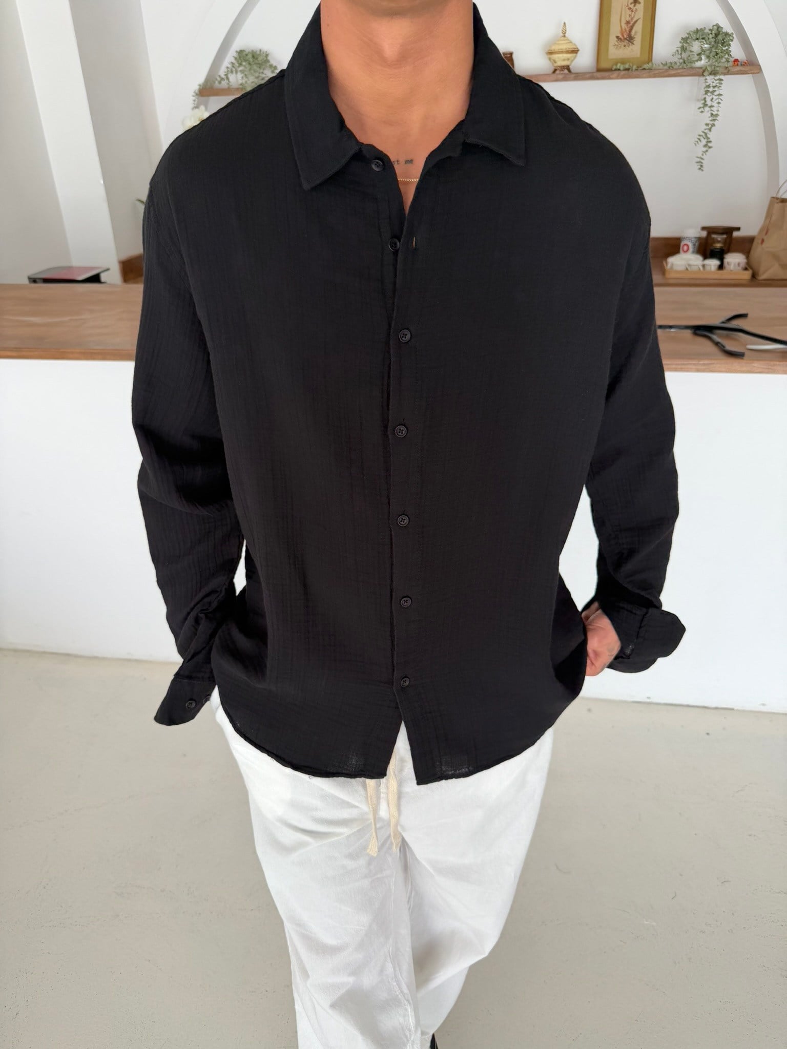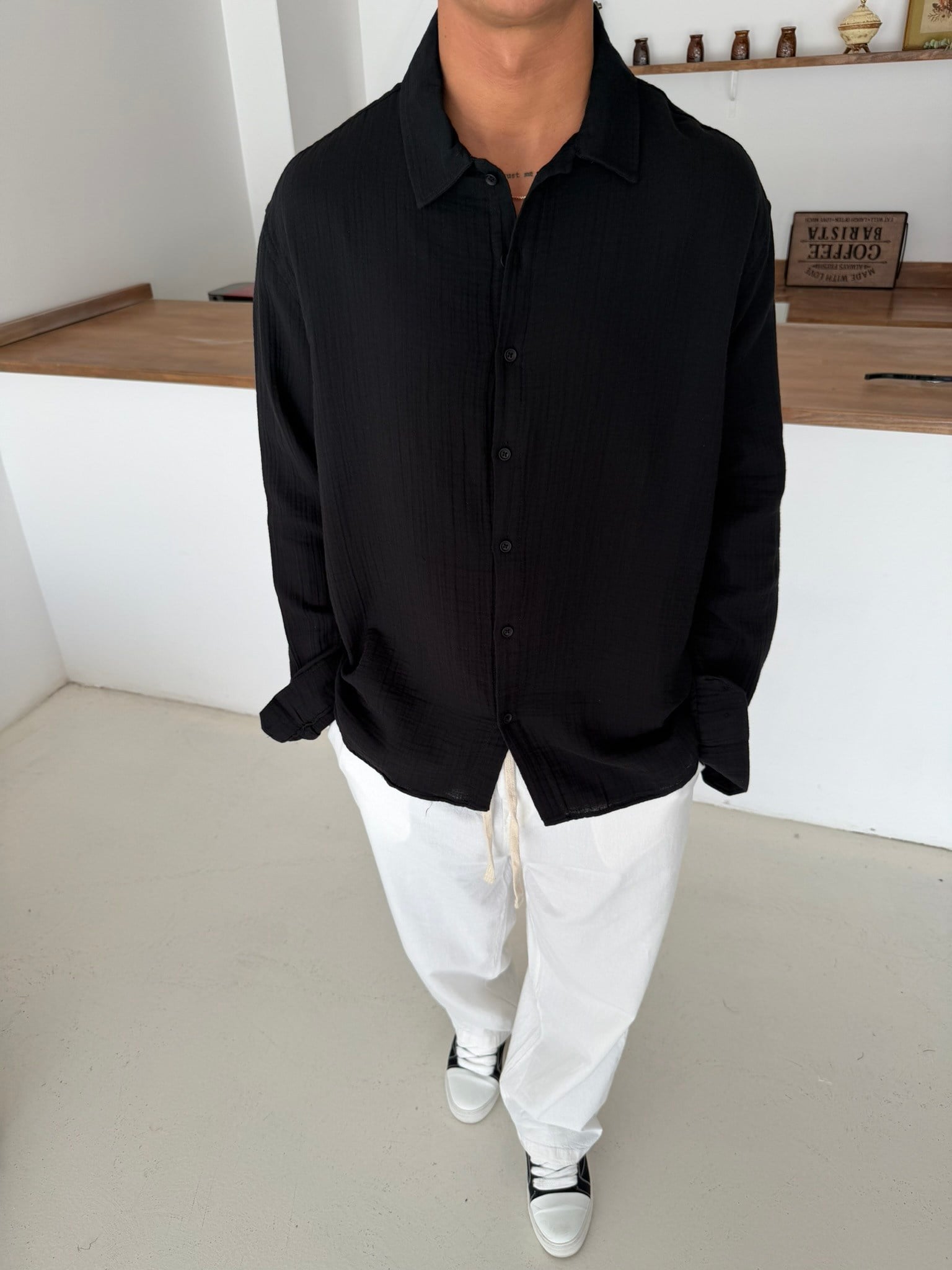 Premium Müslin Kumaş Gömlek - Siyah (GML.0045-Siyah-S)