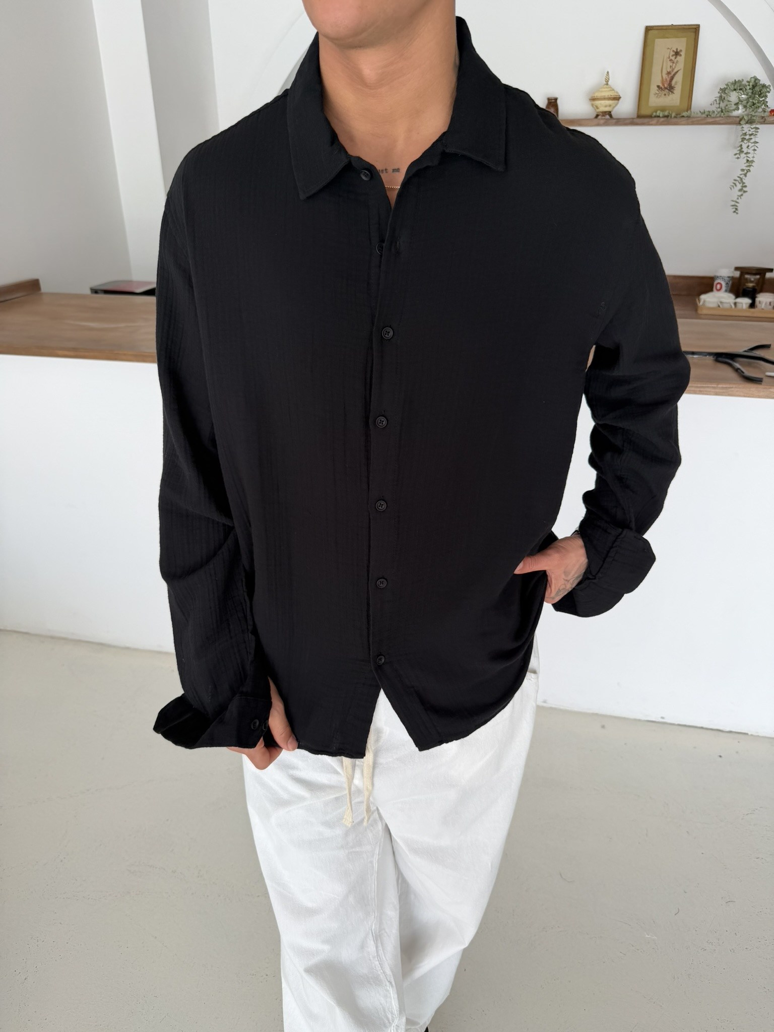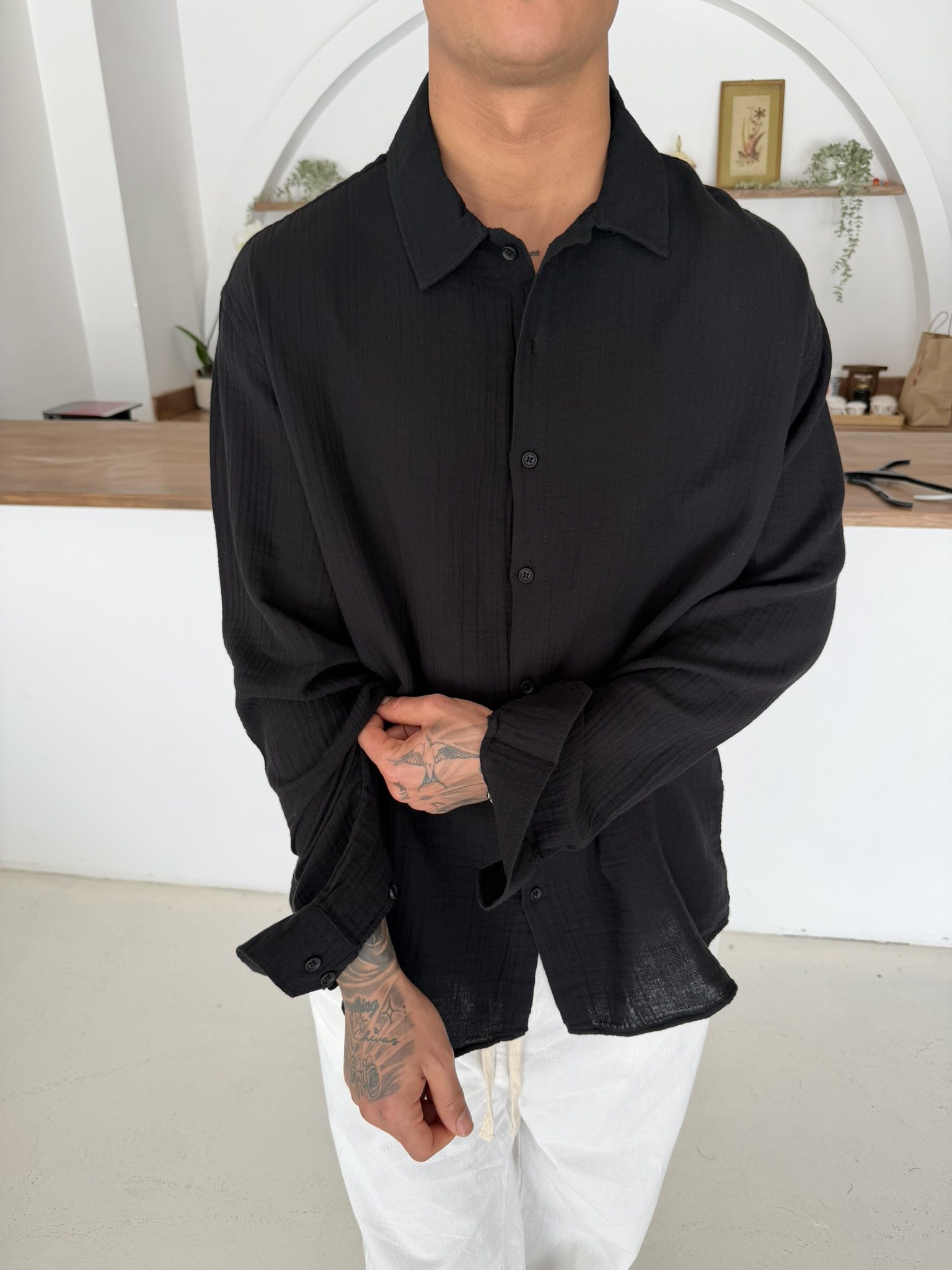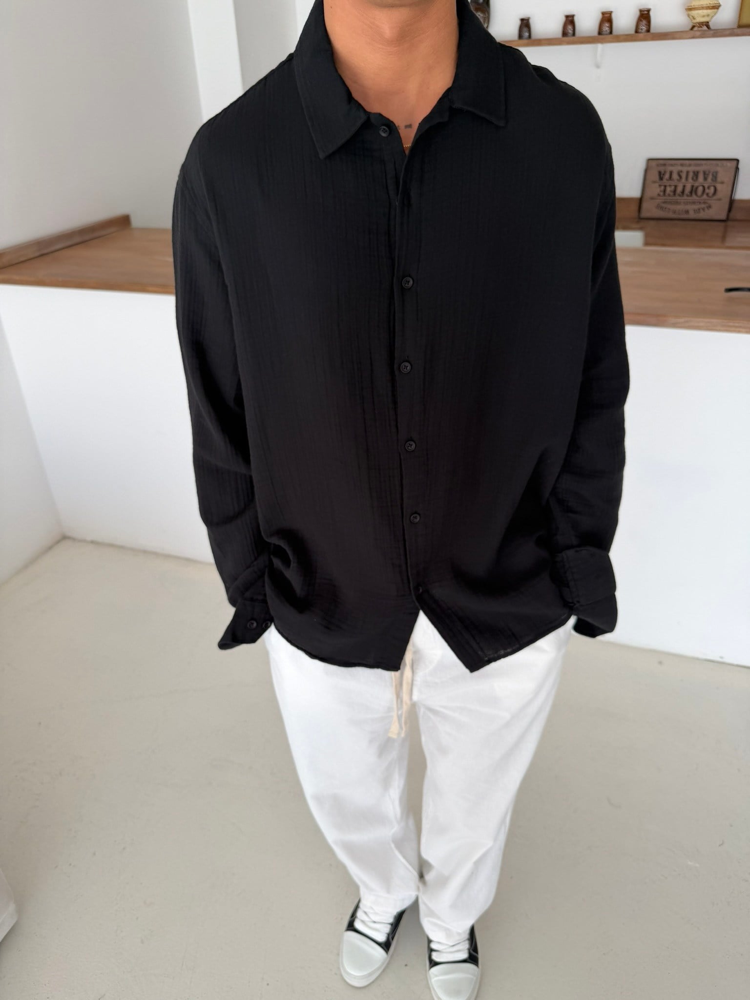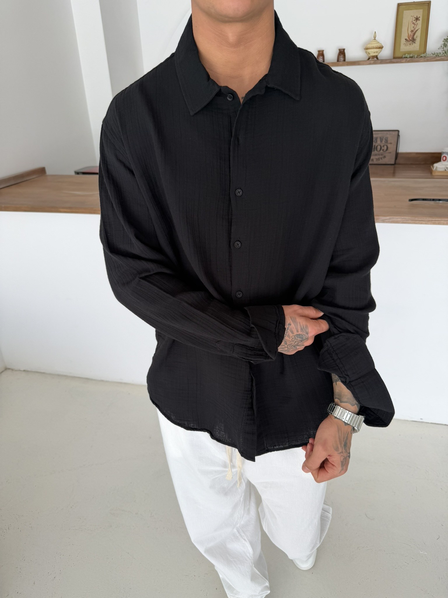 Premium Müslin Kumaş Gömlek - Siyah (GML.0045-Siyah-S)
