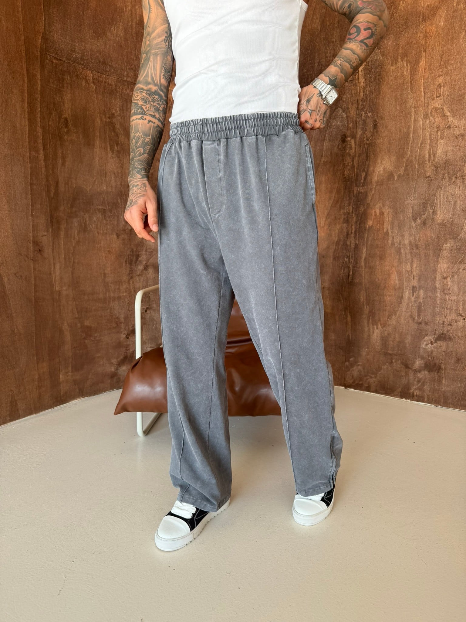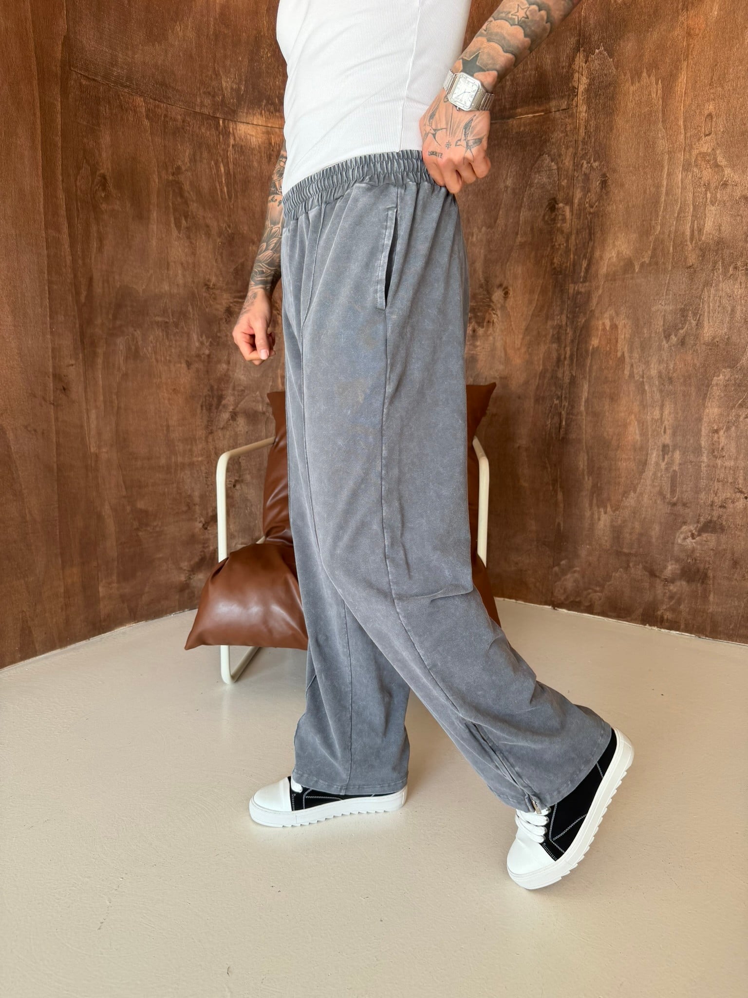 Premium Paça Fermuarlı Yıkamalı Baggy Eşofman - Füme (EŞF.0060-Füme-S)