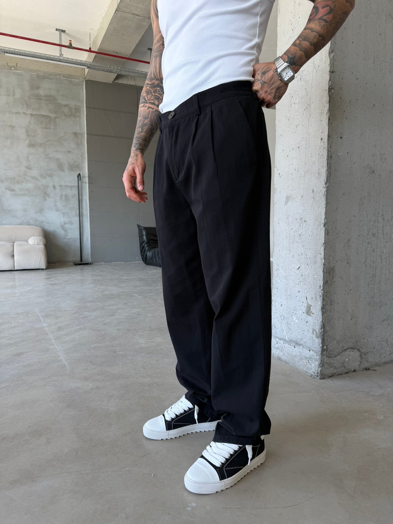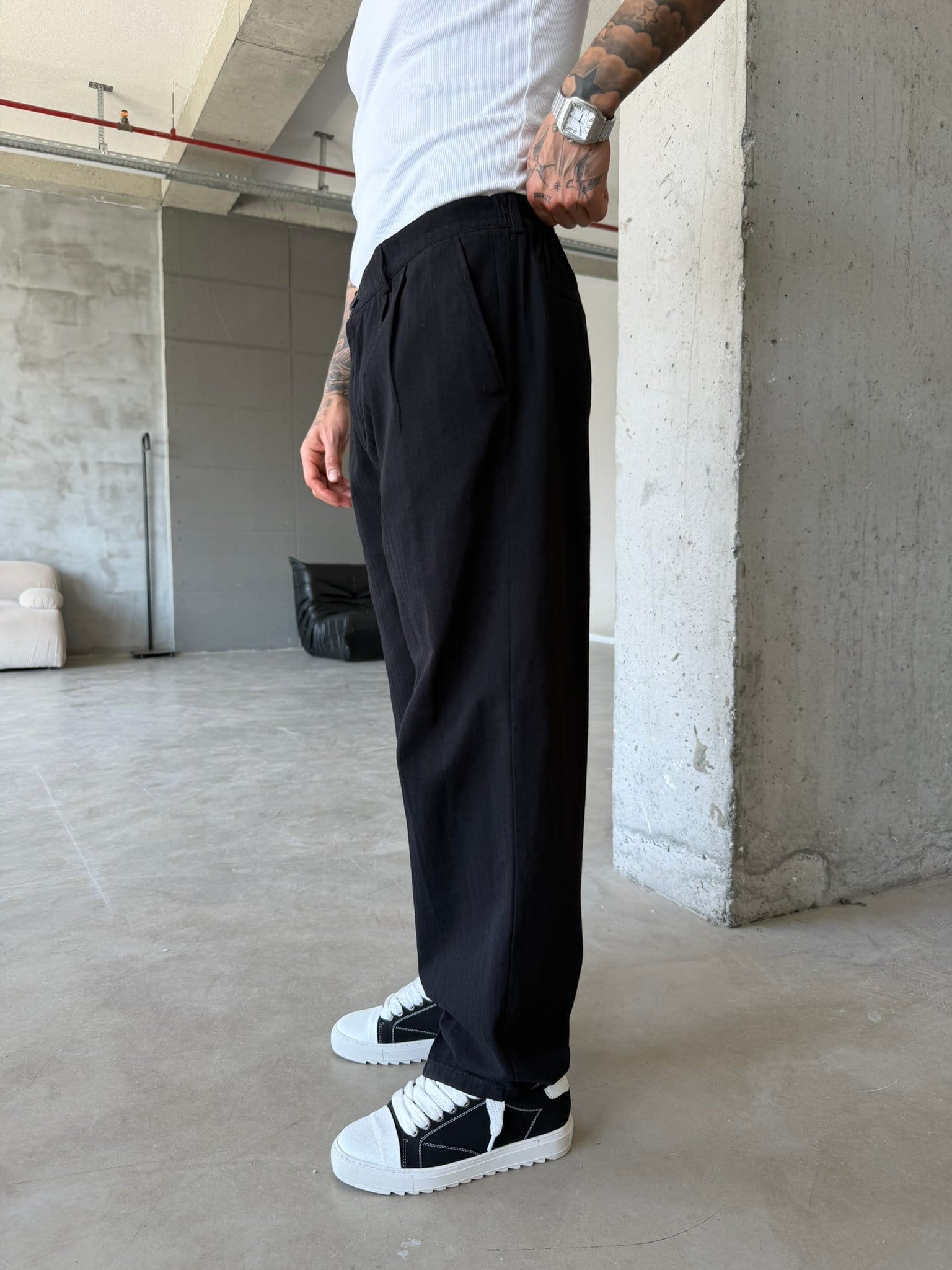 Premium Pileli Relax Fit Pantolon - Siyah (PNT.0132-Siyah-S)