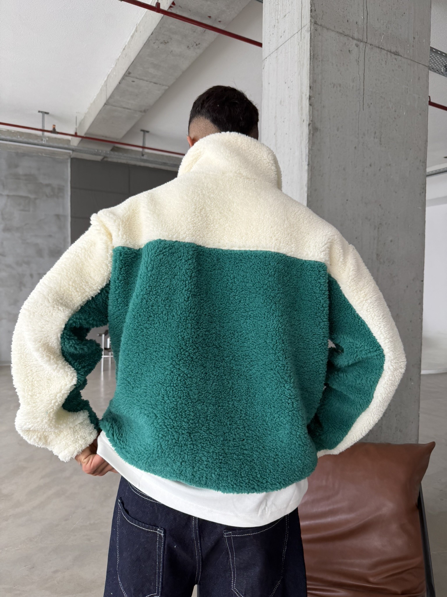 Premium Retro Peluş Zip Sweat - Yeşil (SWT.0073-Yeşil-S)