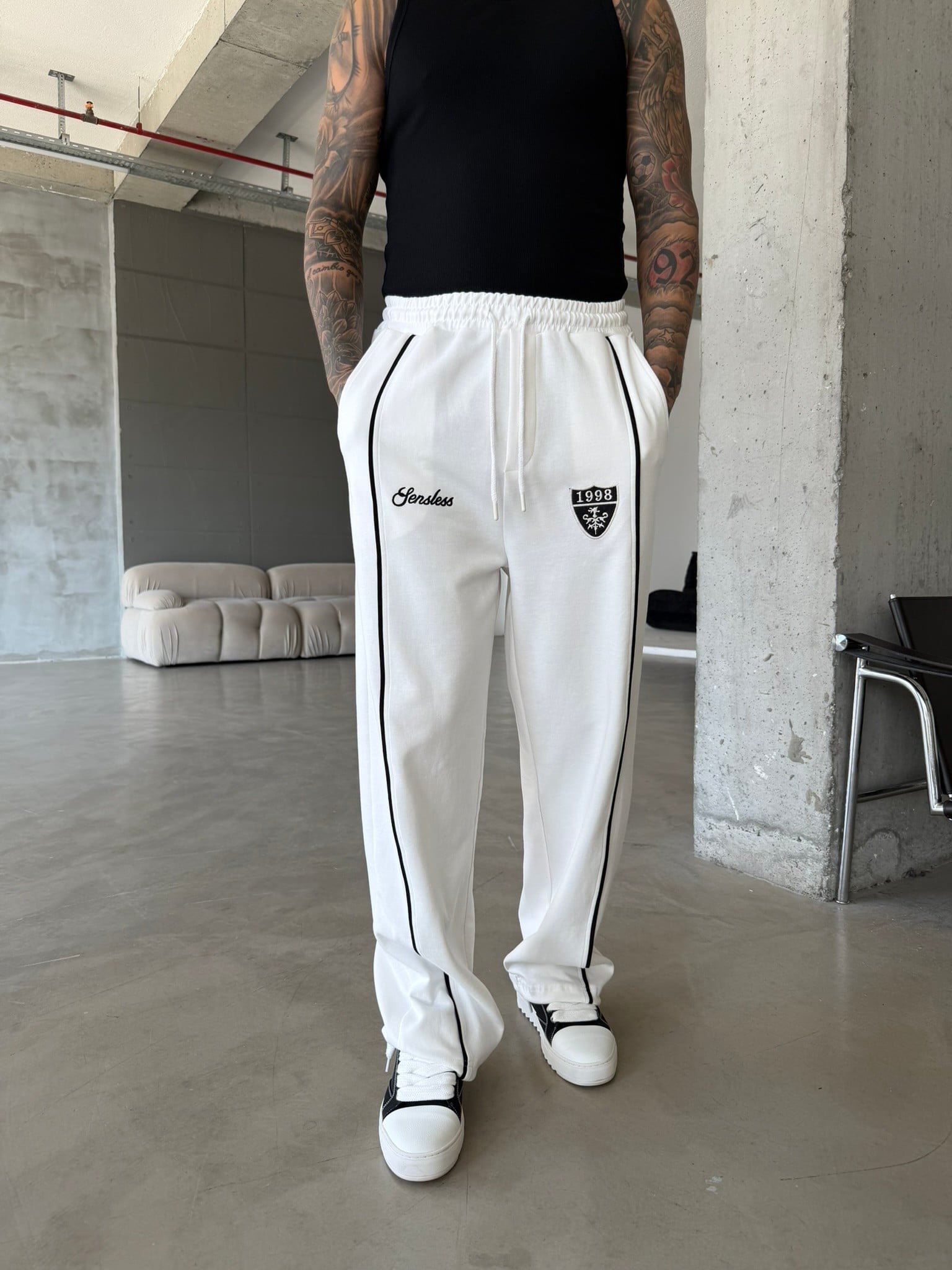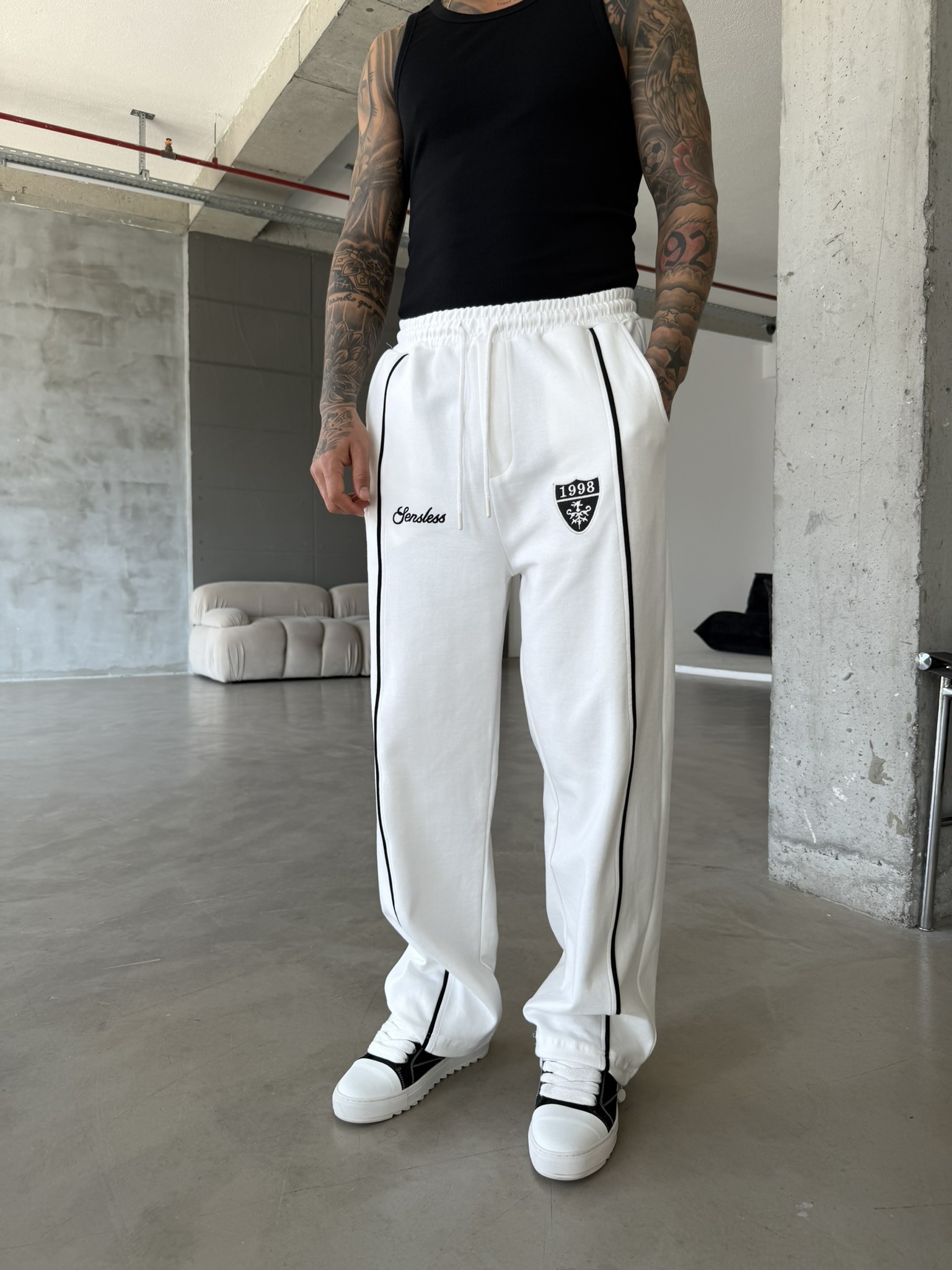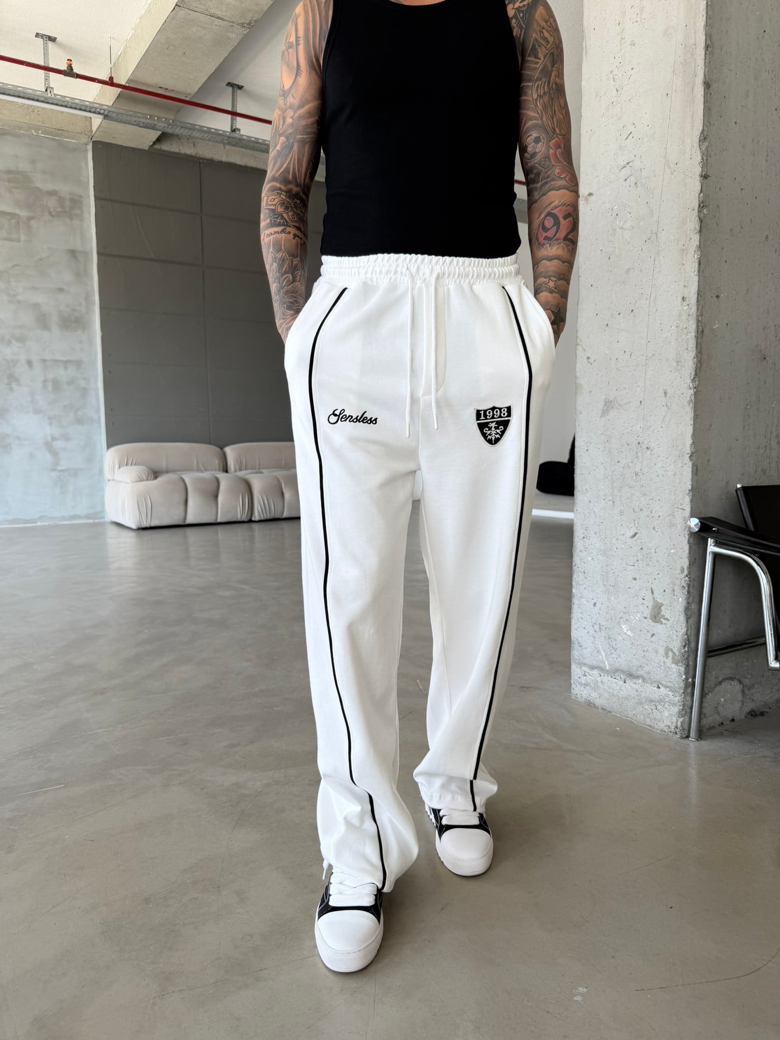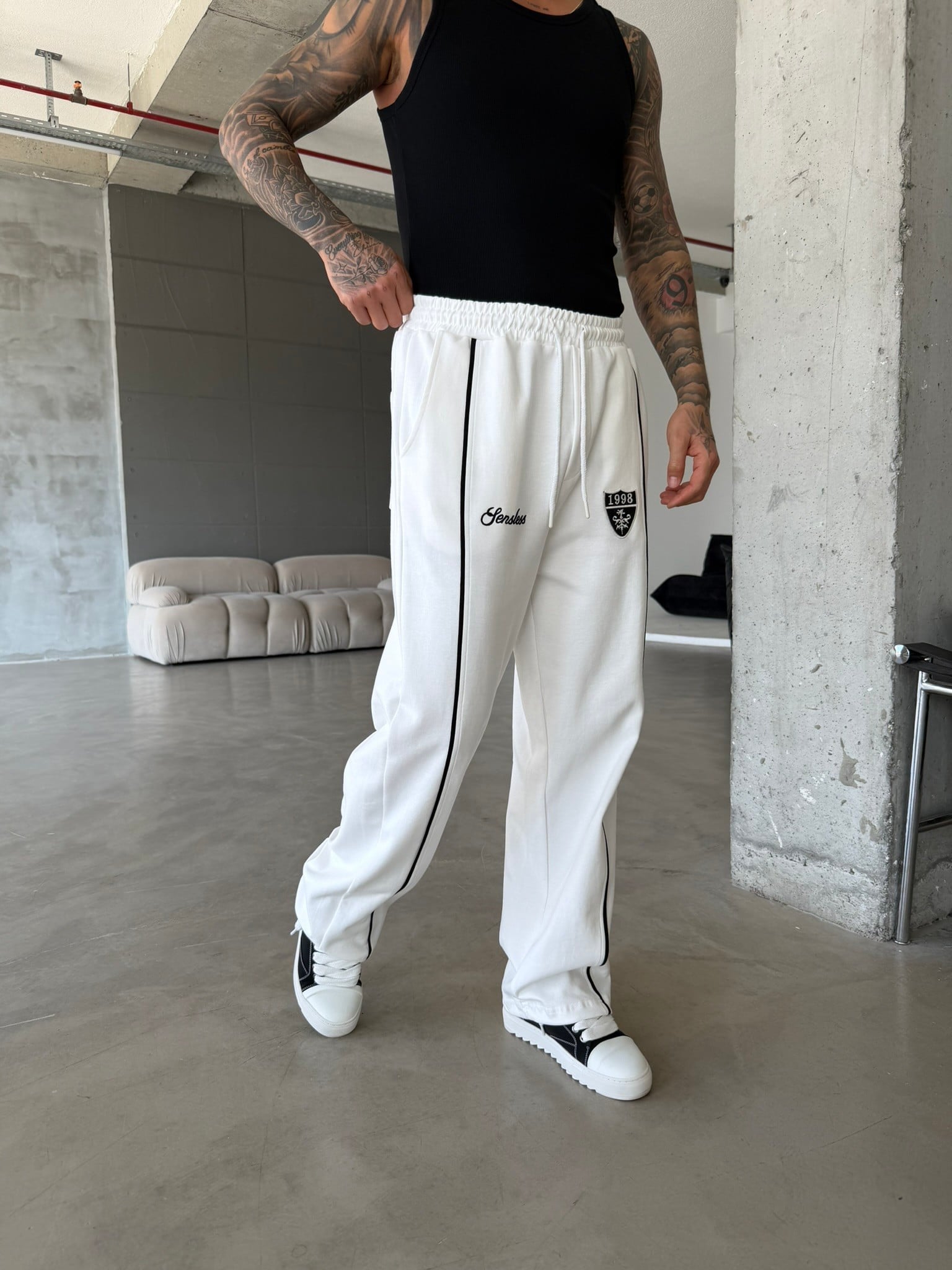 Premium Sesless 1998 Baggy Eşofman - Beyaz (EŞF.0064-Beyaz-S)