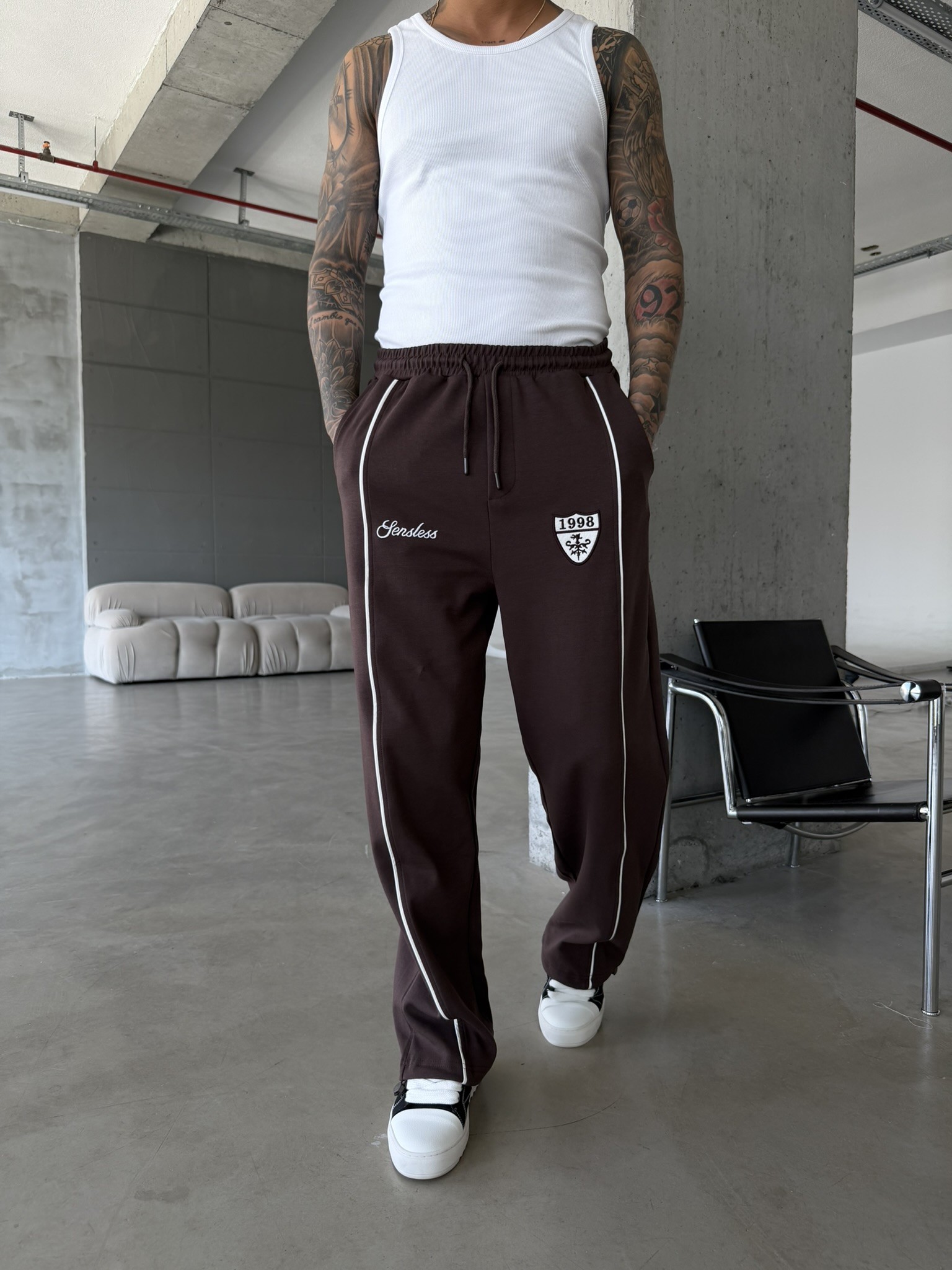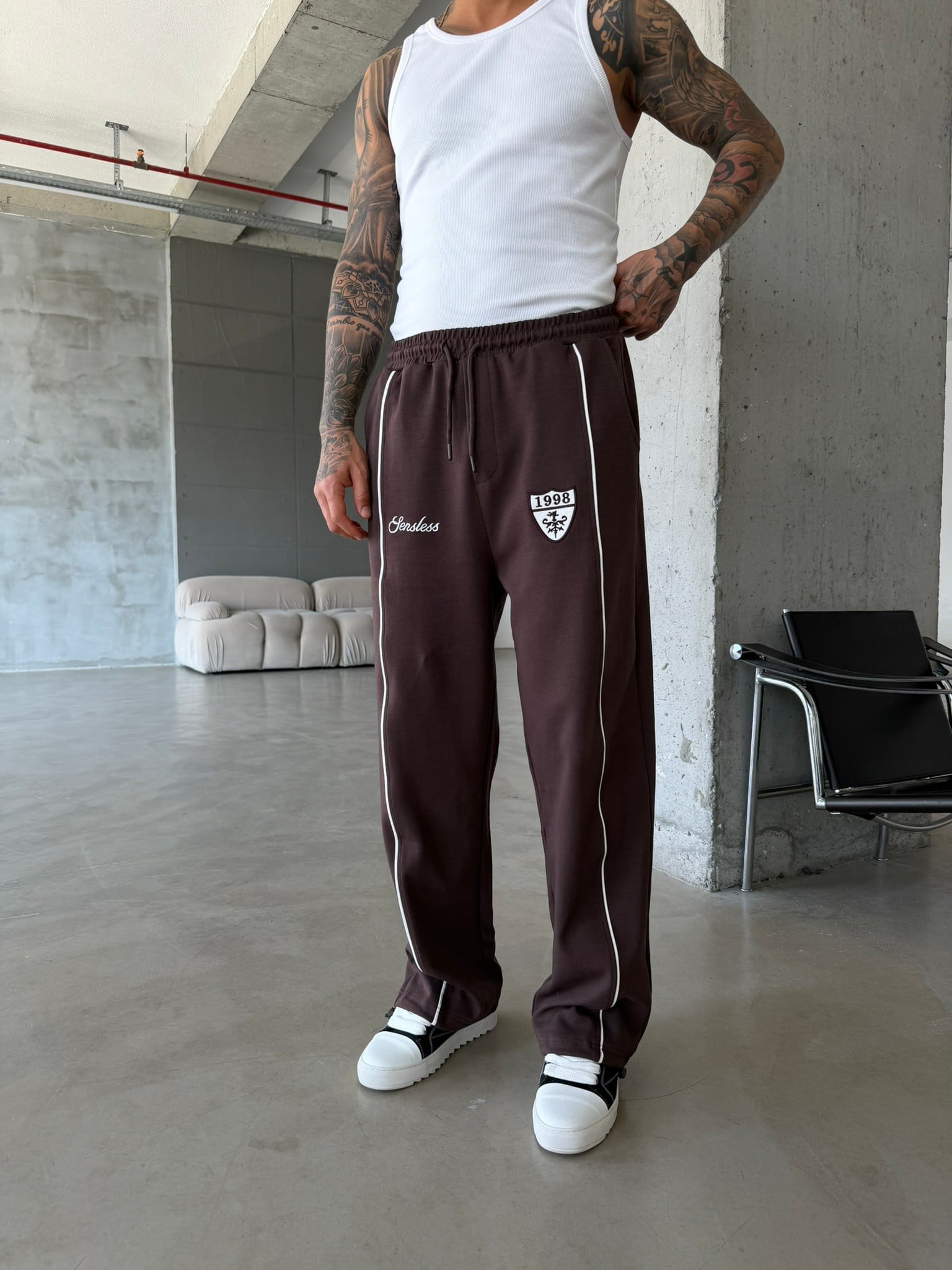 Premium Sesless 1998 Baggy Eşofman - Kahve (EŞF.0064-Kahve-S)