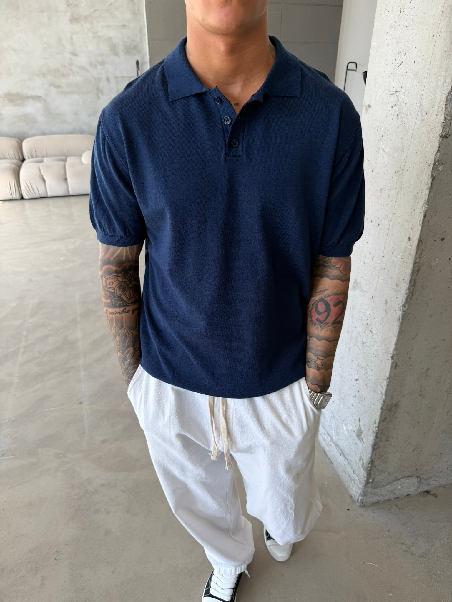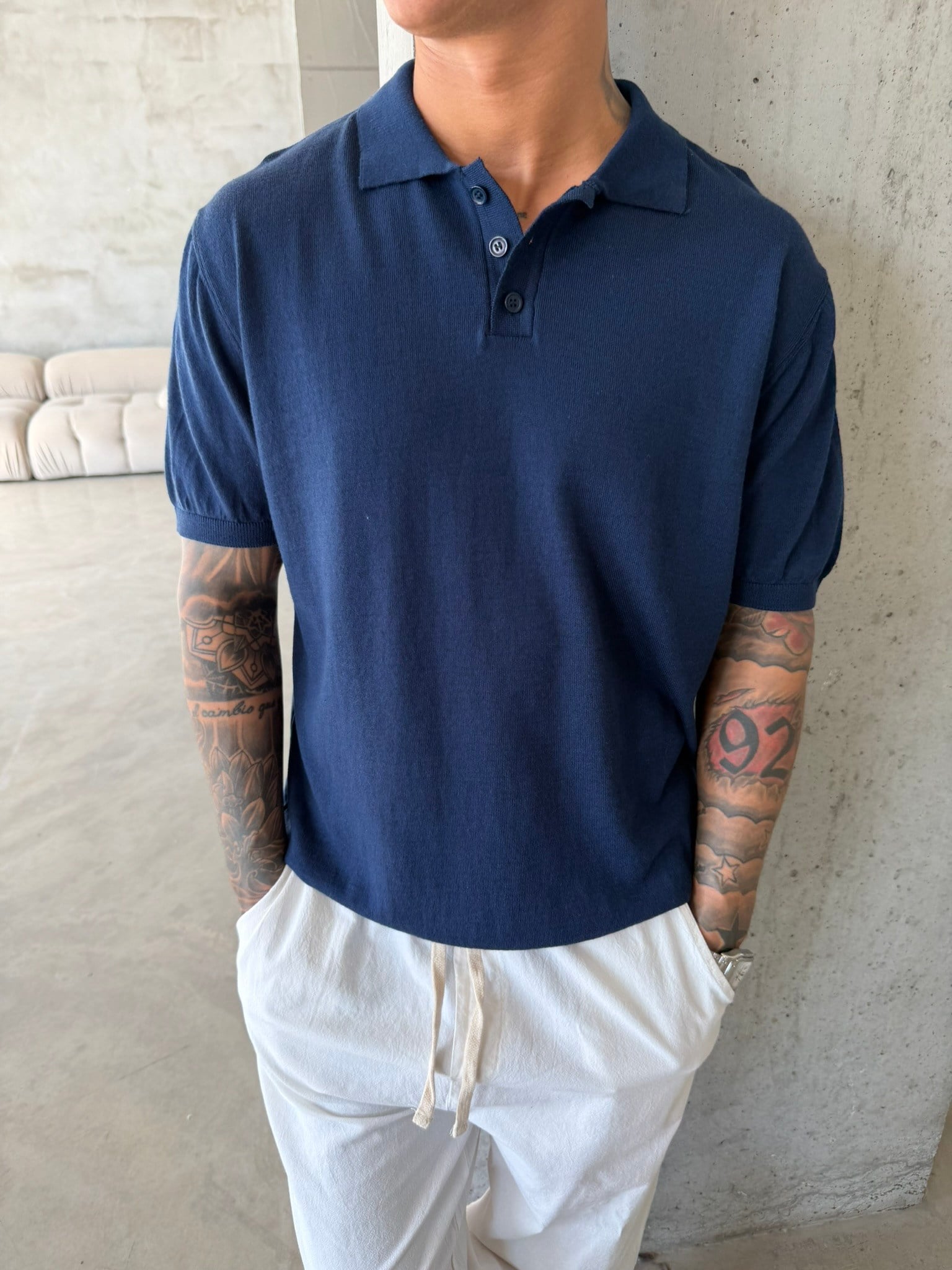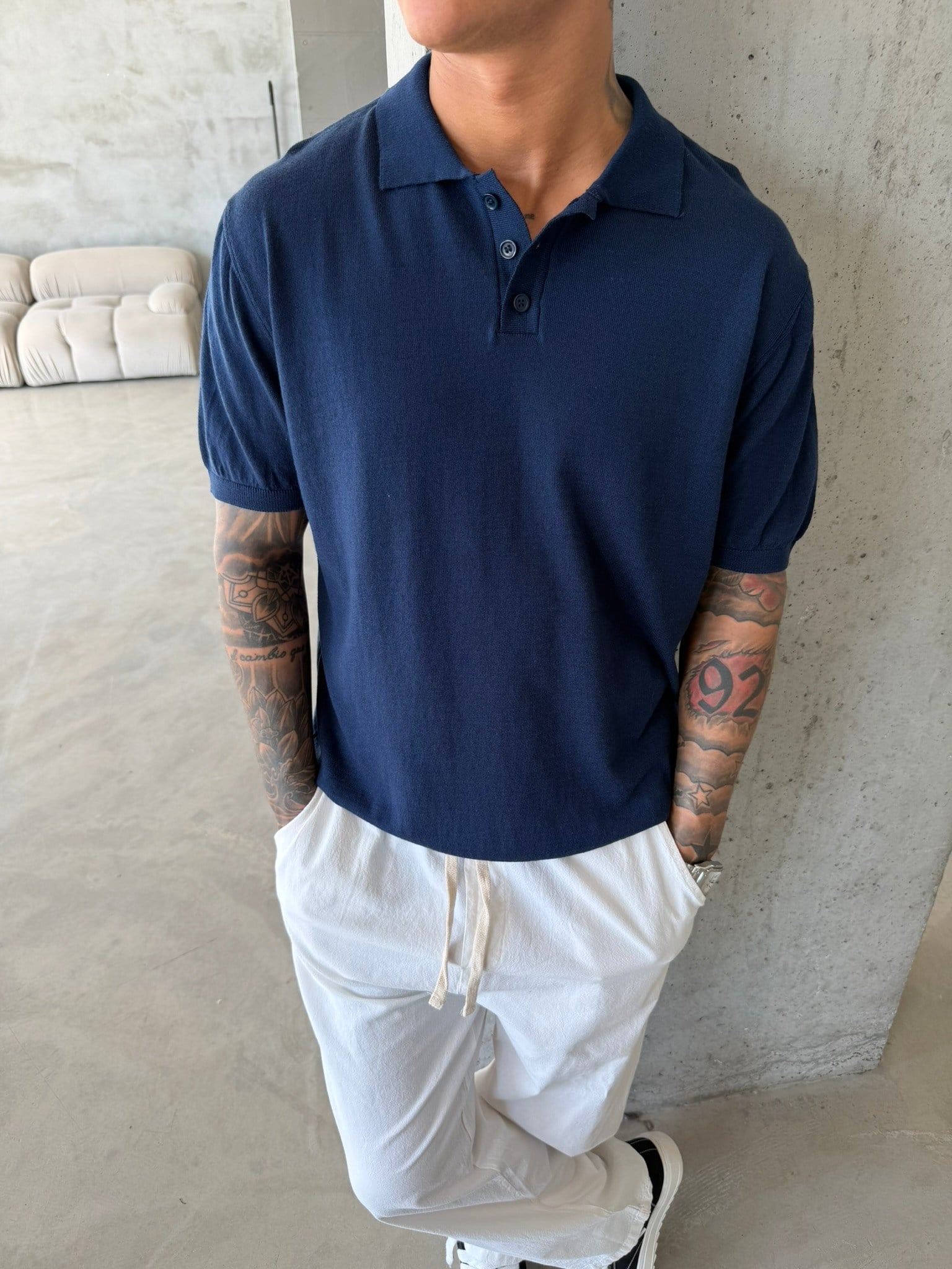 Regular Fit Triko Polo T-Shirt - Lacivert (TST.0175-Lacivert-S)