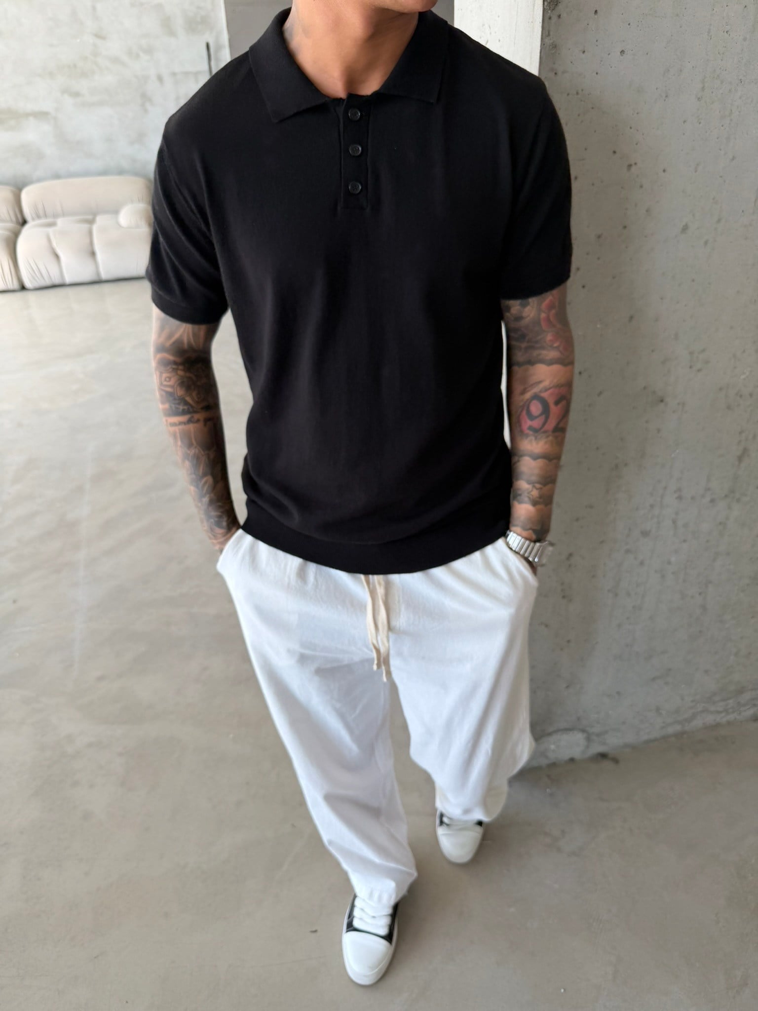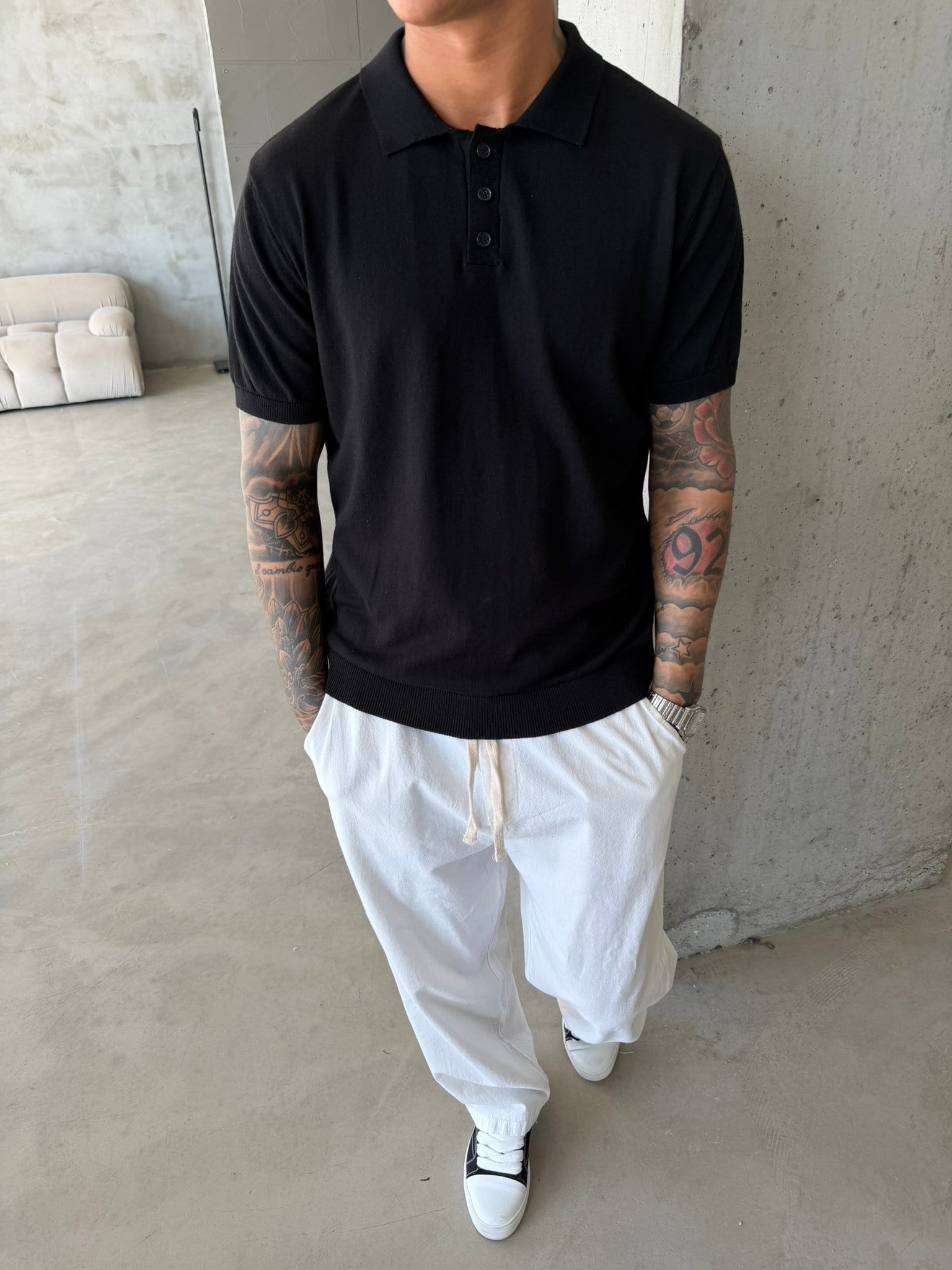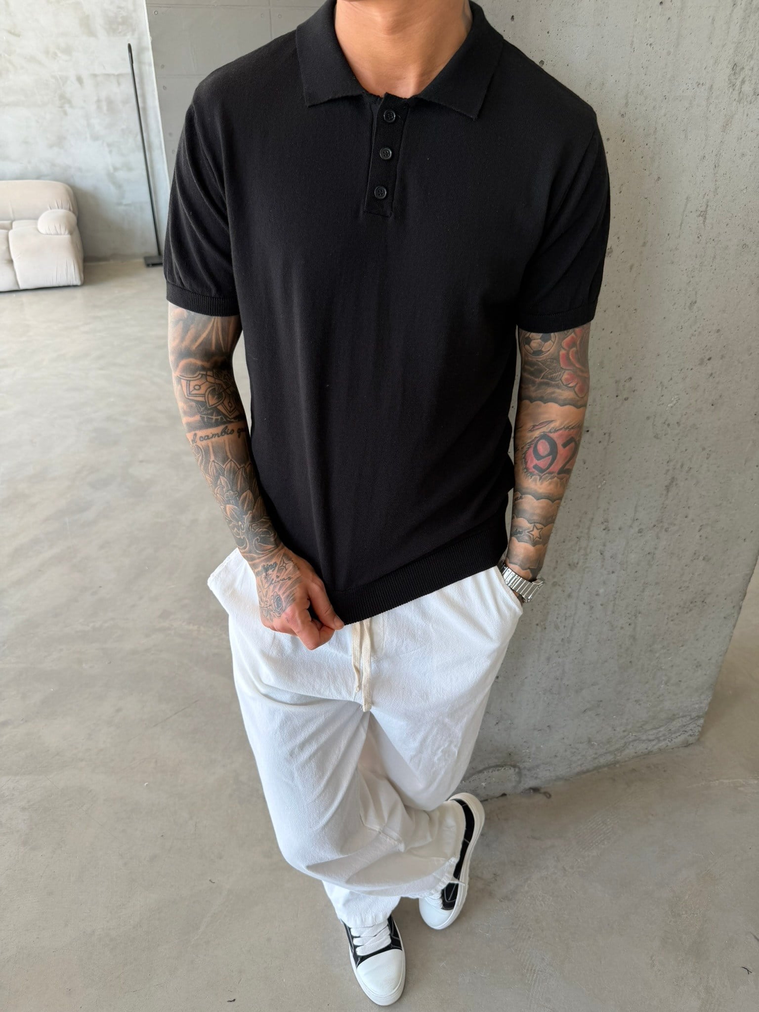 Regular Fit Triko Polo T-Shirt - Siyah (TST.0175-Siyah-S)