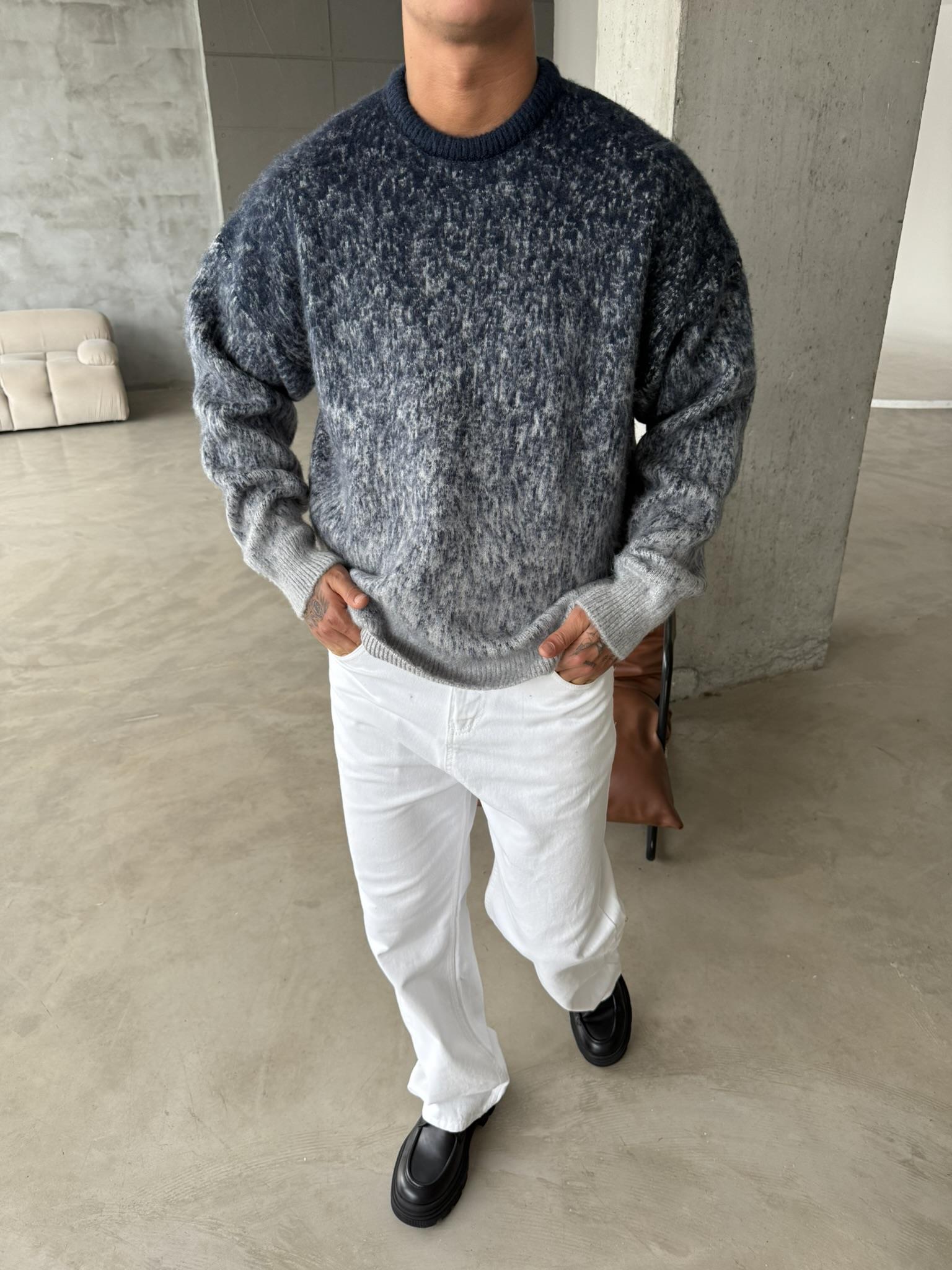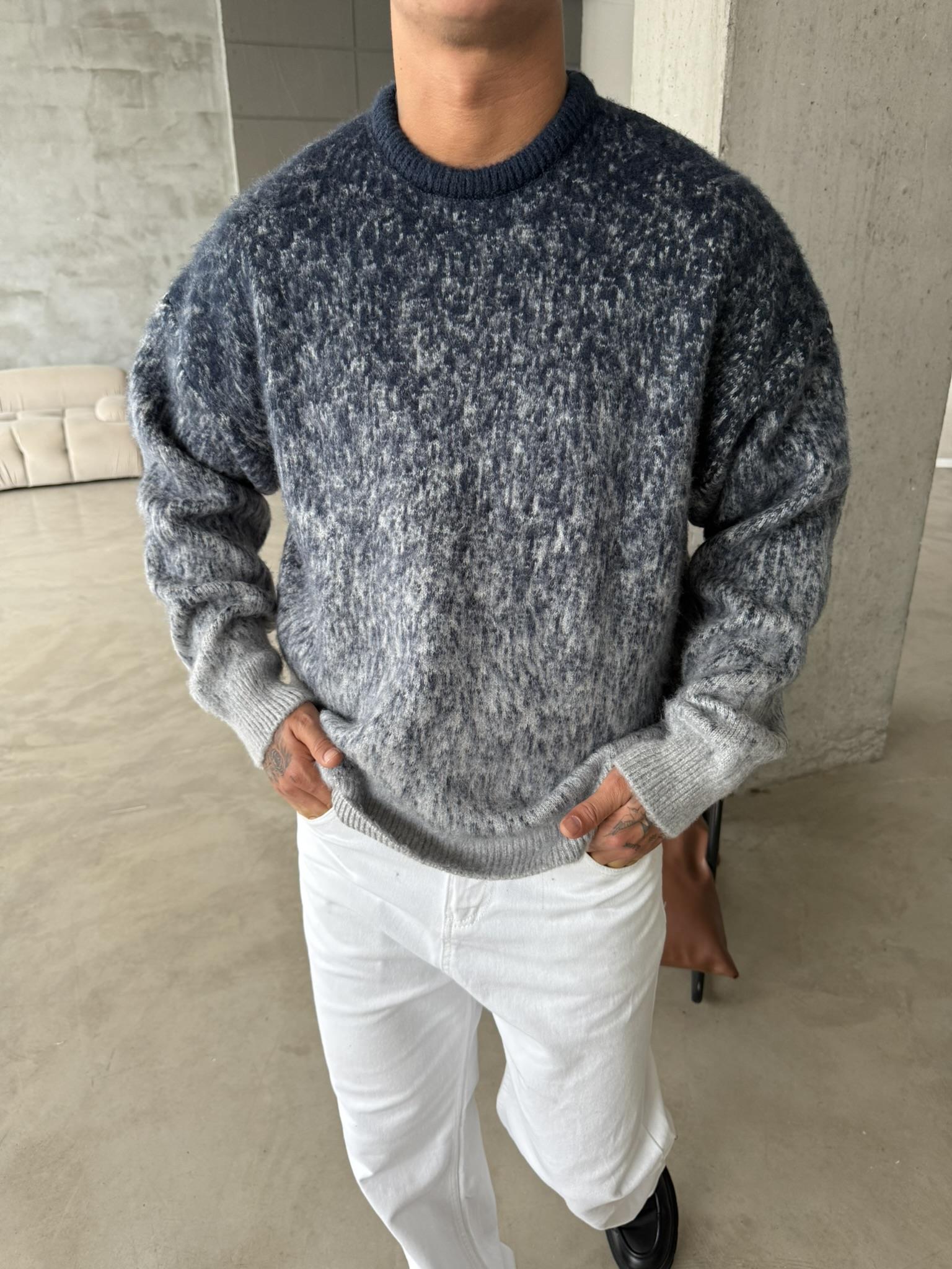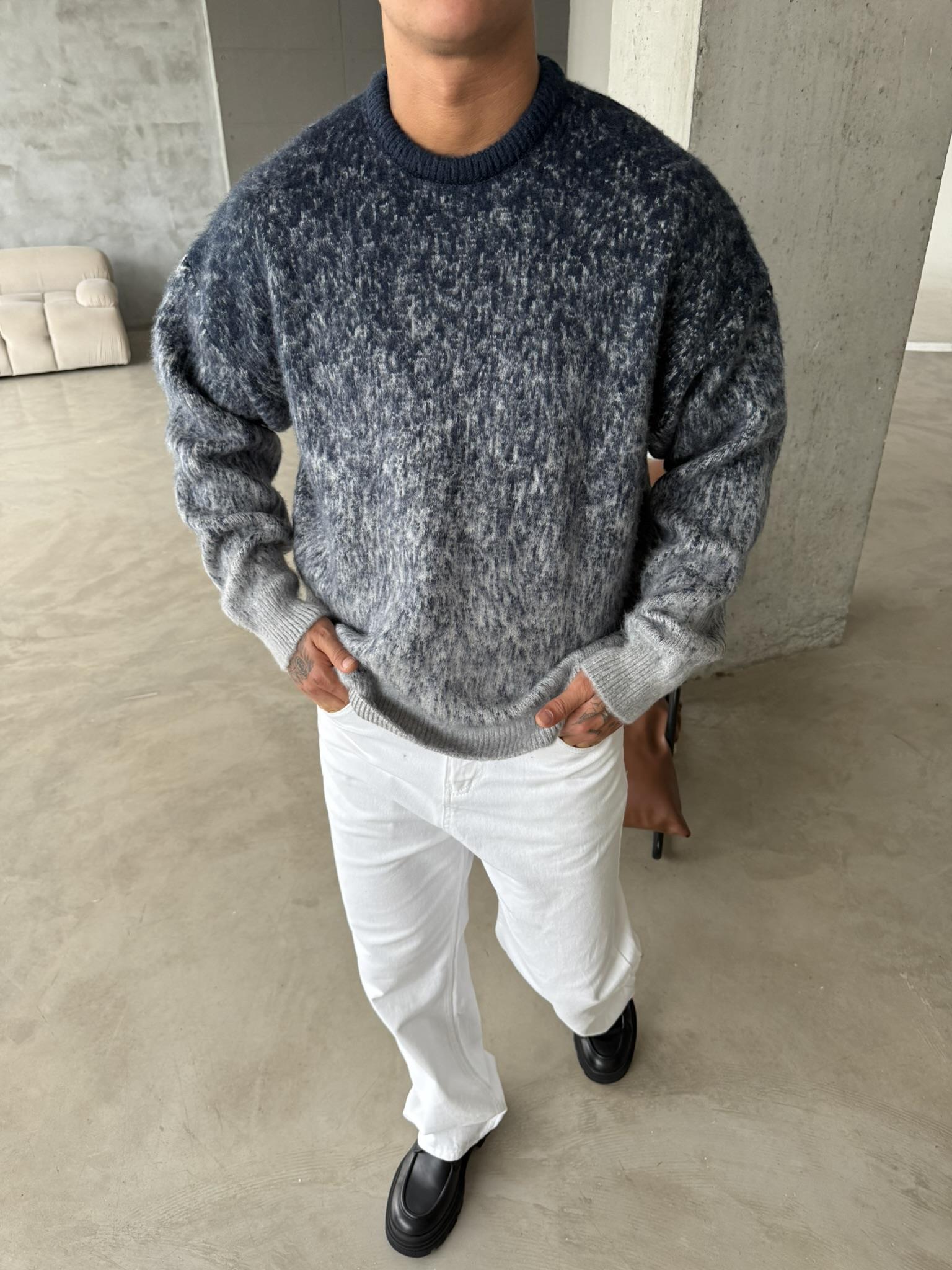 Renk Geçişli Triko Kazak - Mavi (SWT.0011-Mavi-S)