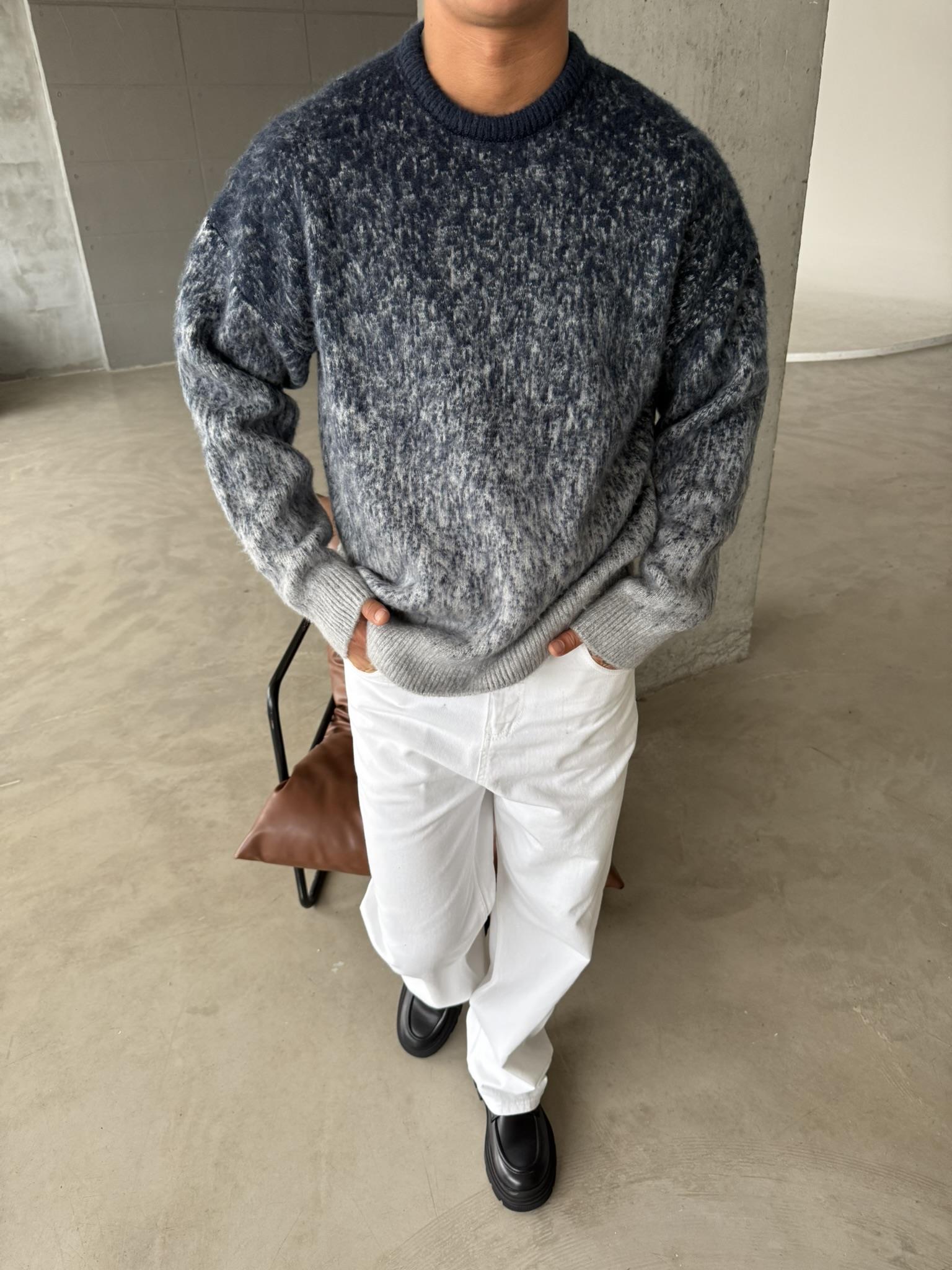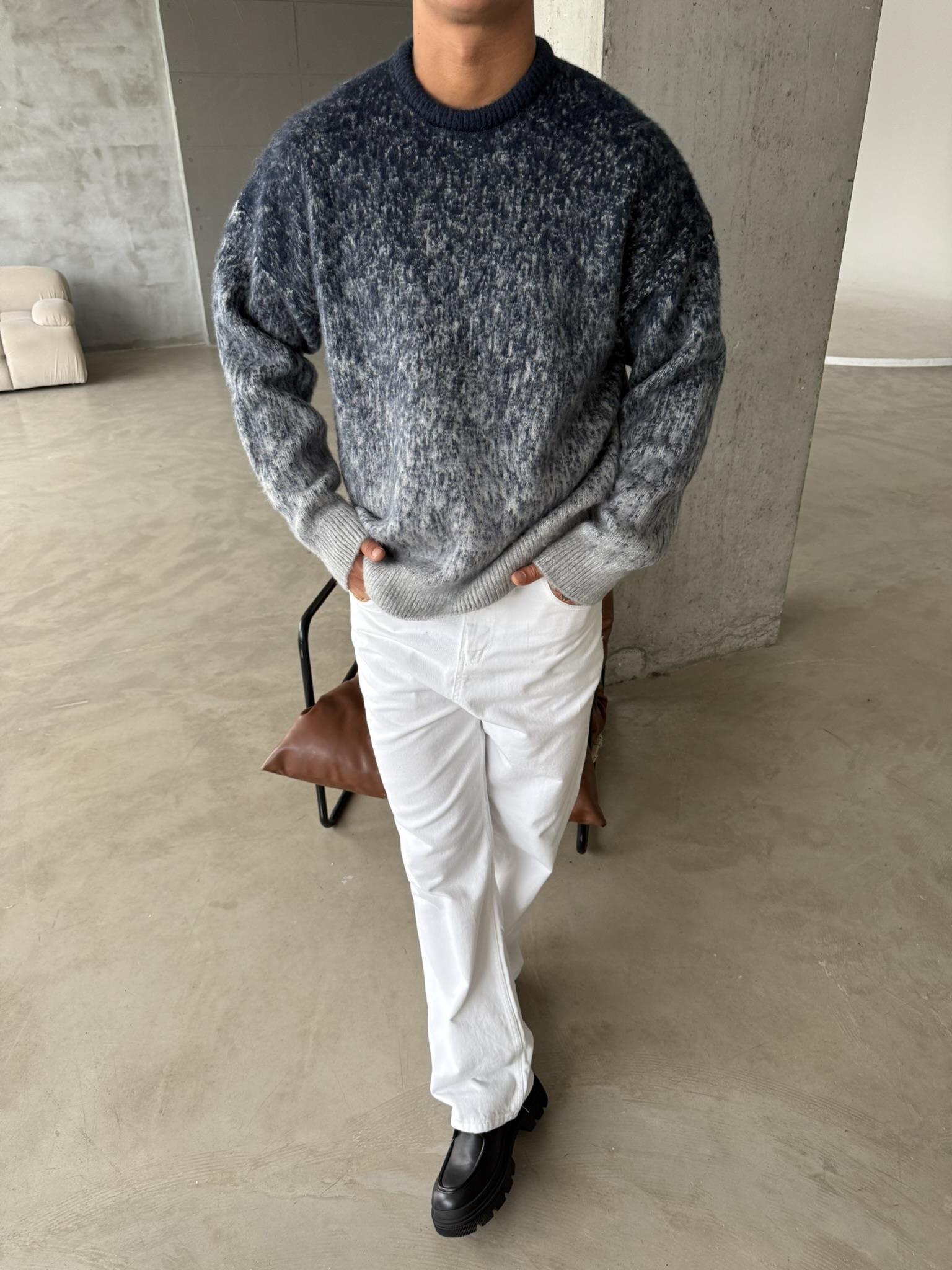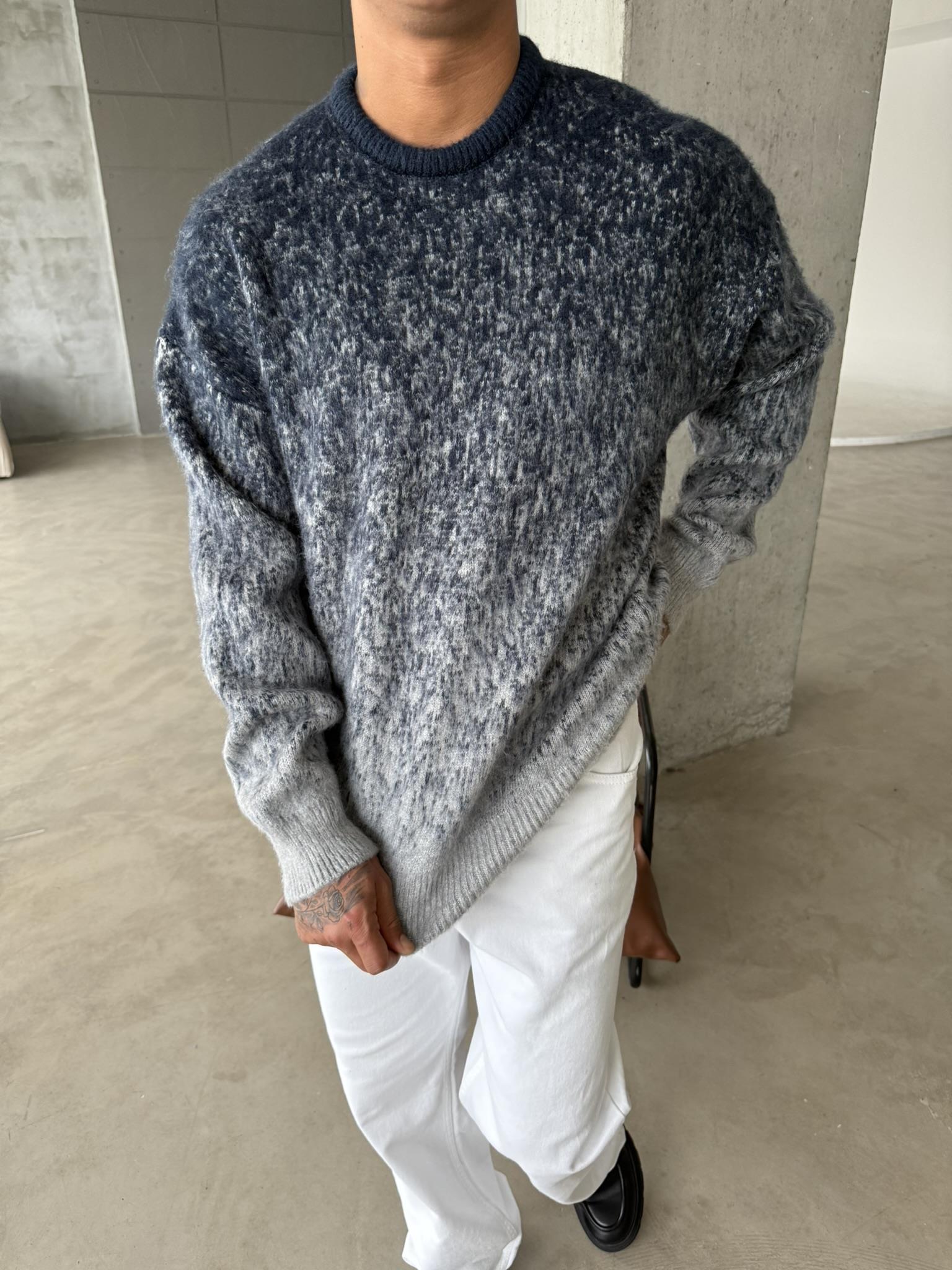Renk Geçişli Triko Kazak - Mavi (SWT.0011-Mavi-S)