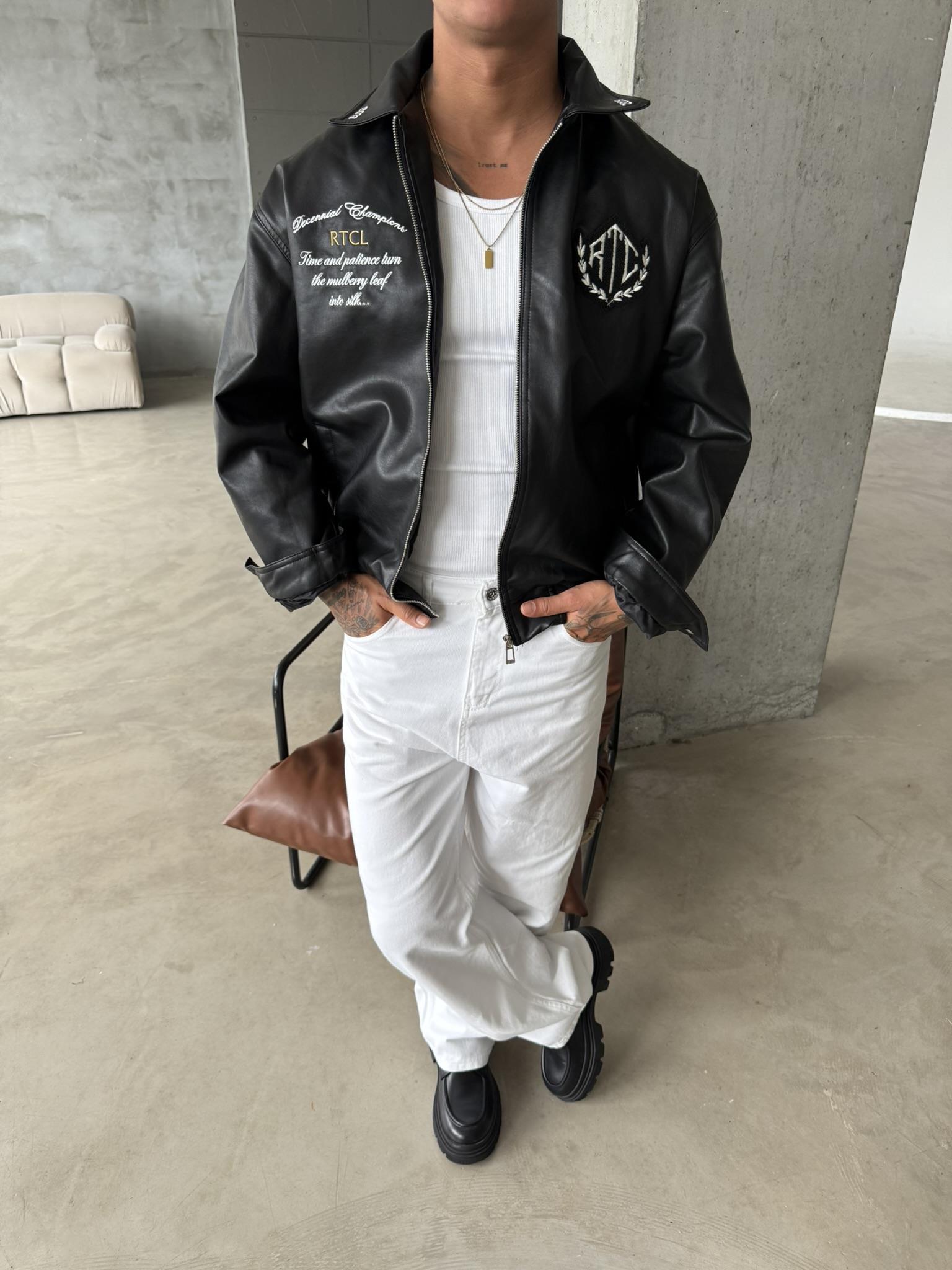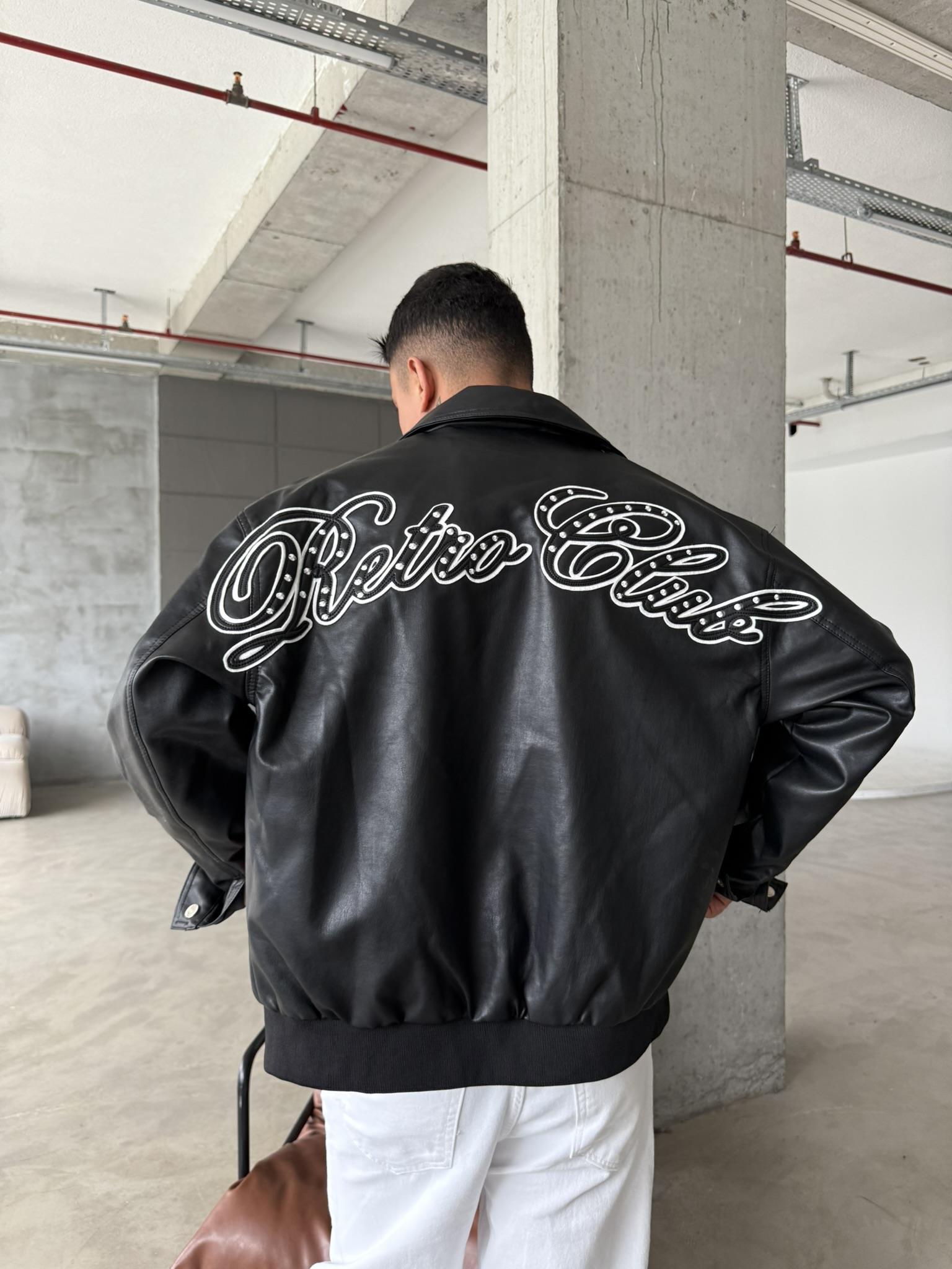 Retro Club Nakışlı Deri Ceket - Siyah (CKT.0002-Siyah-S)
