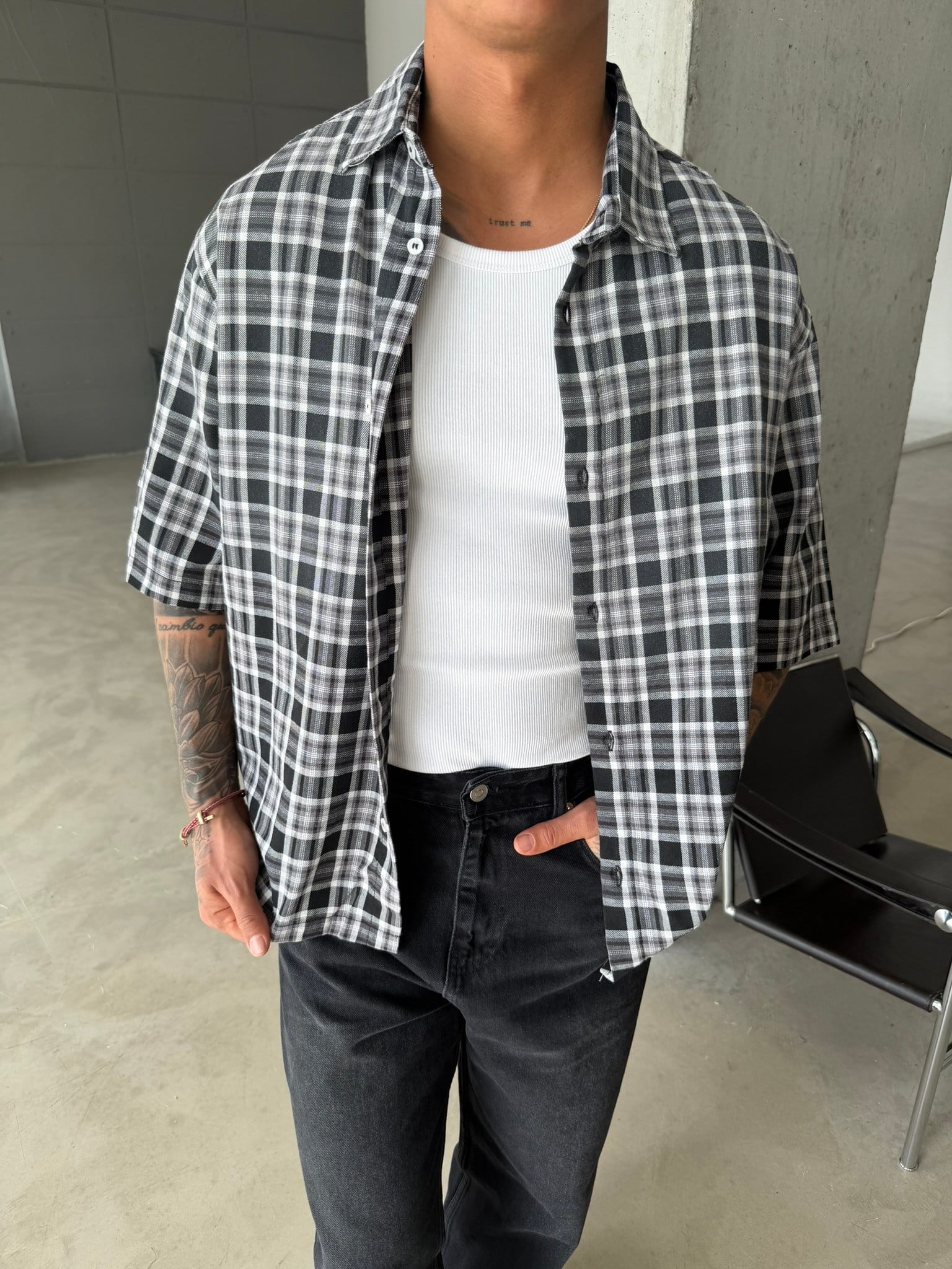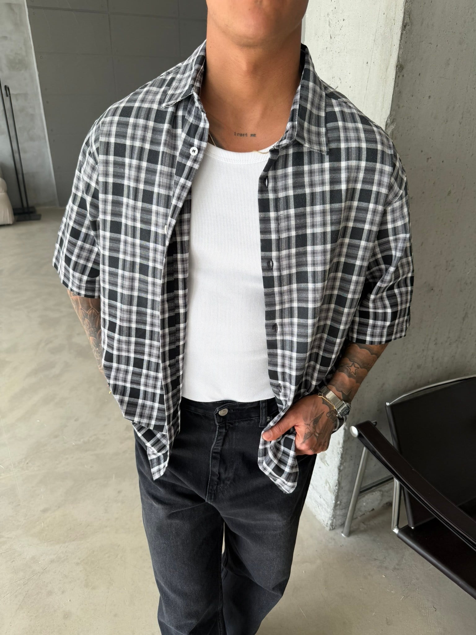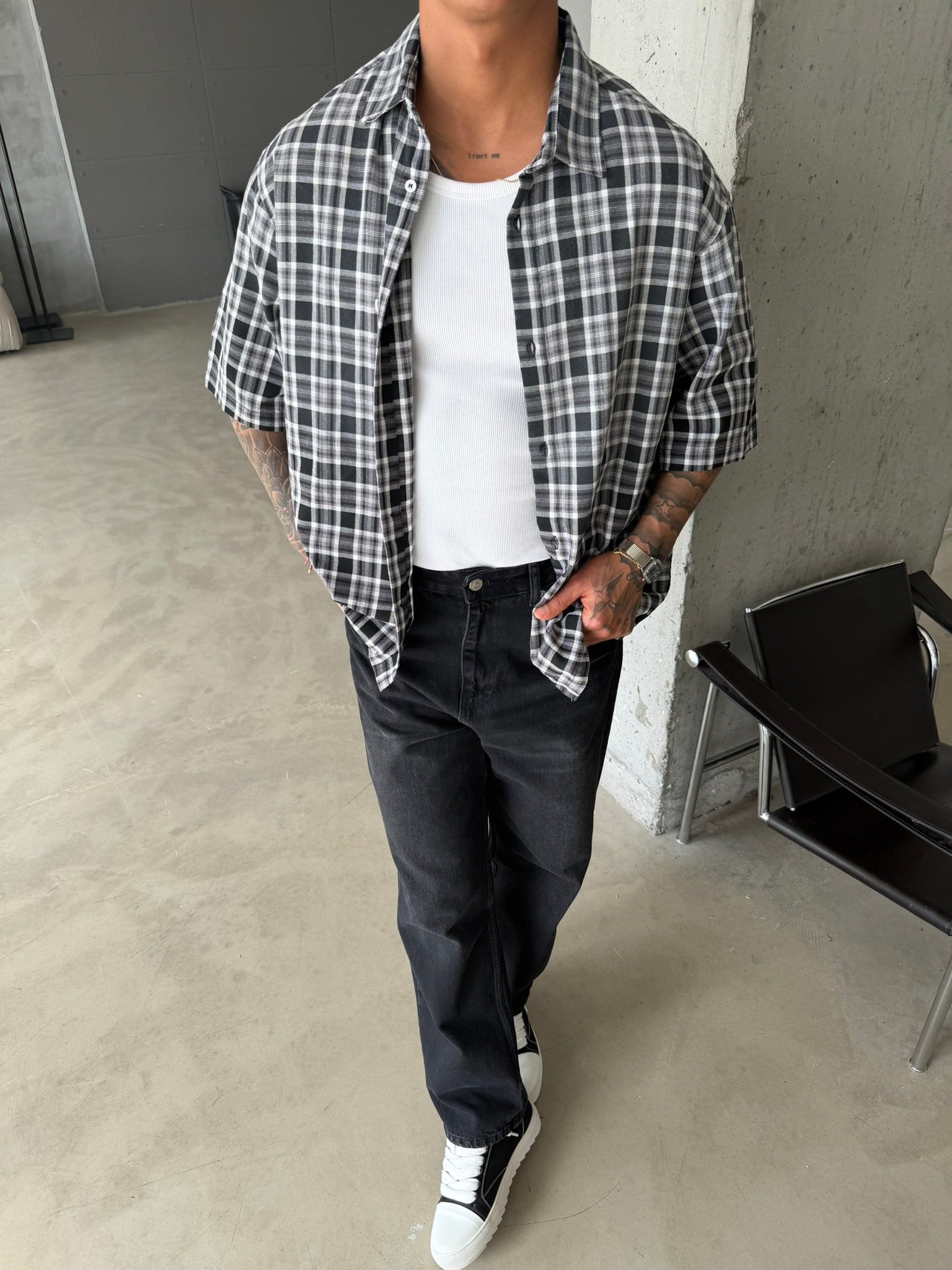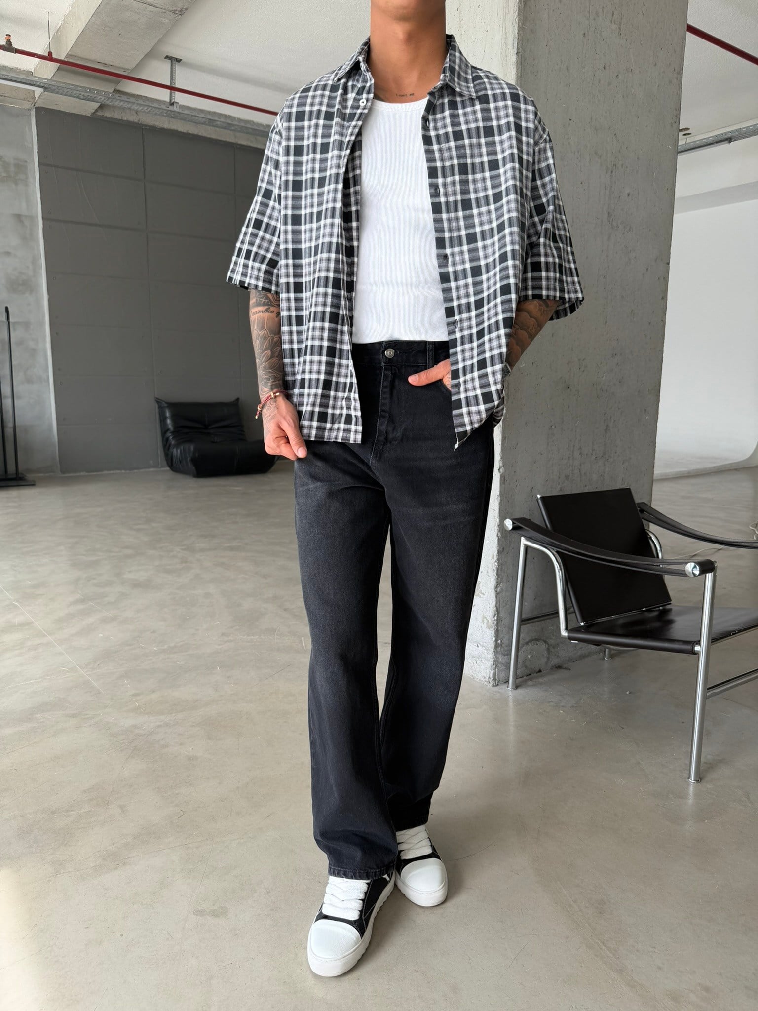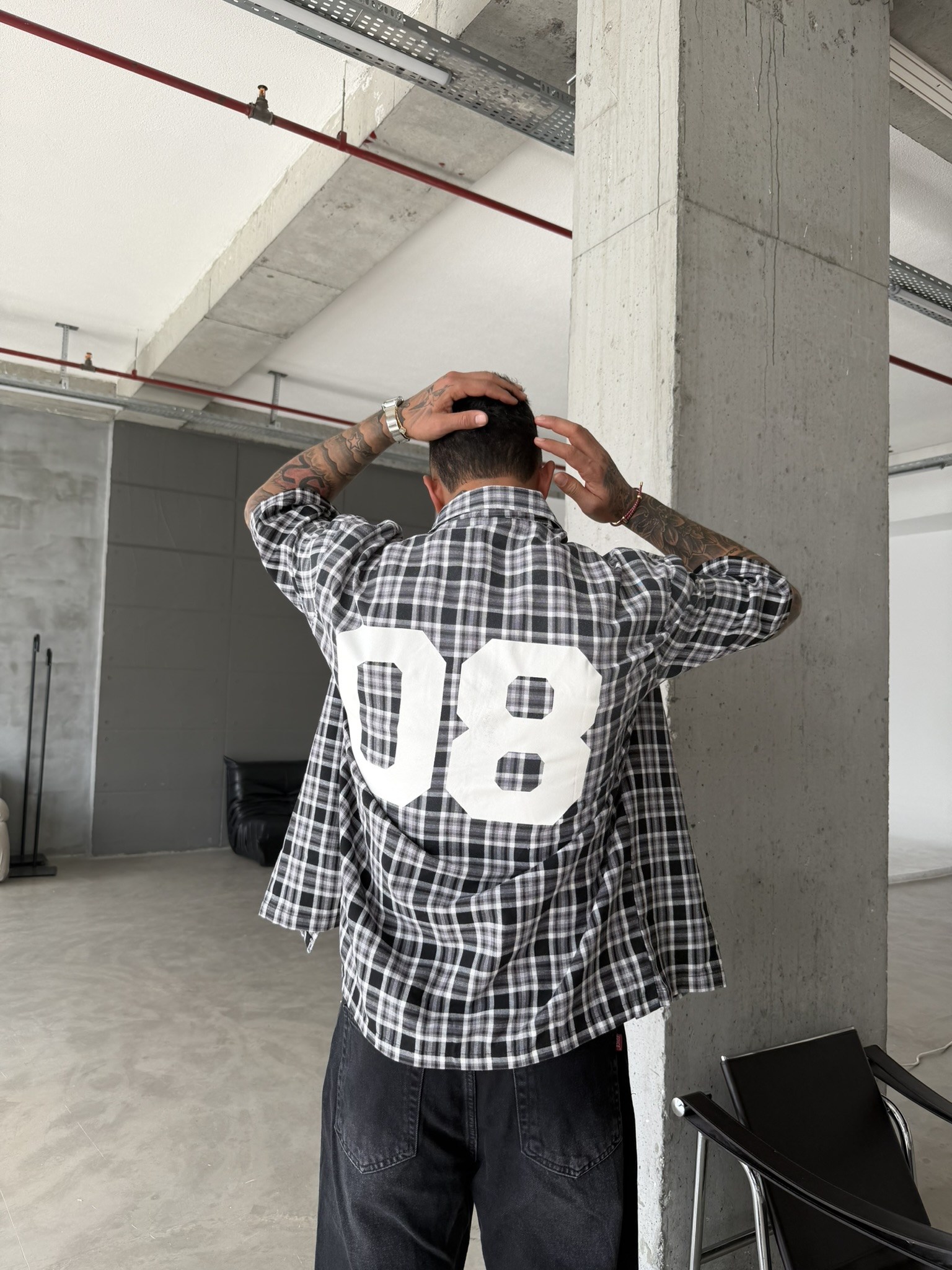 Spreyli Premium 08 Ekose Gömlek - Siyah (GML.0052-Siyah-S)