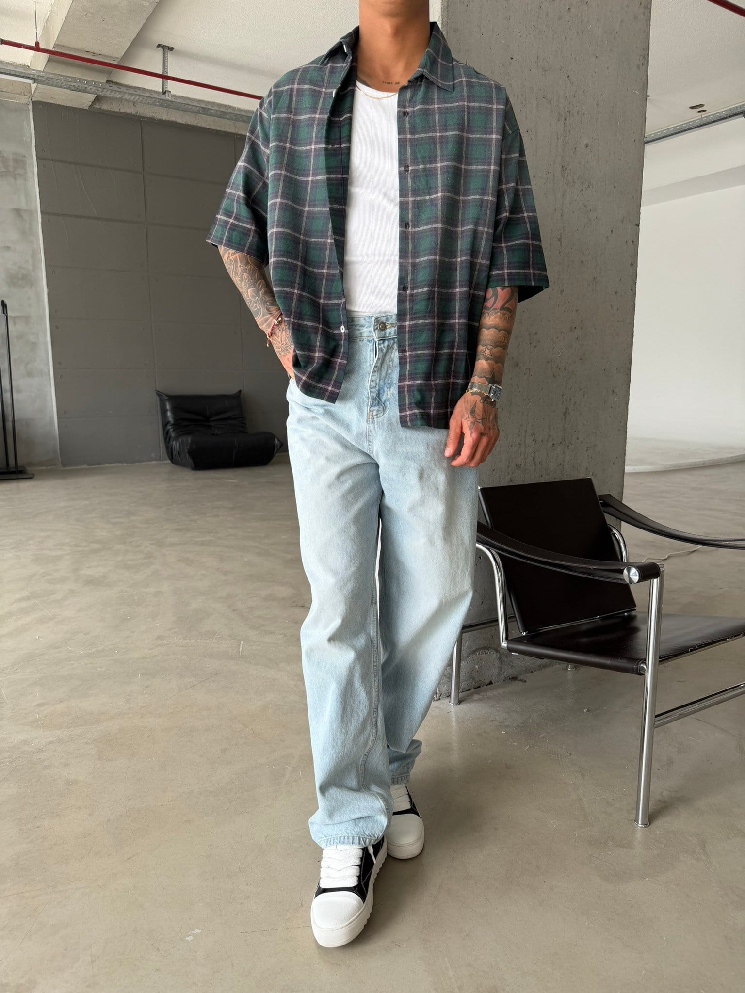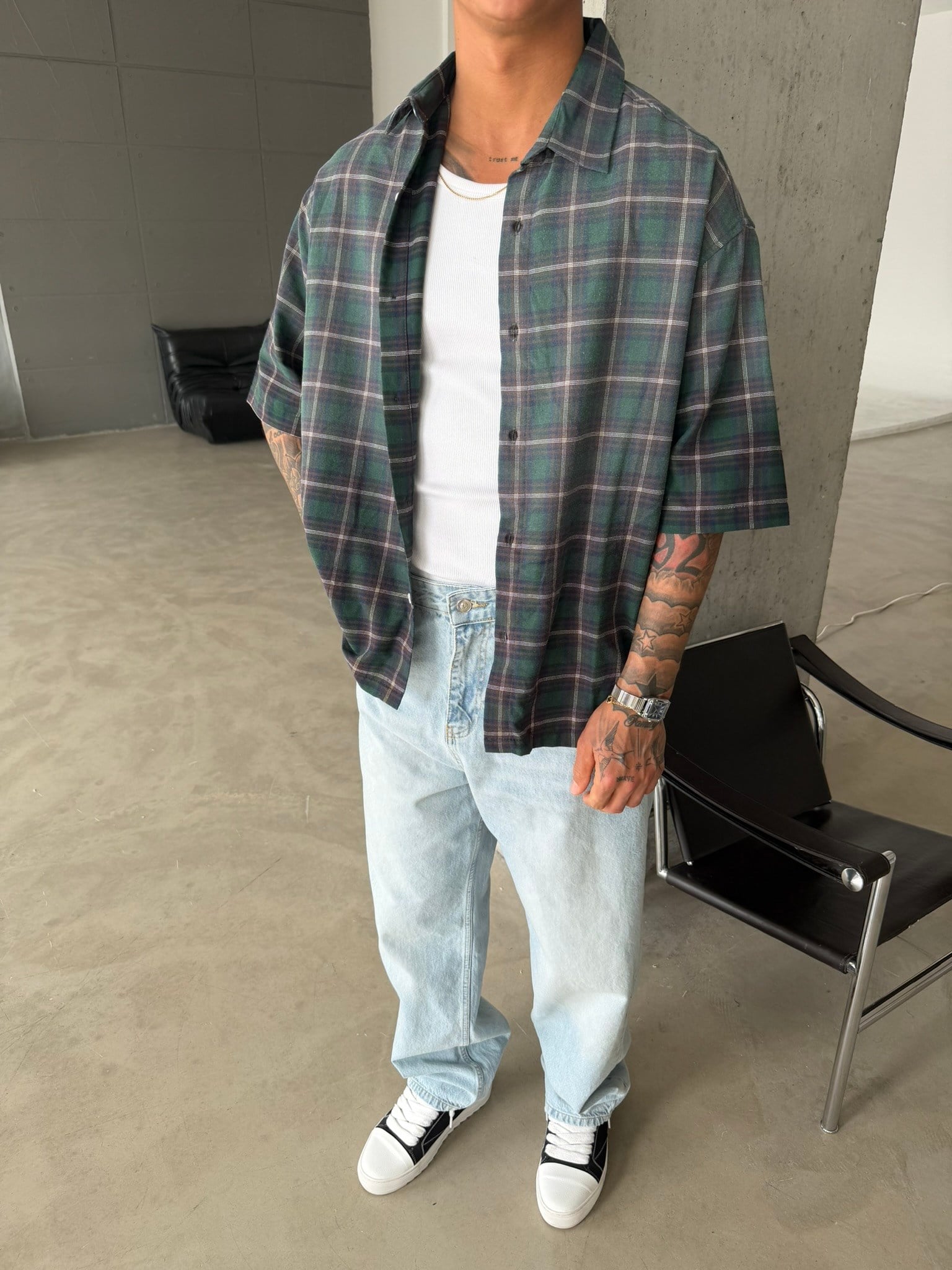 Spreyli Premium 08 Ekose Gömlek - Yeşil (GML.0052-Yeşil-S)
