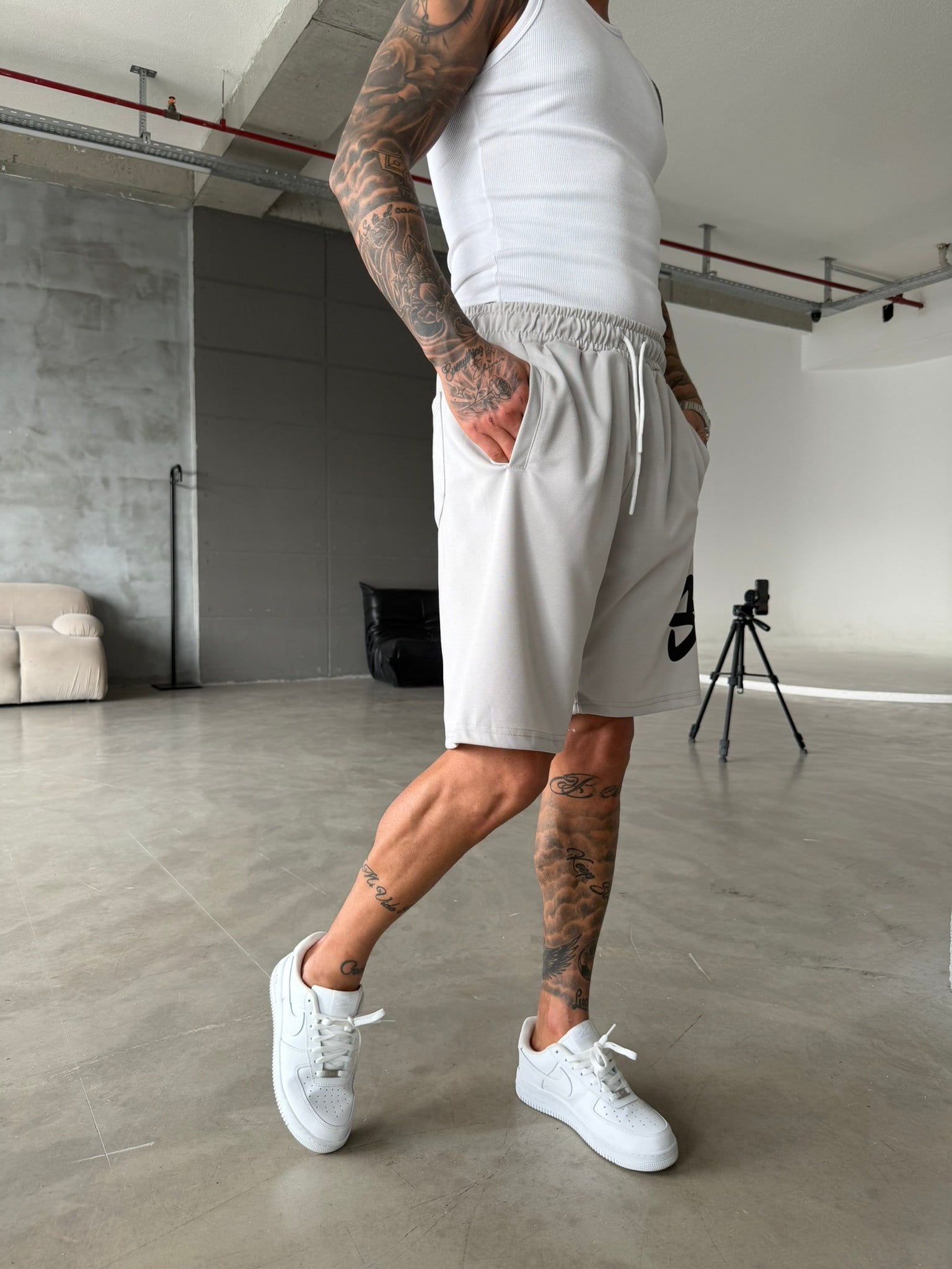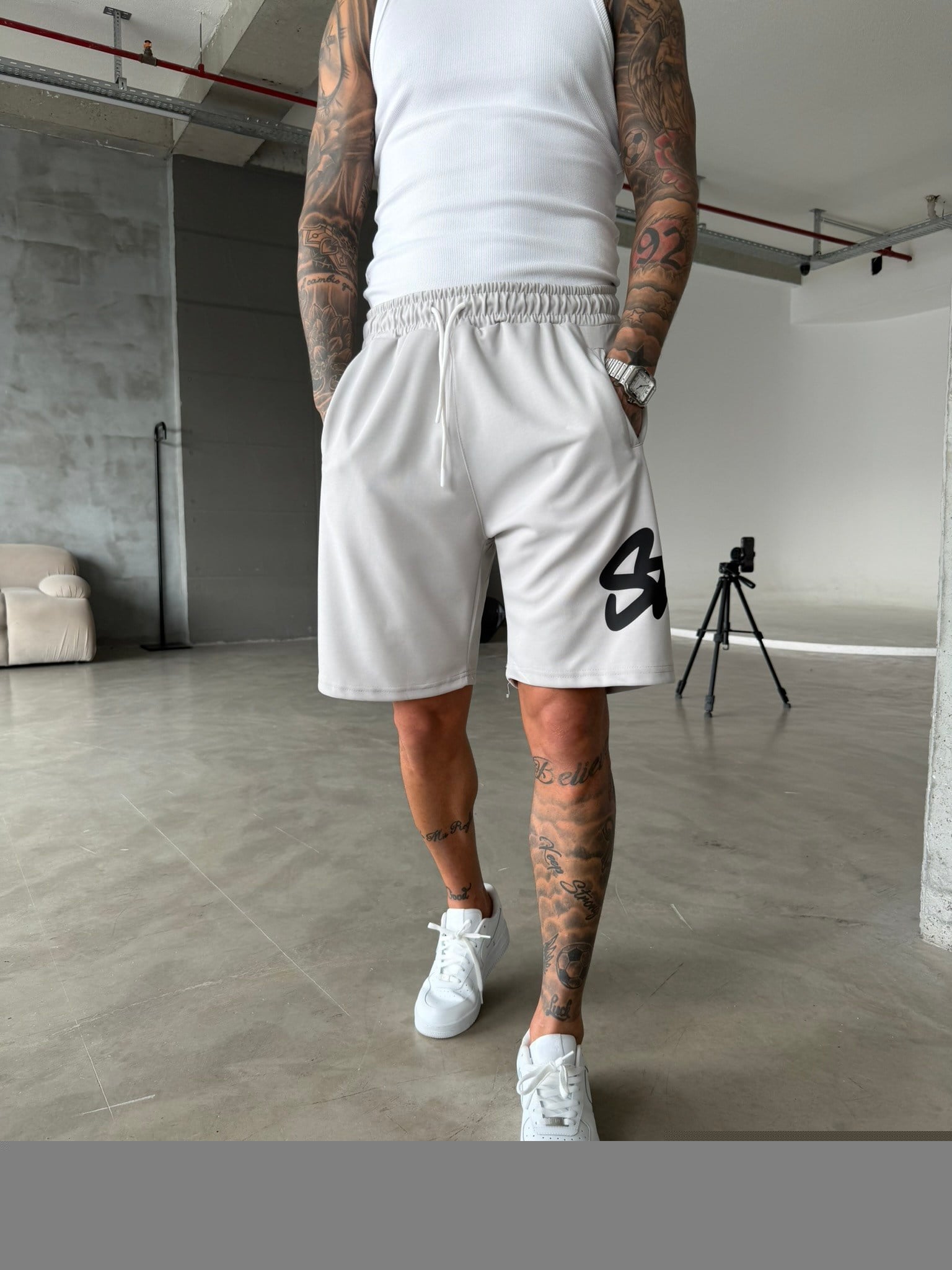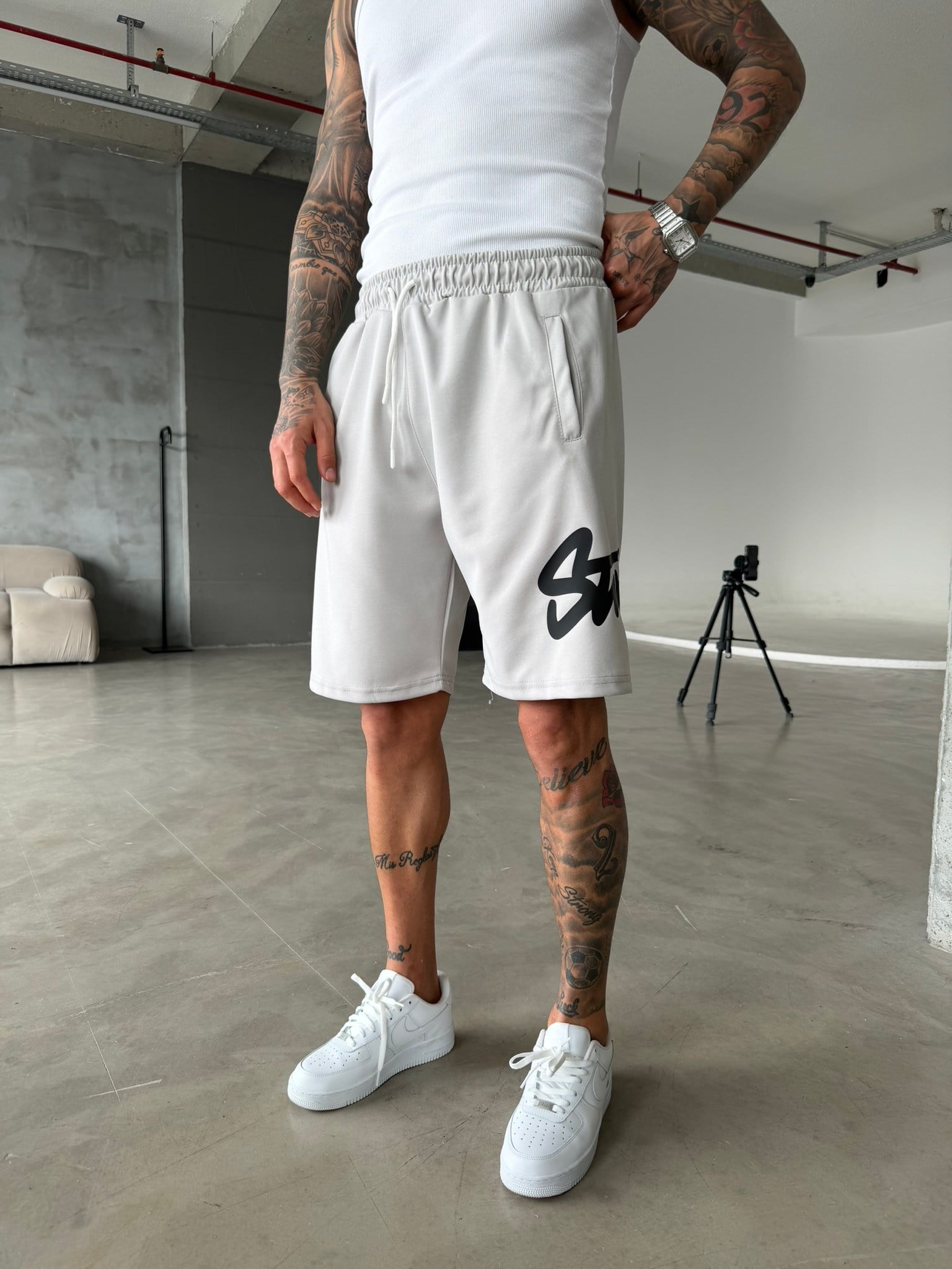 Stwd Büyük Baskı Şort - Boyama Gri (ŞRT.004-Boyama Gri-S)