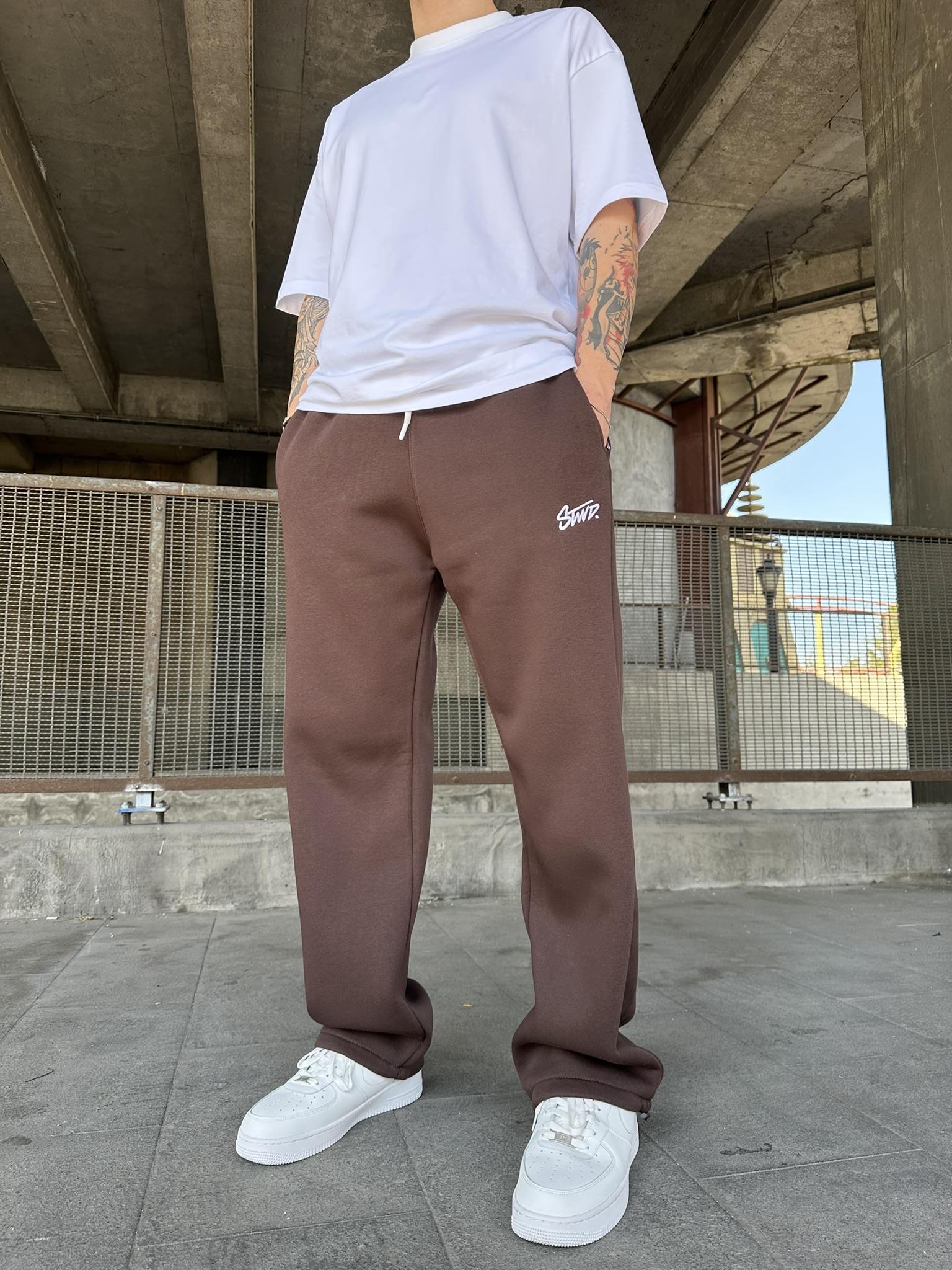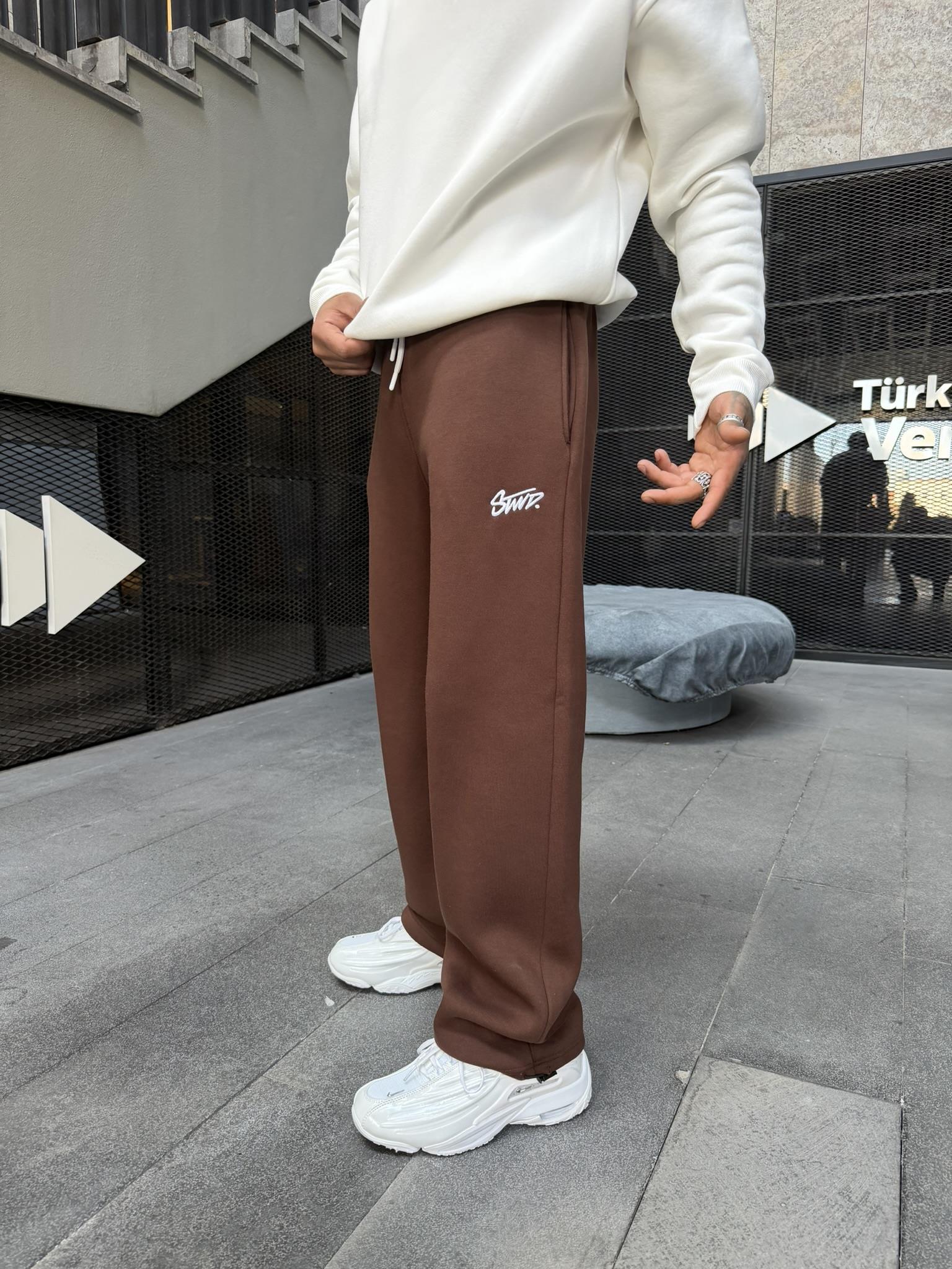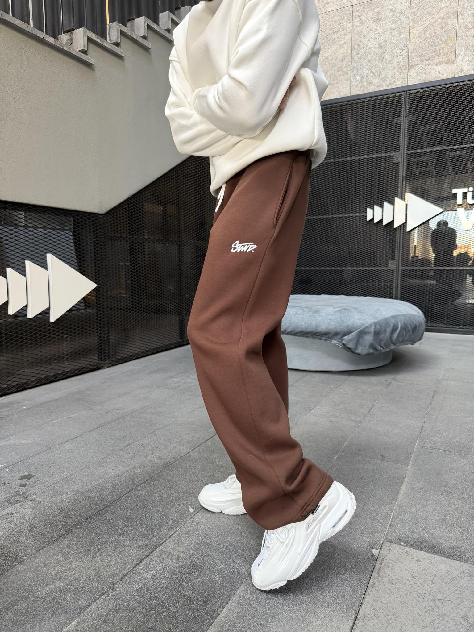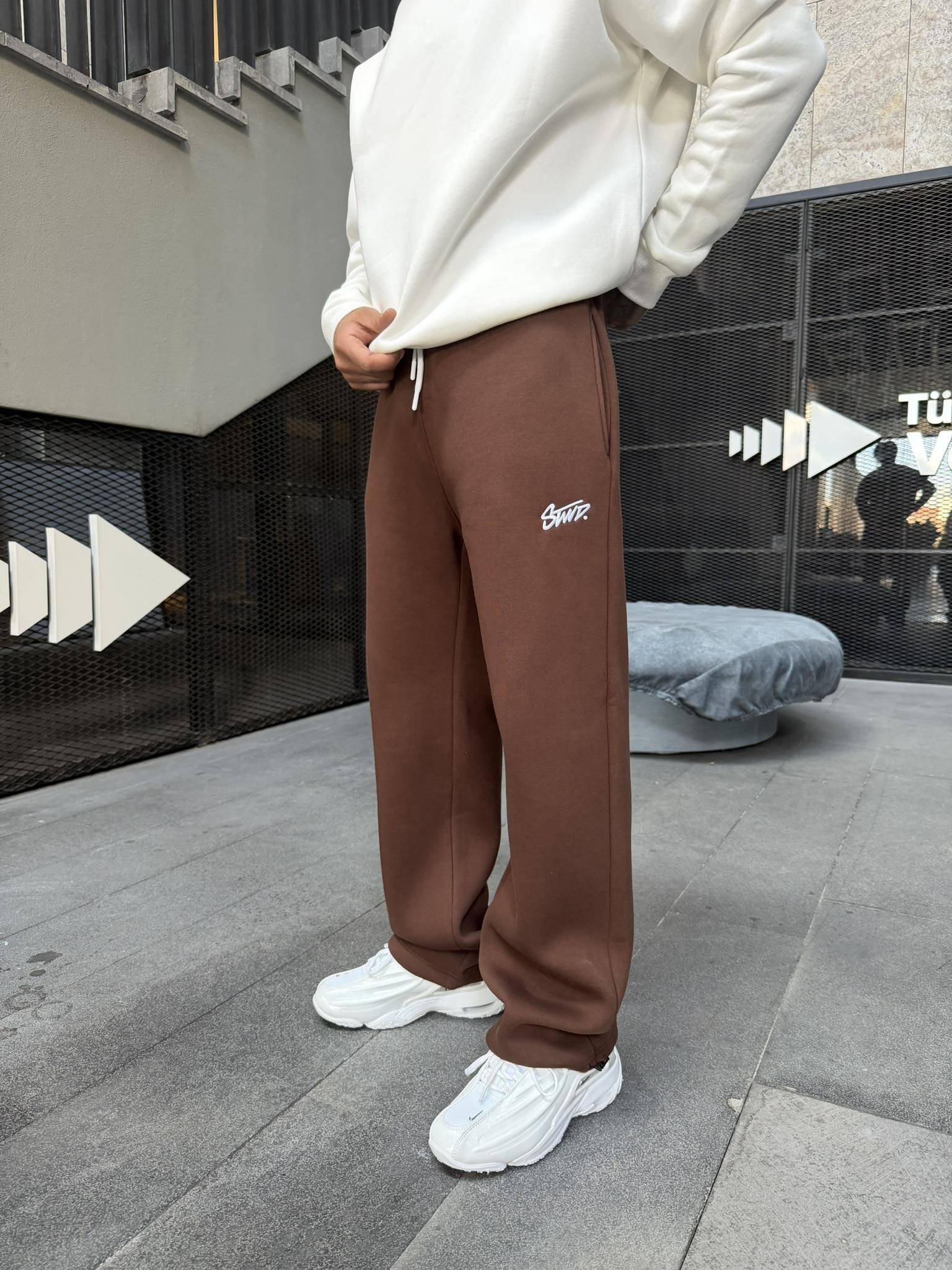 Stwd Nakışlı Stoper Paça Lastikli Eşofman Altı -Kahve (ST00445-Kahve)