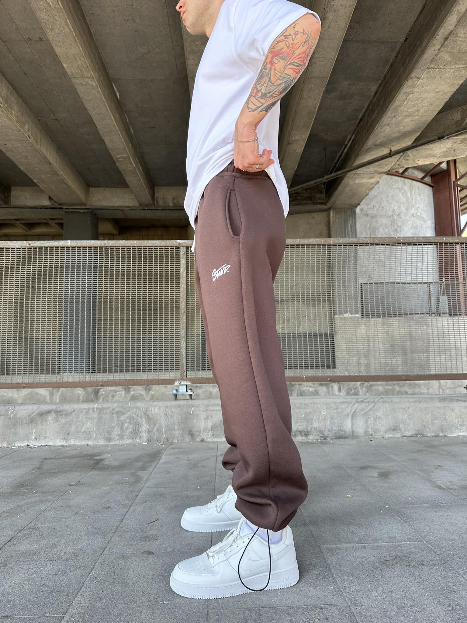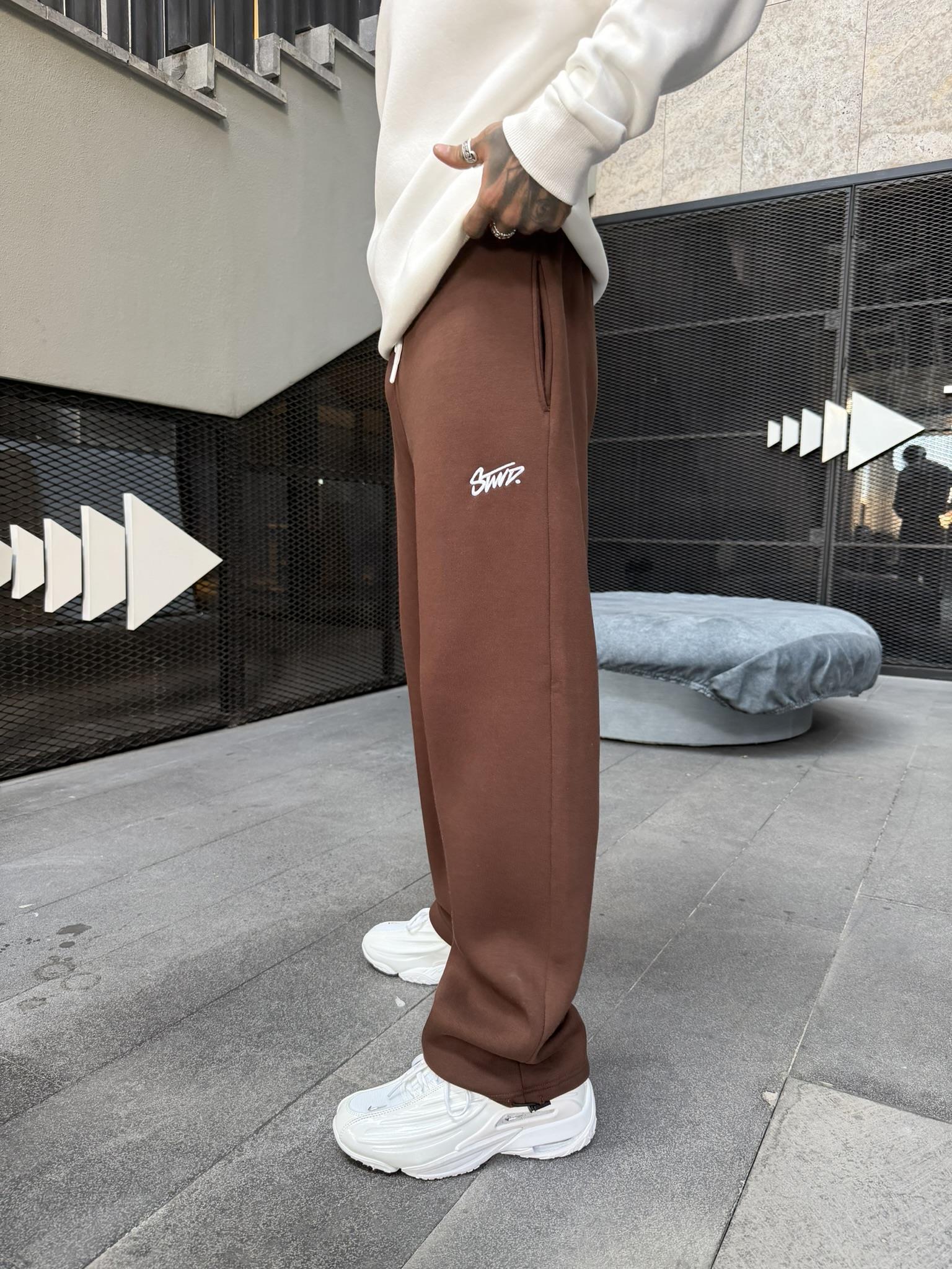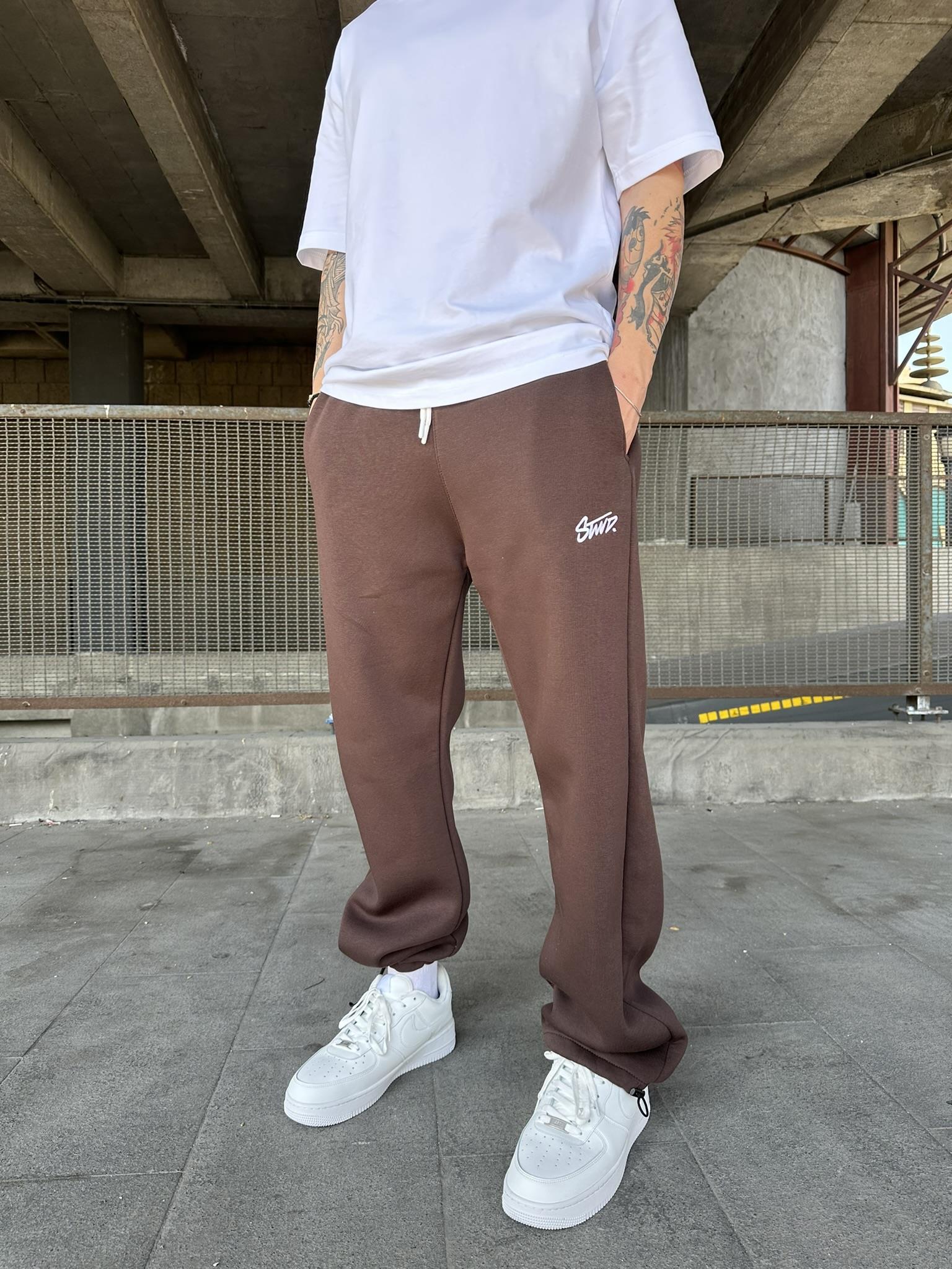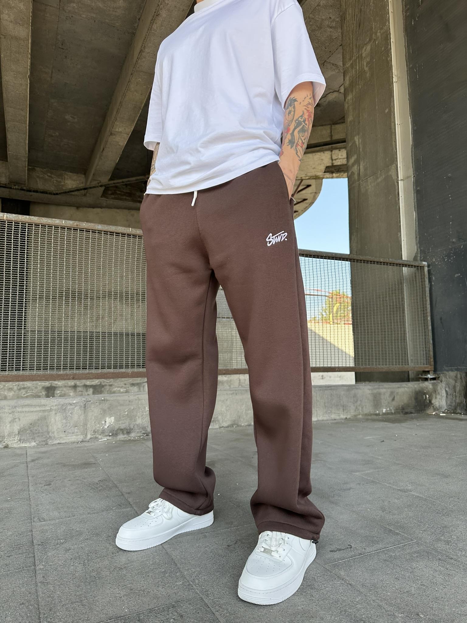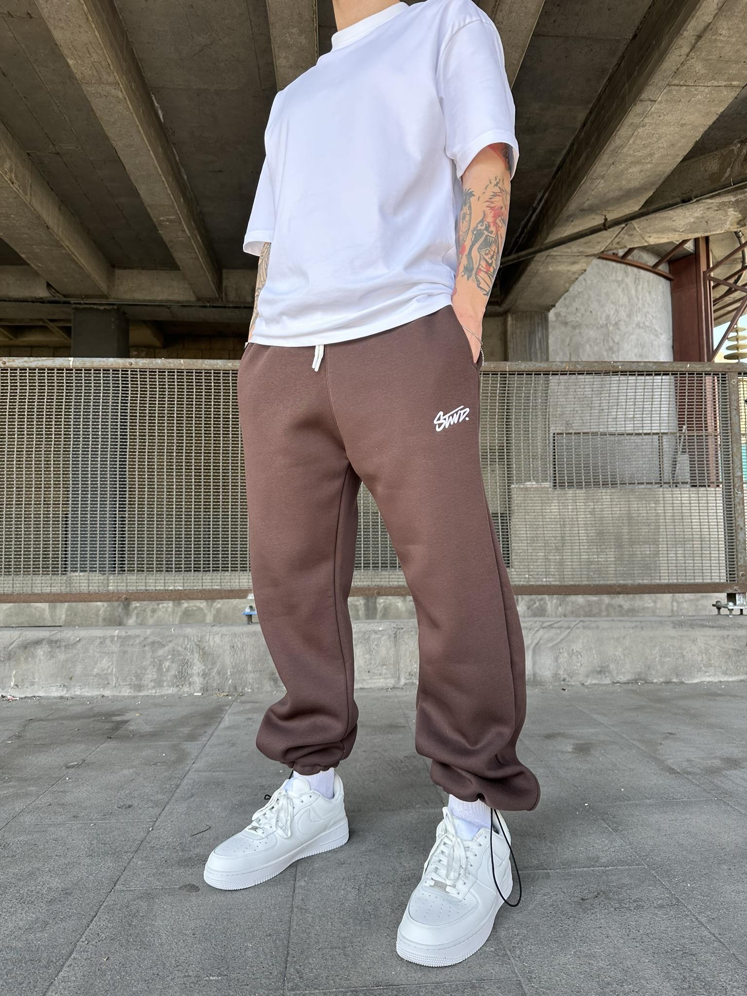 Stwd Nakışlı Stoper Paça Lastikli Eşofman Altı -Kahve (ST00445-Kahve)