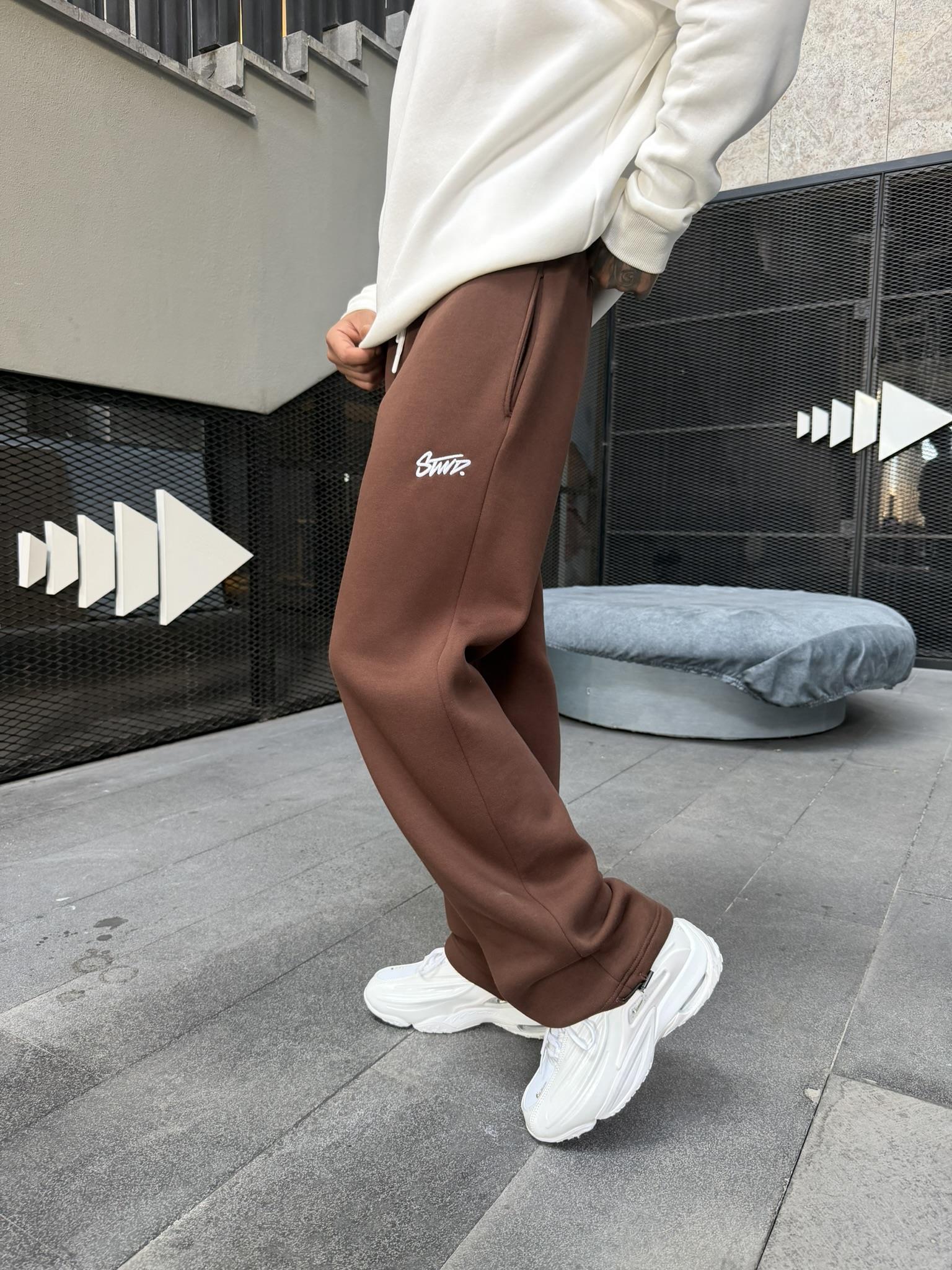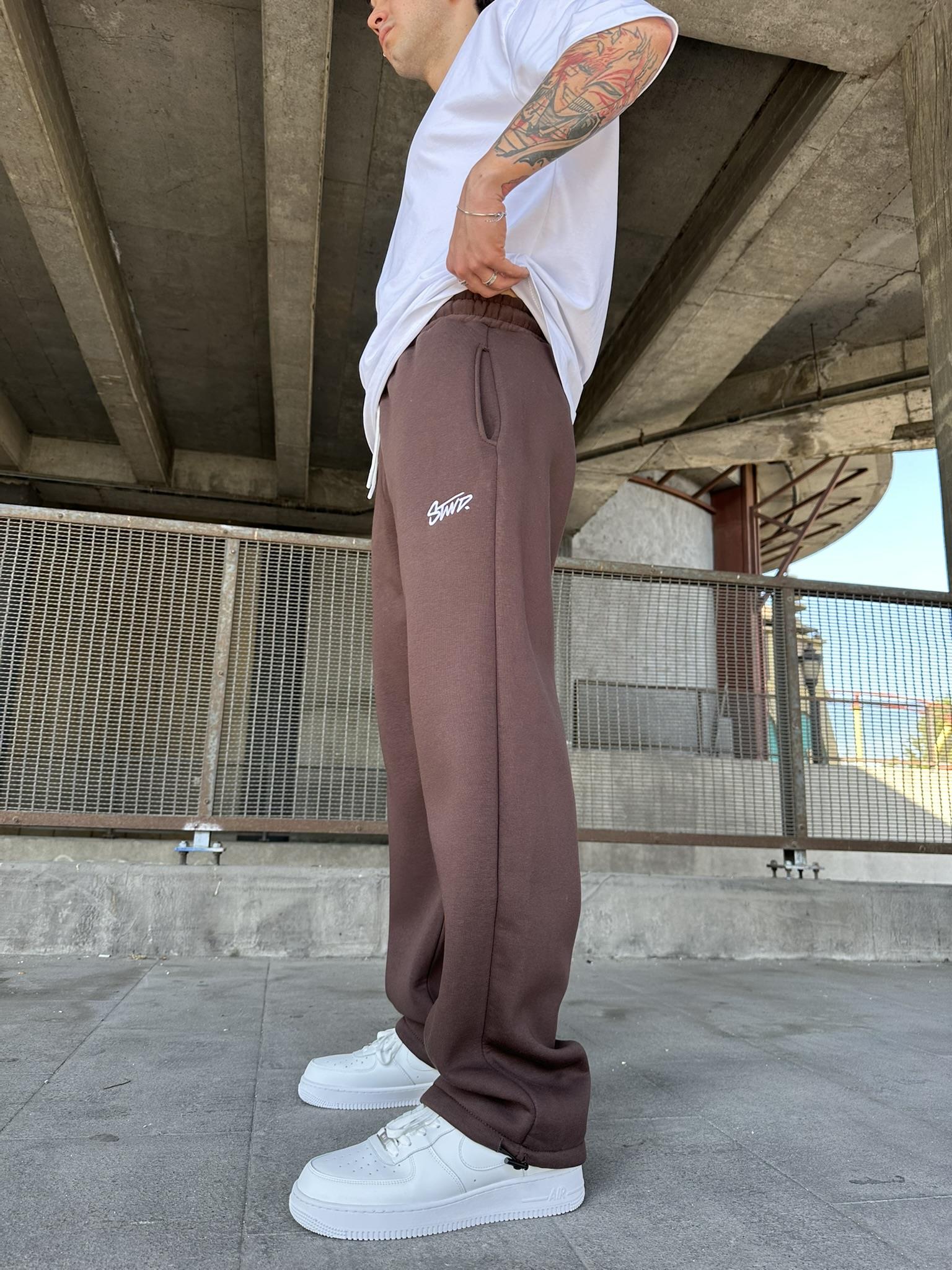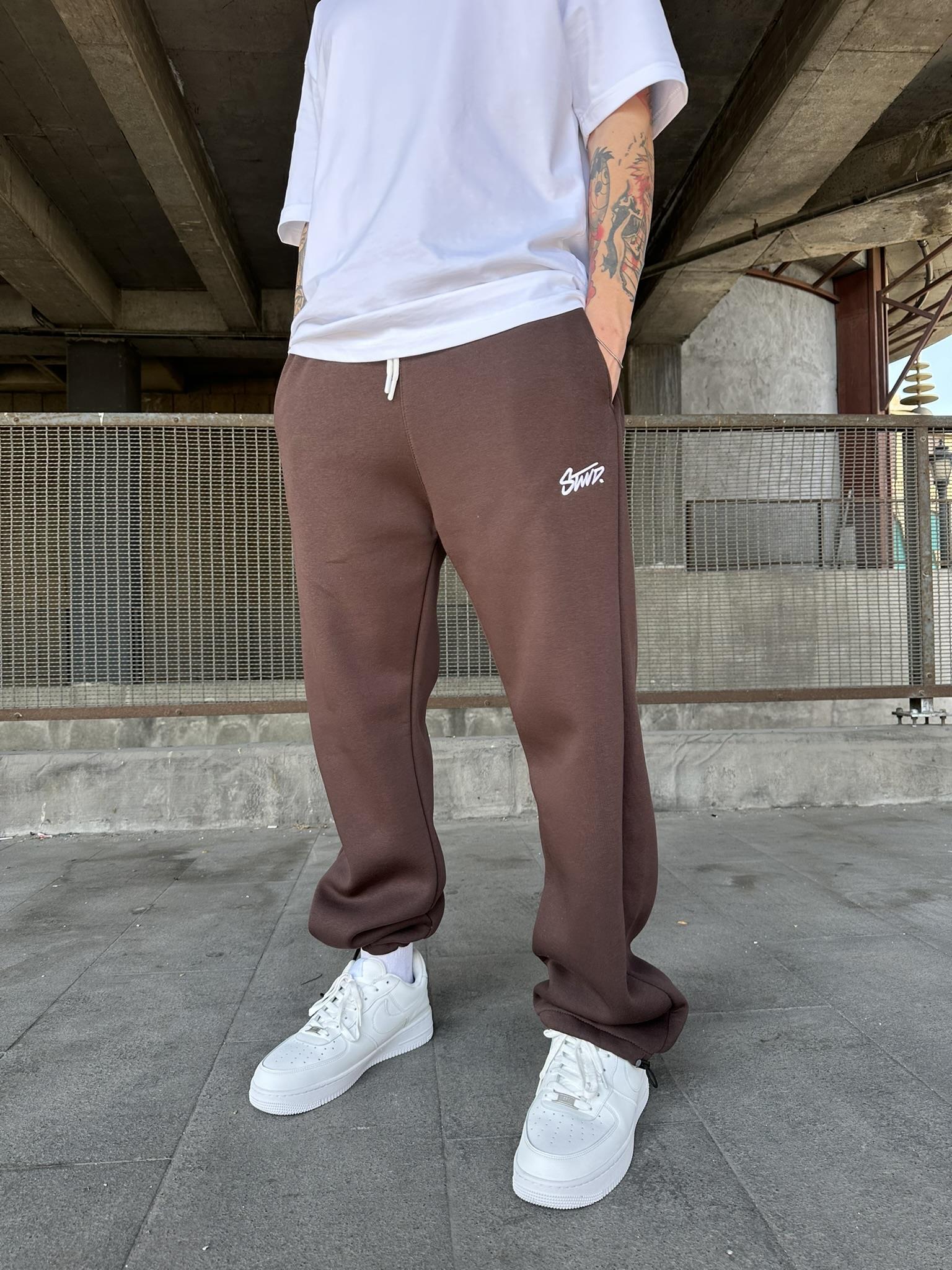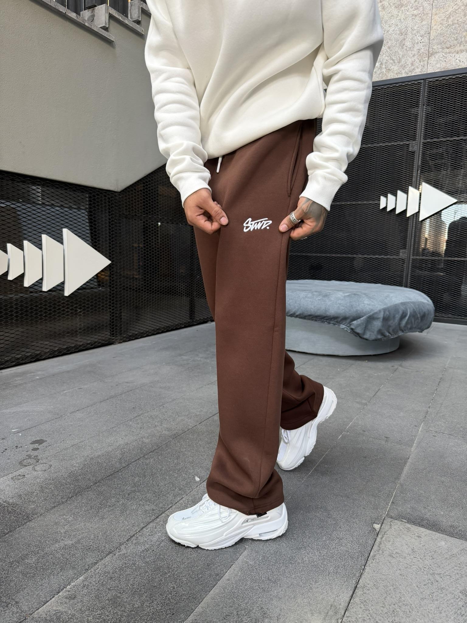 Stwd Nakışlı Stoper Paça Lastikli Eşofman Altı -Kahve (ST00445-Kahve)