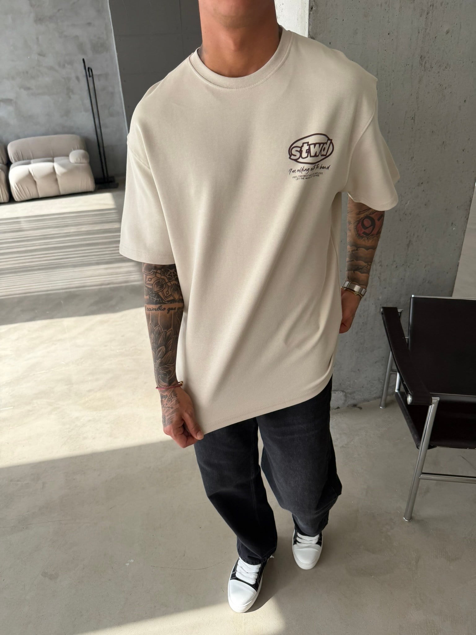 SW Premium Baskılı T-Shirt - Bej (TST.0186-Bej-S)