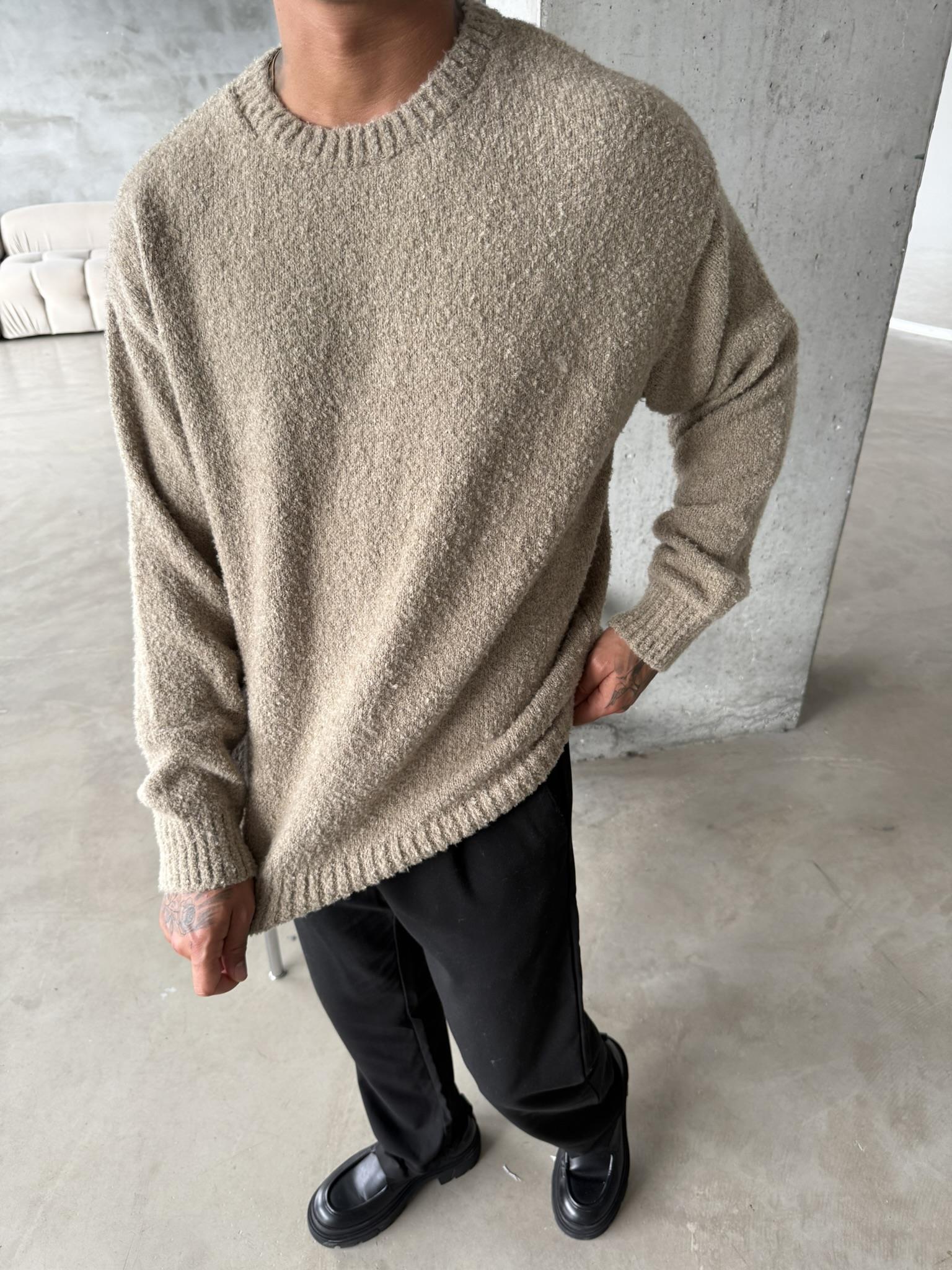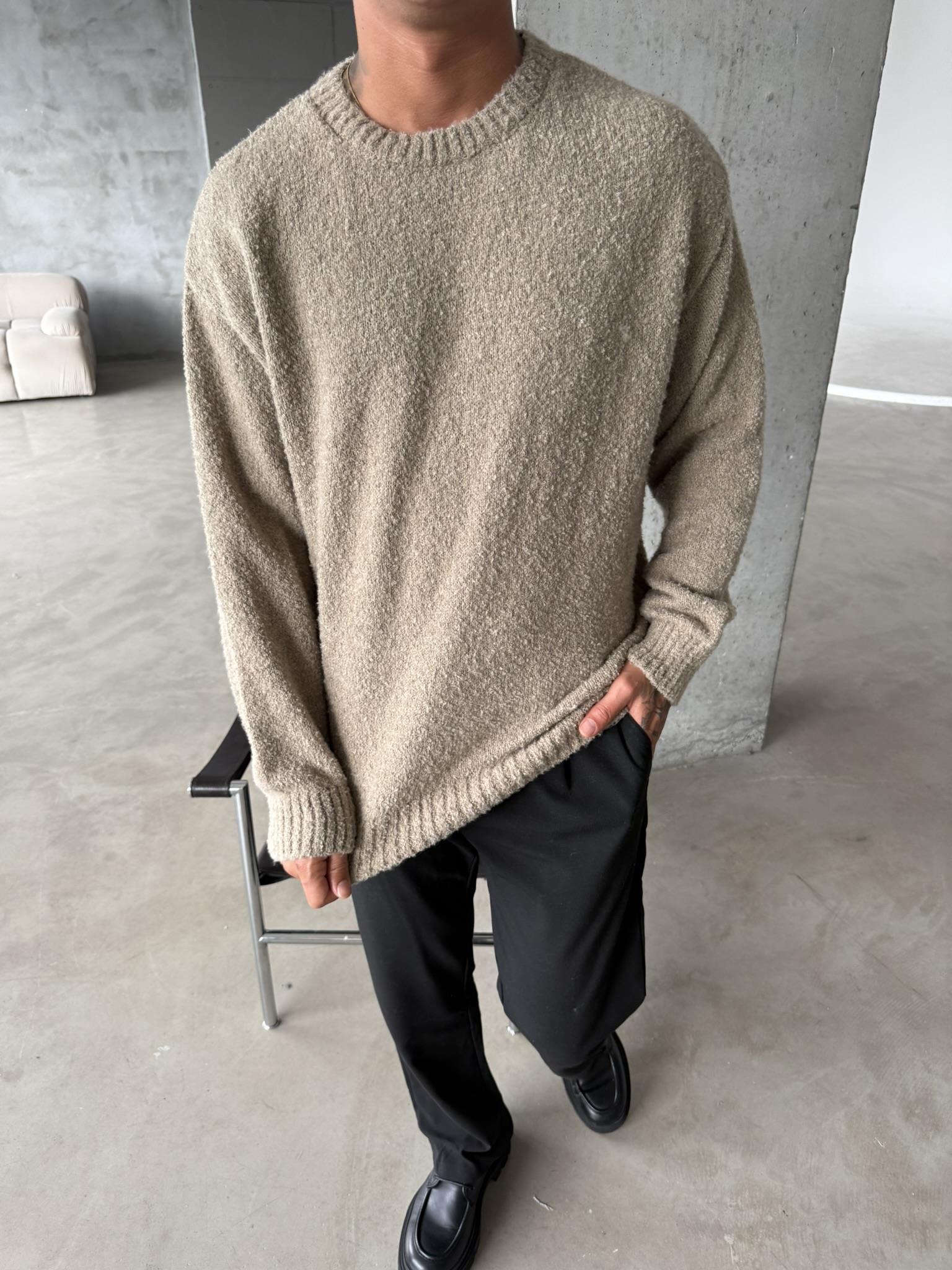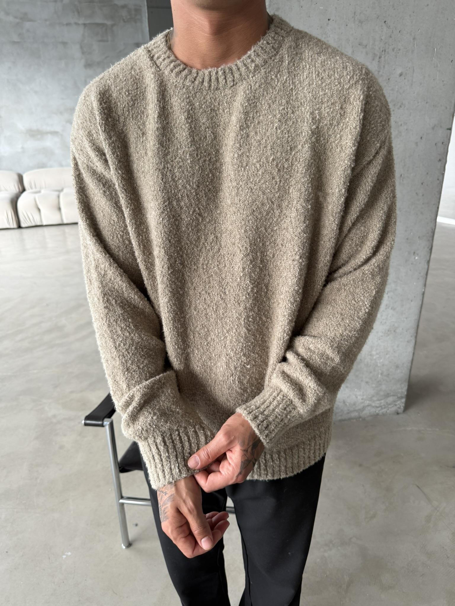 Tüylü Peluş Triko Kazak - Kahve (SWT.0010-Kahve-S)