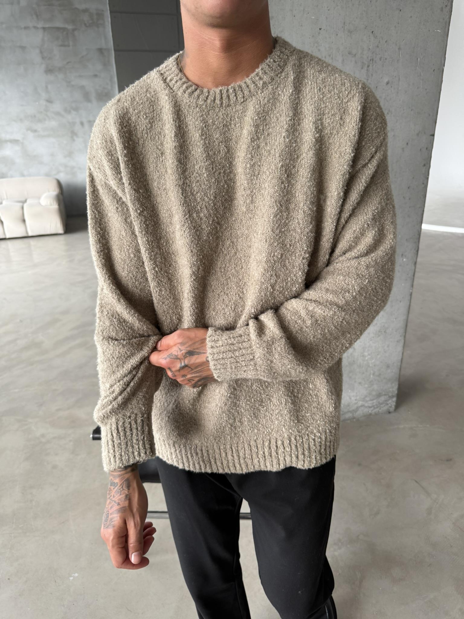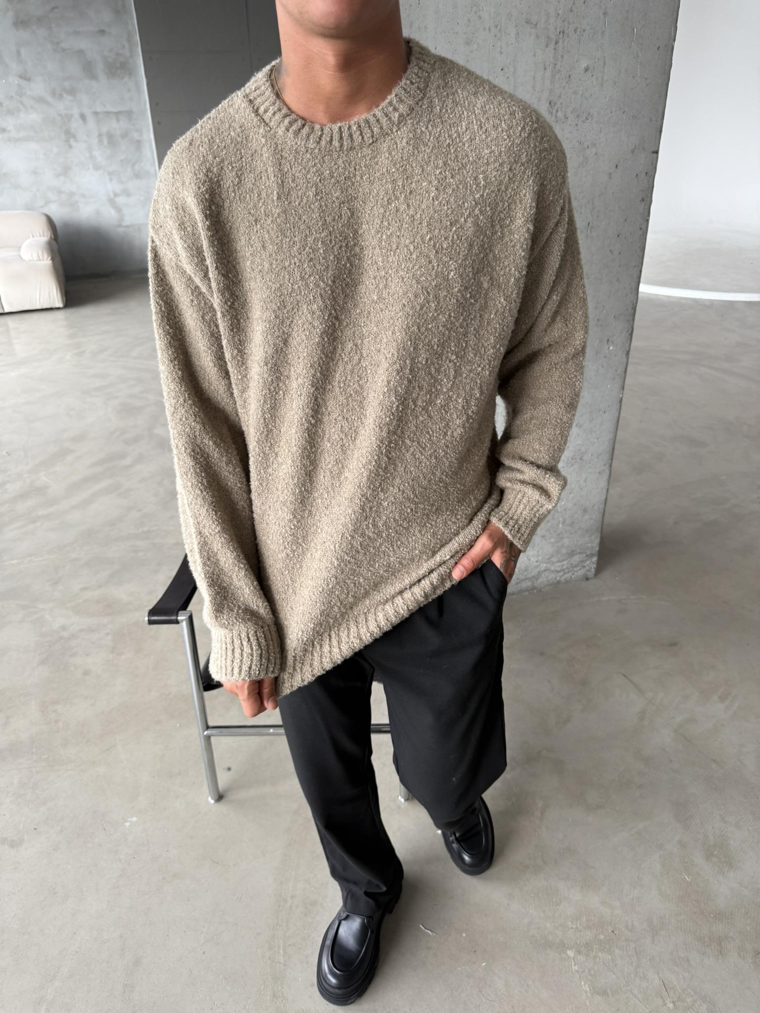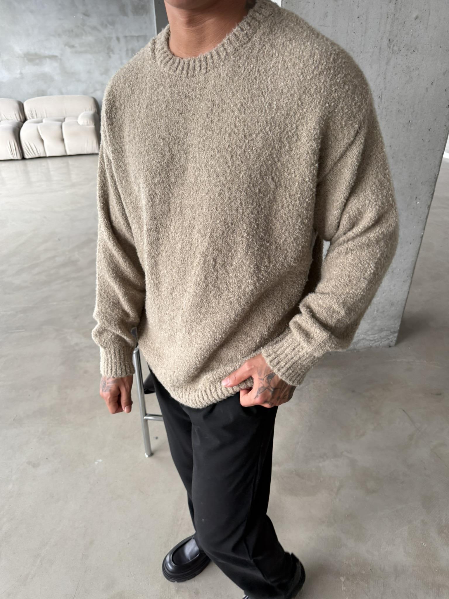 Tüylü Peluş Triko Kazak - Kahve (SWT.0010-Kahve-S)