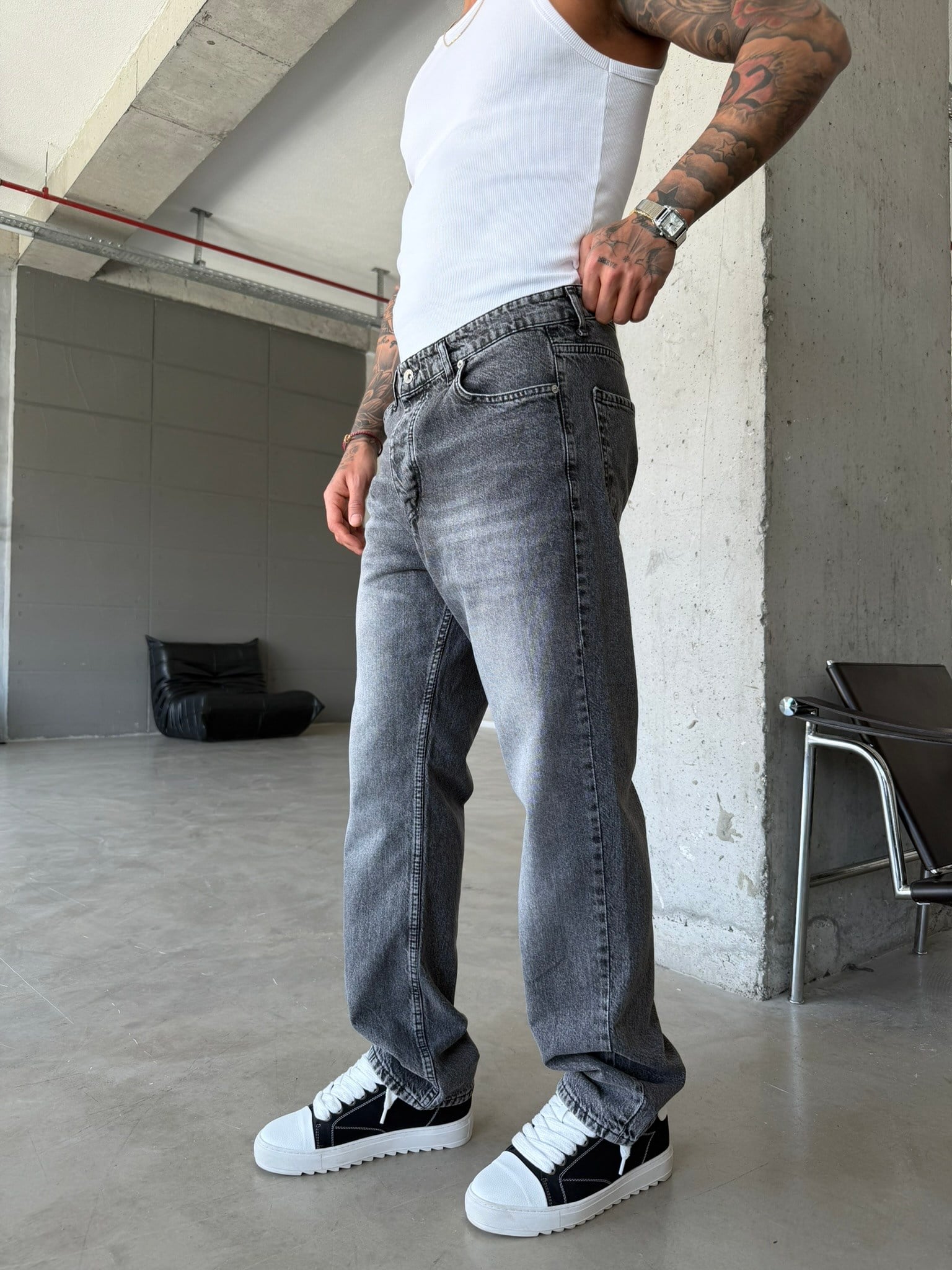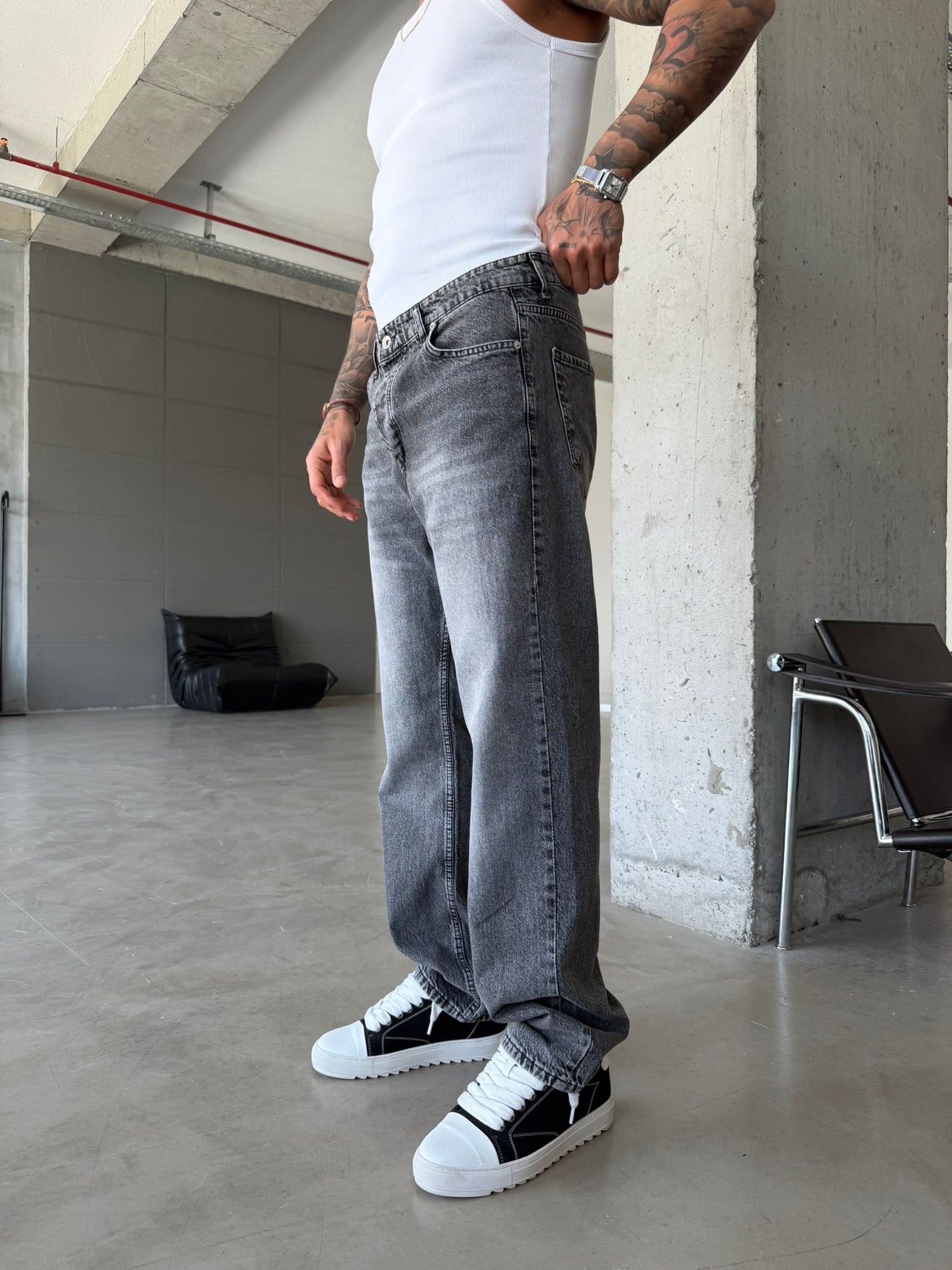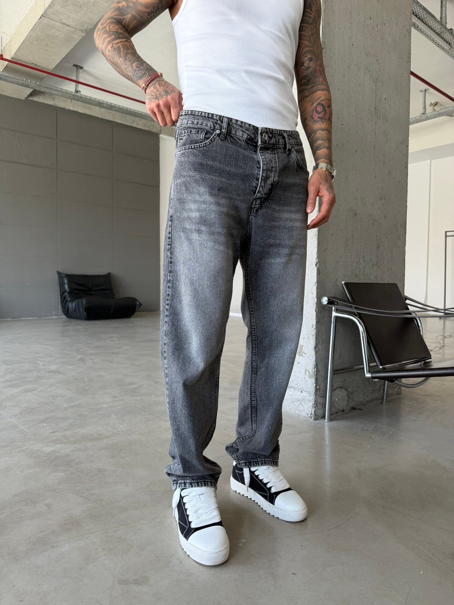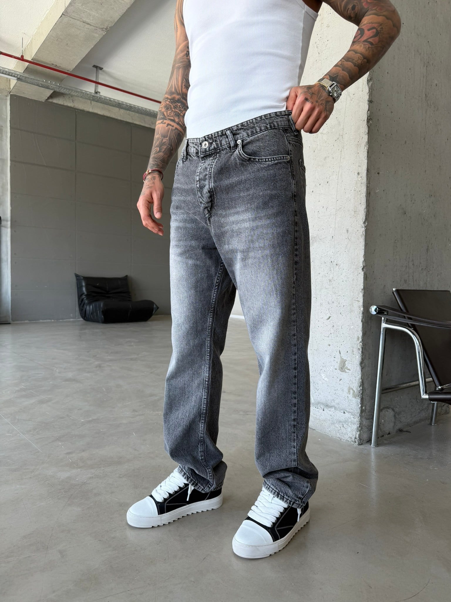 Yıkamalı Basic Baggy Fit Pantolon - Gri (PNT.0148-Gri-29)