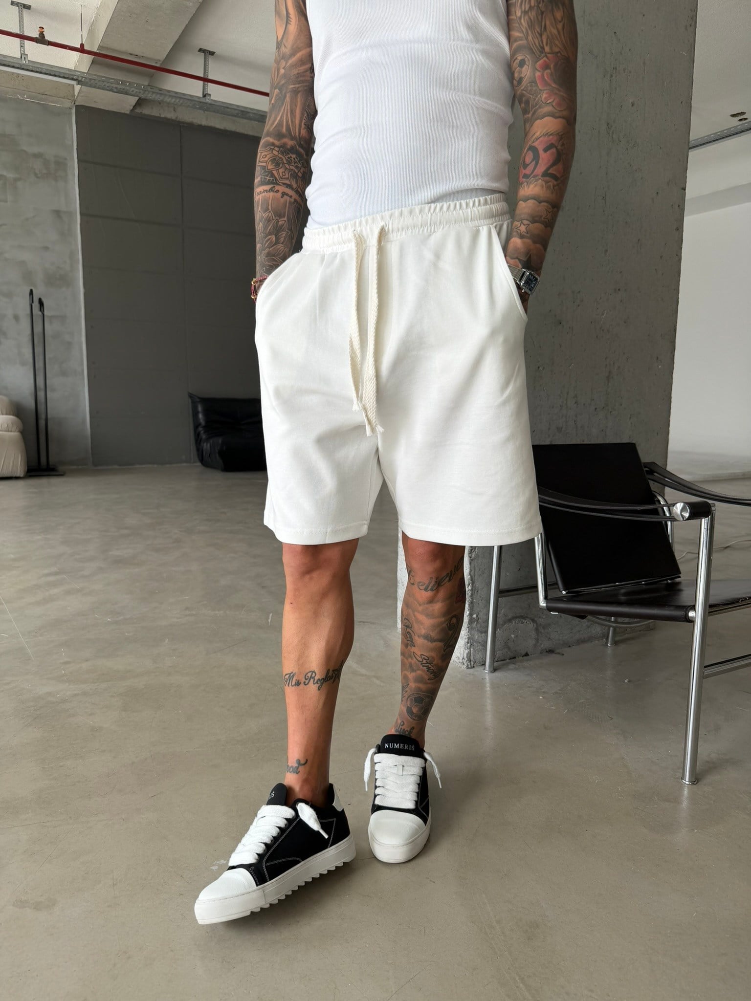 Yıkamalı Basic Premium Kumaş Şort - Beyaz (ŞRT.0018-Beyaz-S)