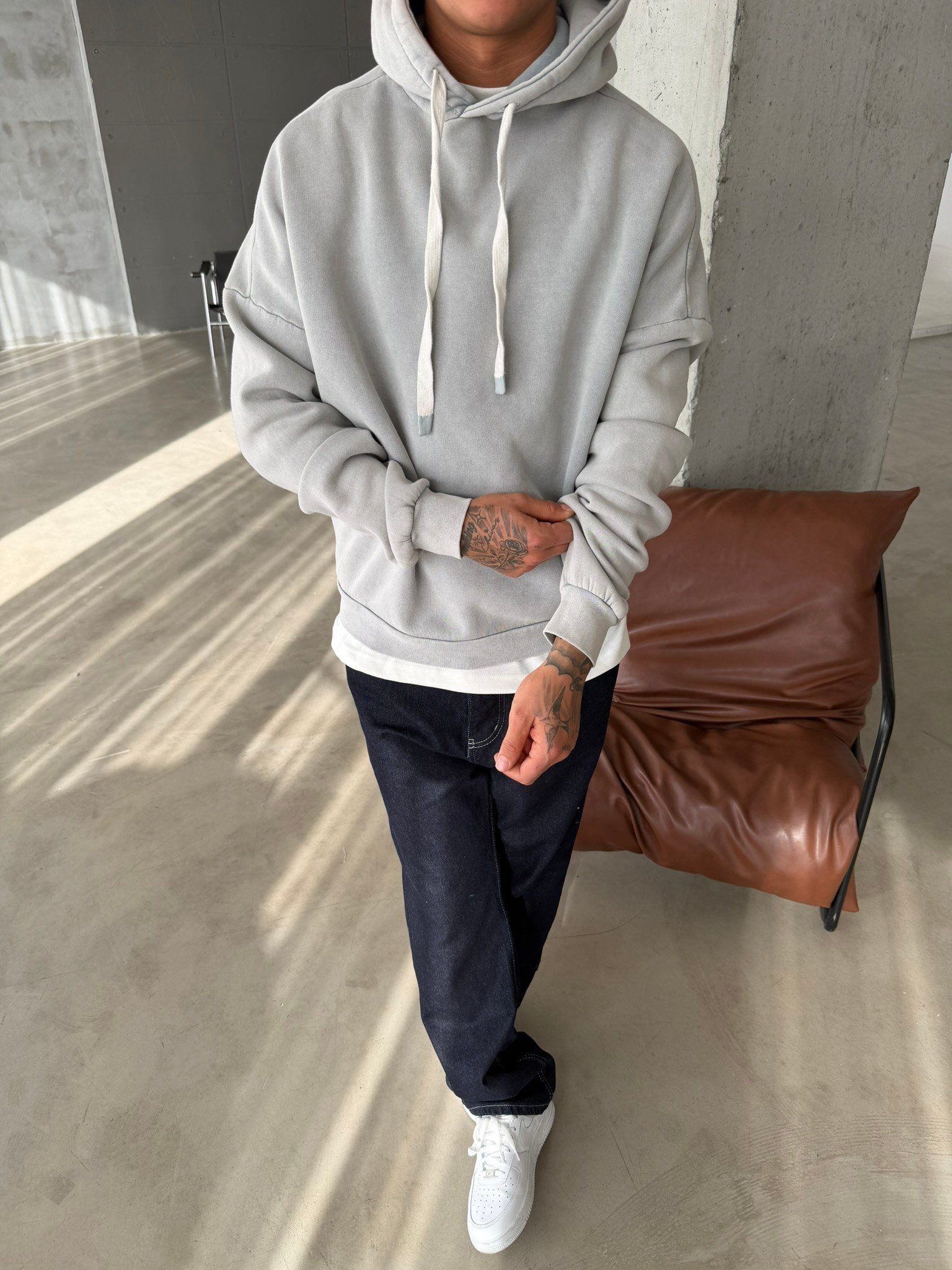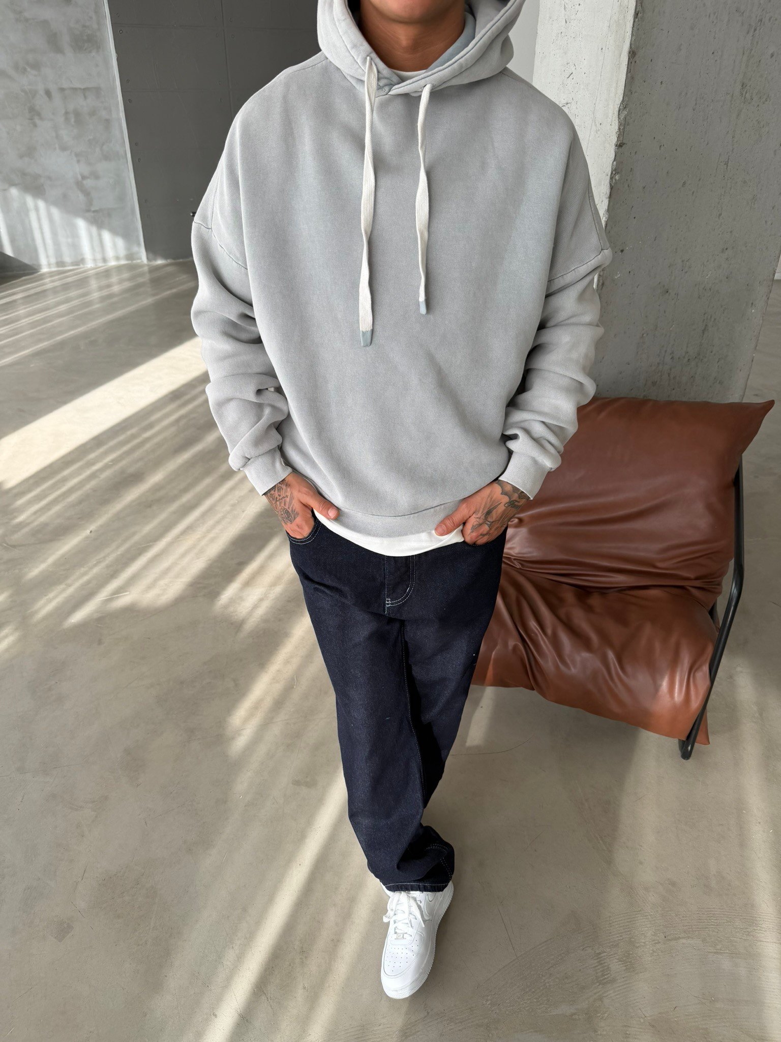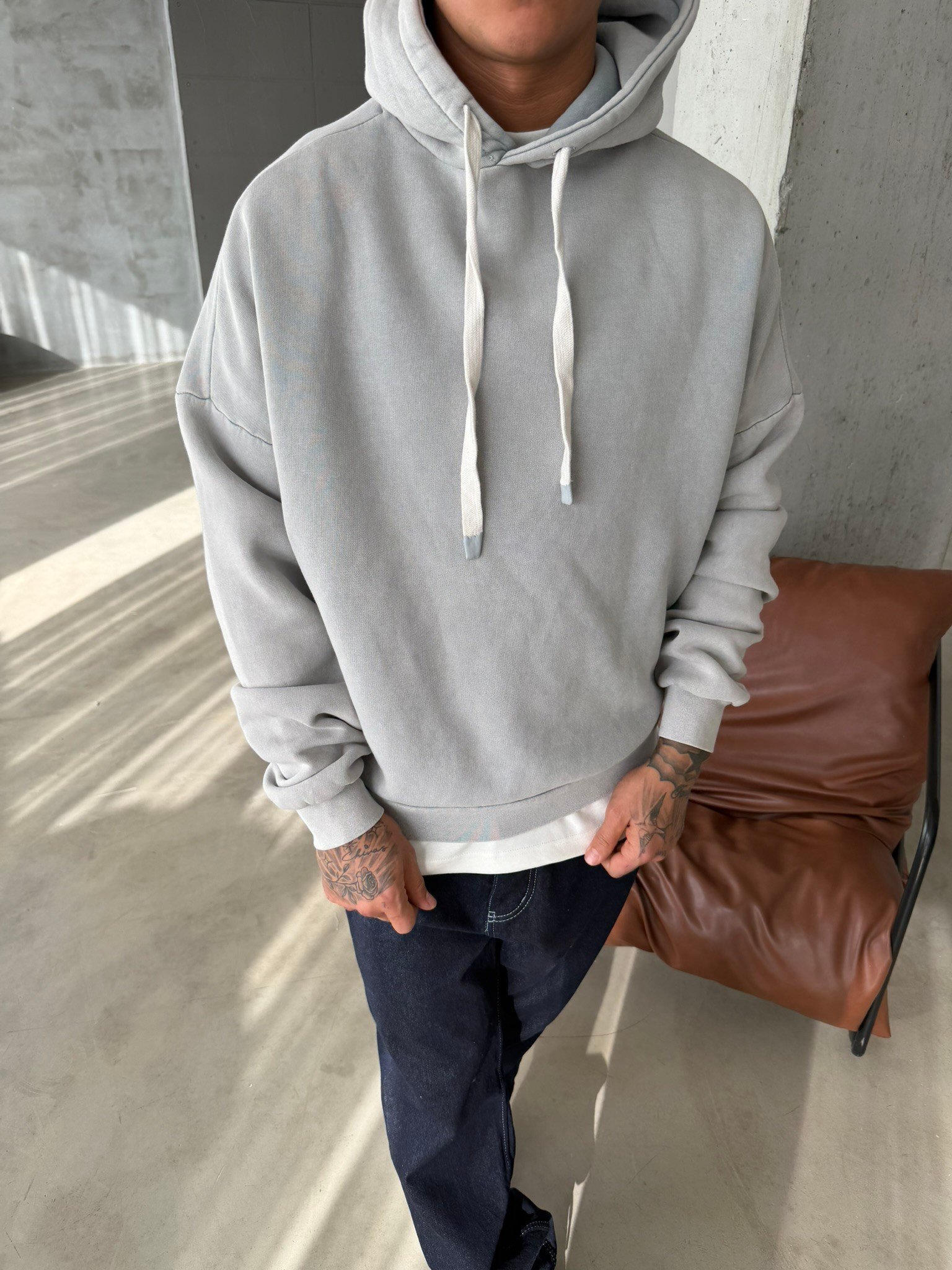 Yıkamalı İp Detaylı Sweatshirt - Gri (SWT.0076-Gri-S)