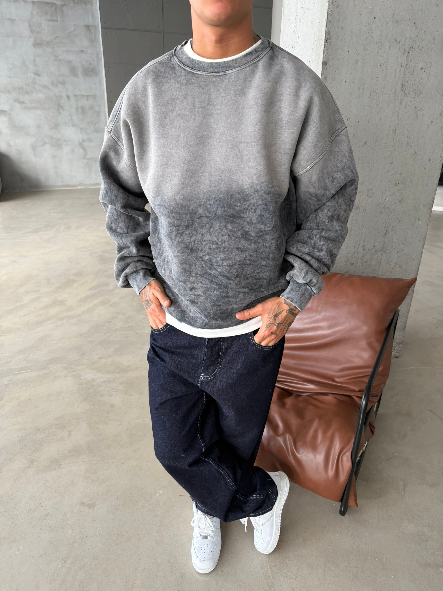Yıkamalı Retro Sweat - Gri (SWT.0074-Gri-S)