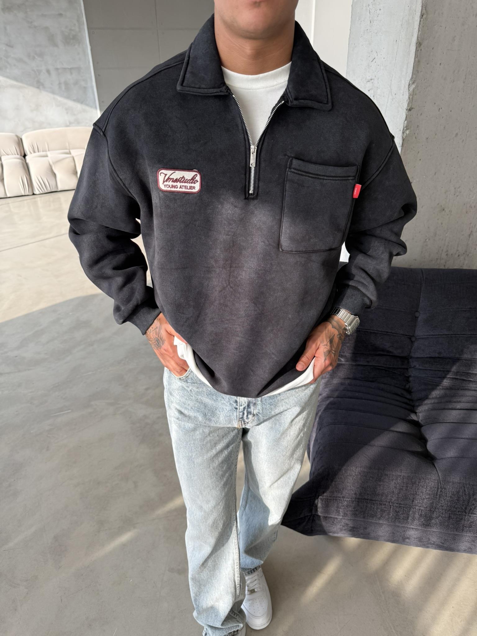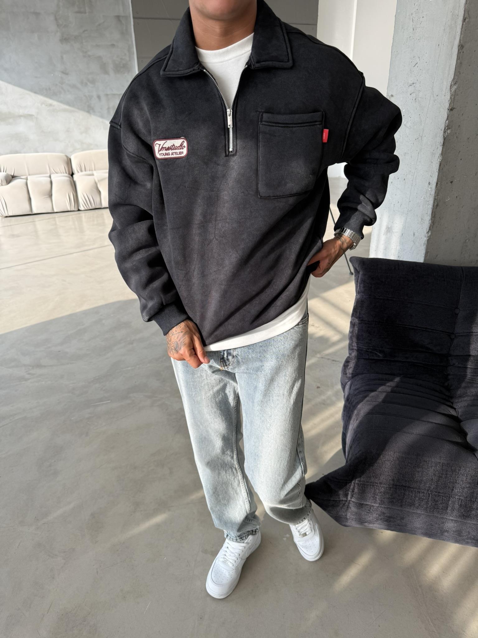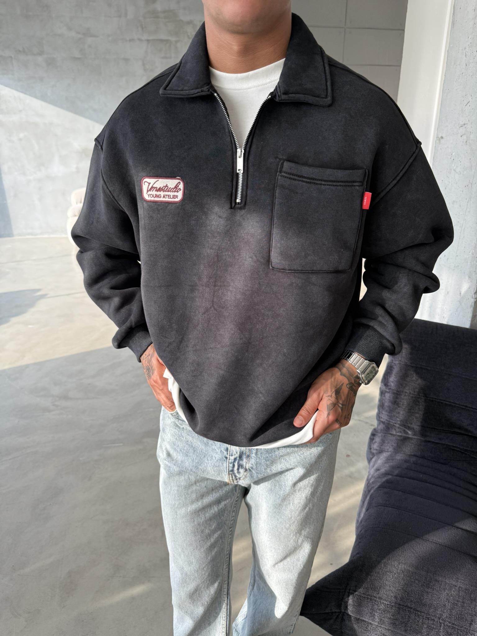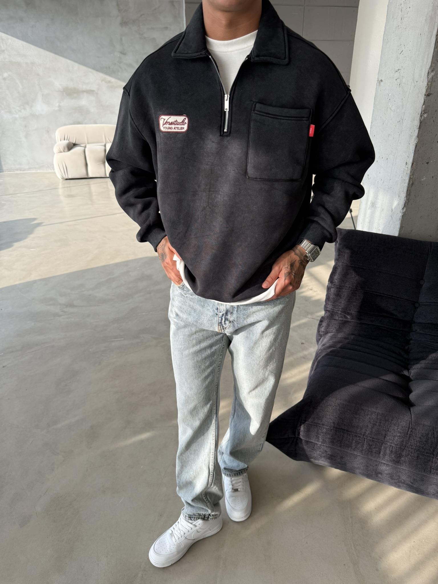 Yıkamalı Yarım Fermuar Young Atelier Sweat - Siyah (SWT.0037-Siyah-S)