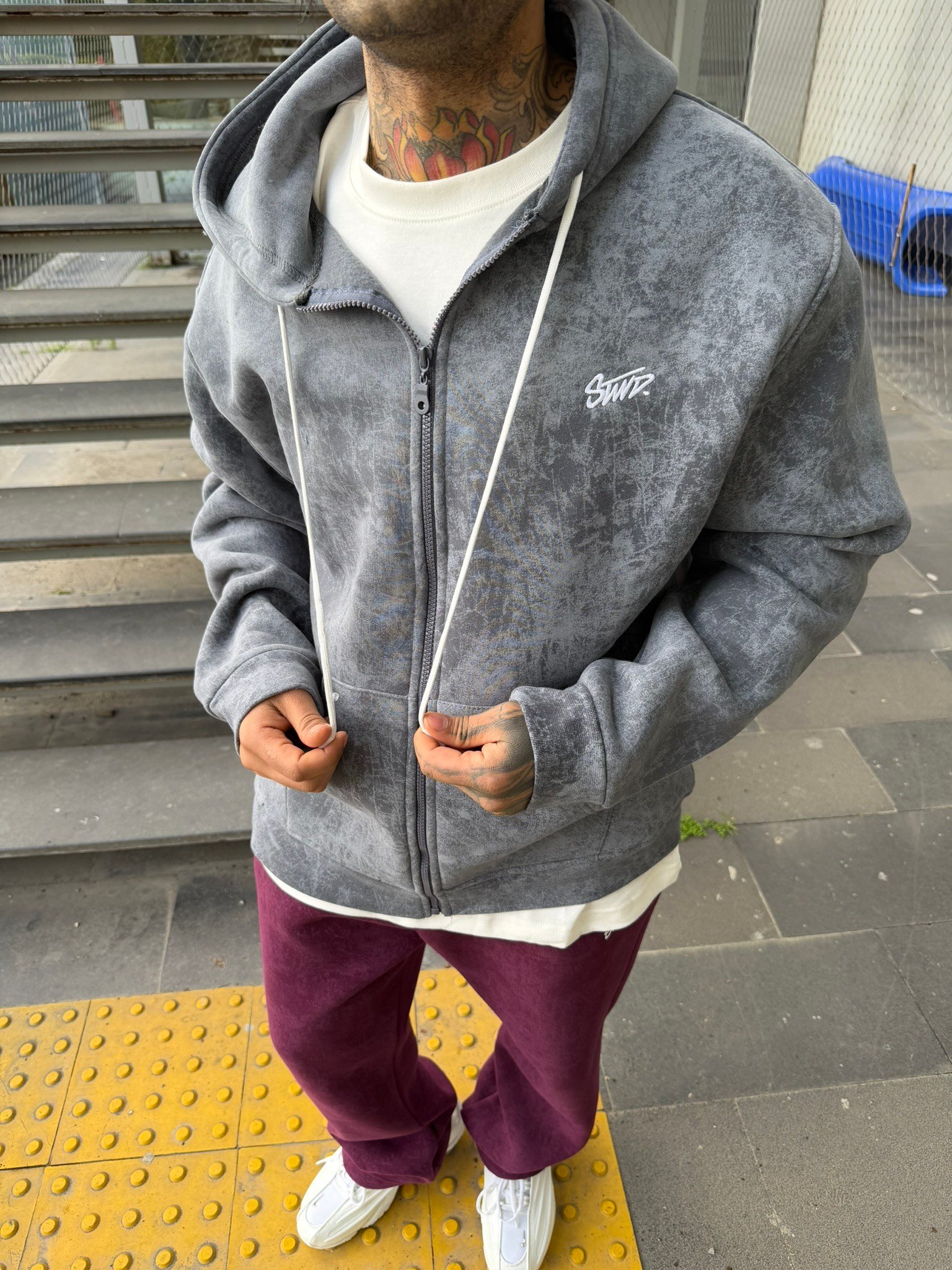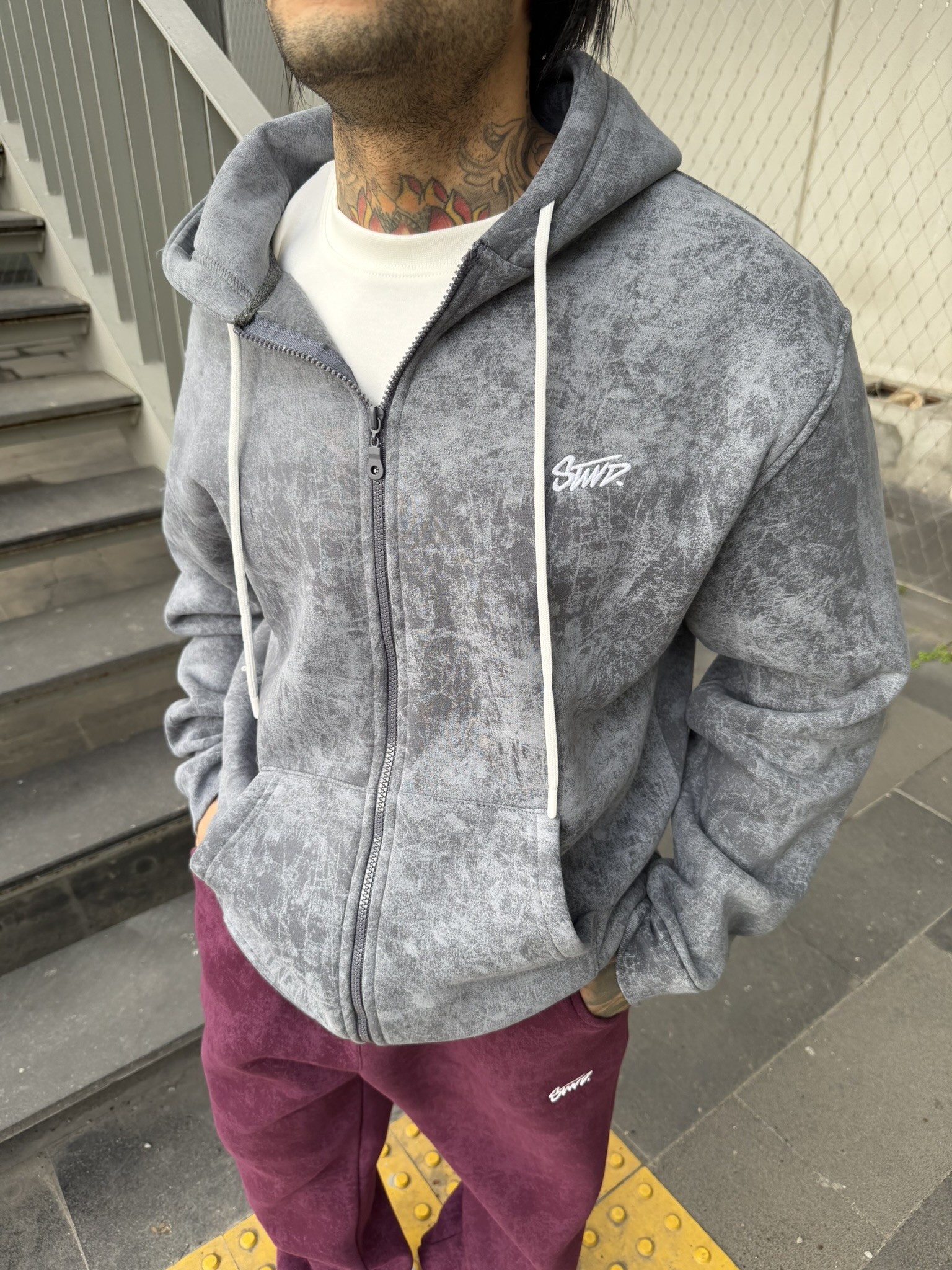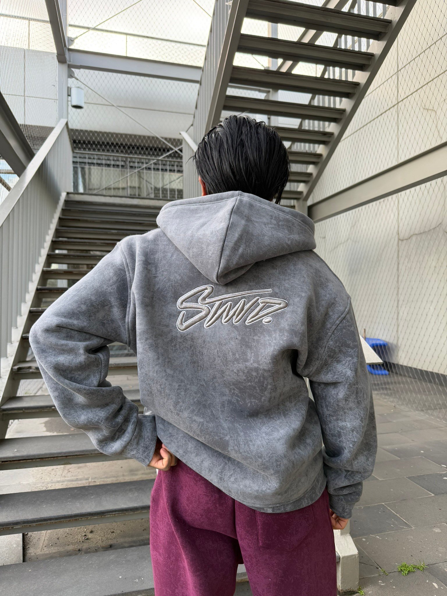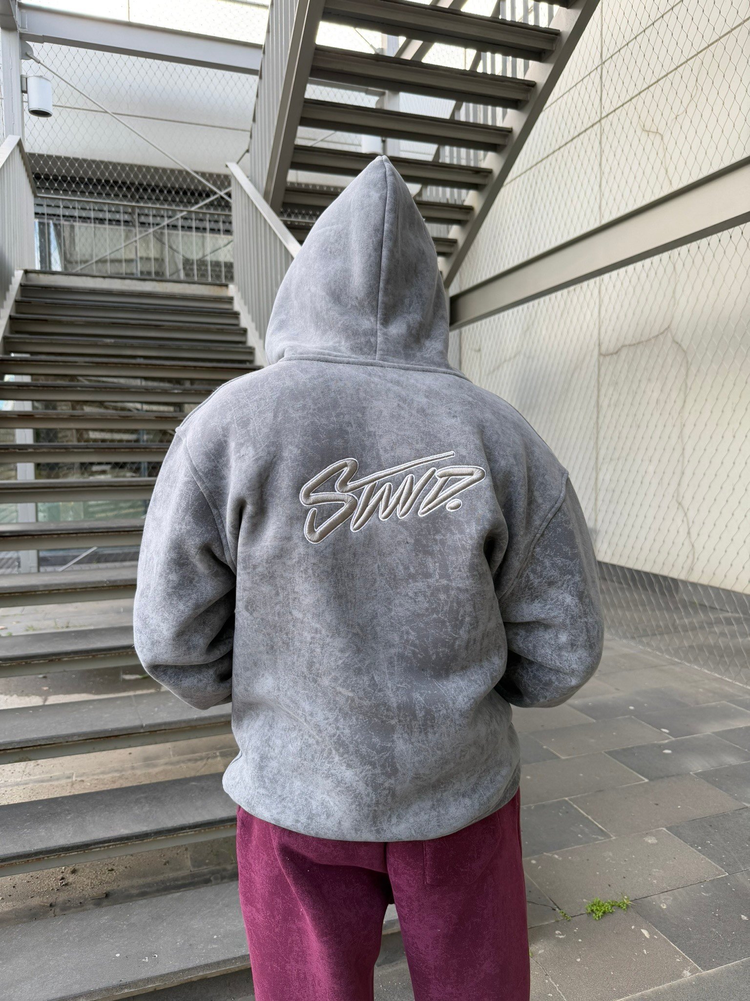 Yıkamalı Sırt Nakışlı Premium Hırka - Gri (HRK.0010-Gri-S)