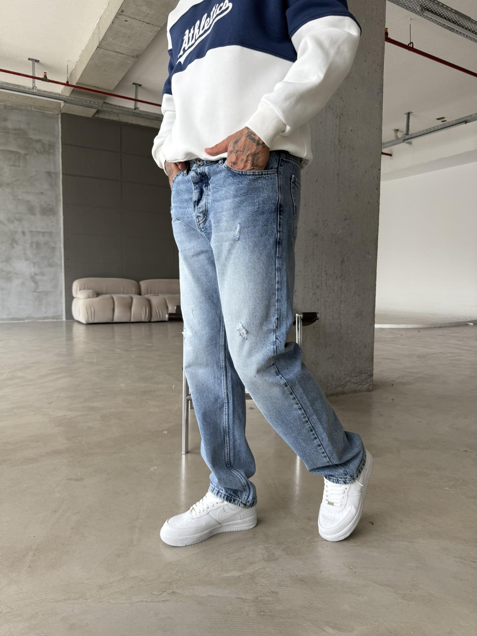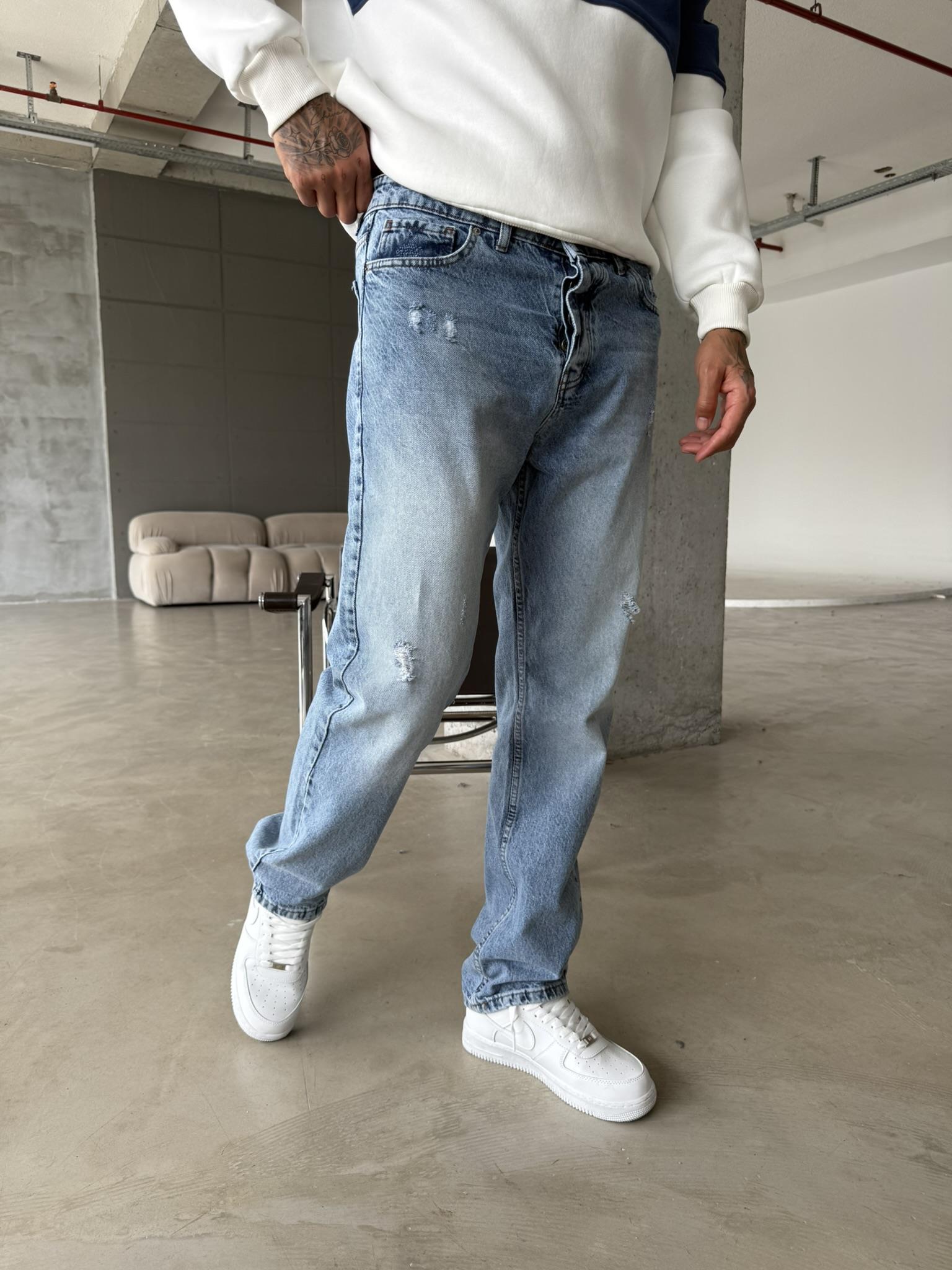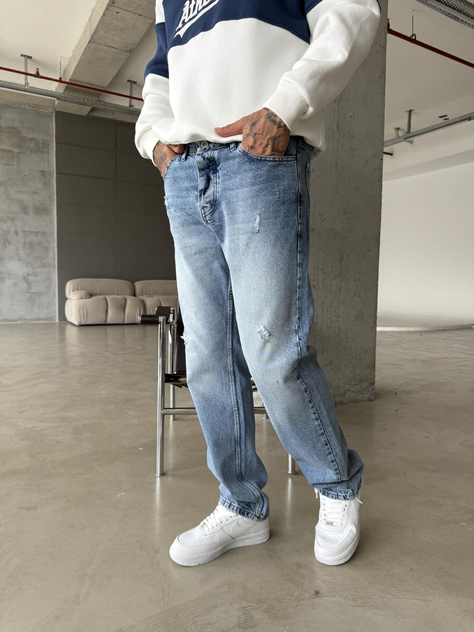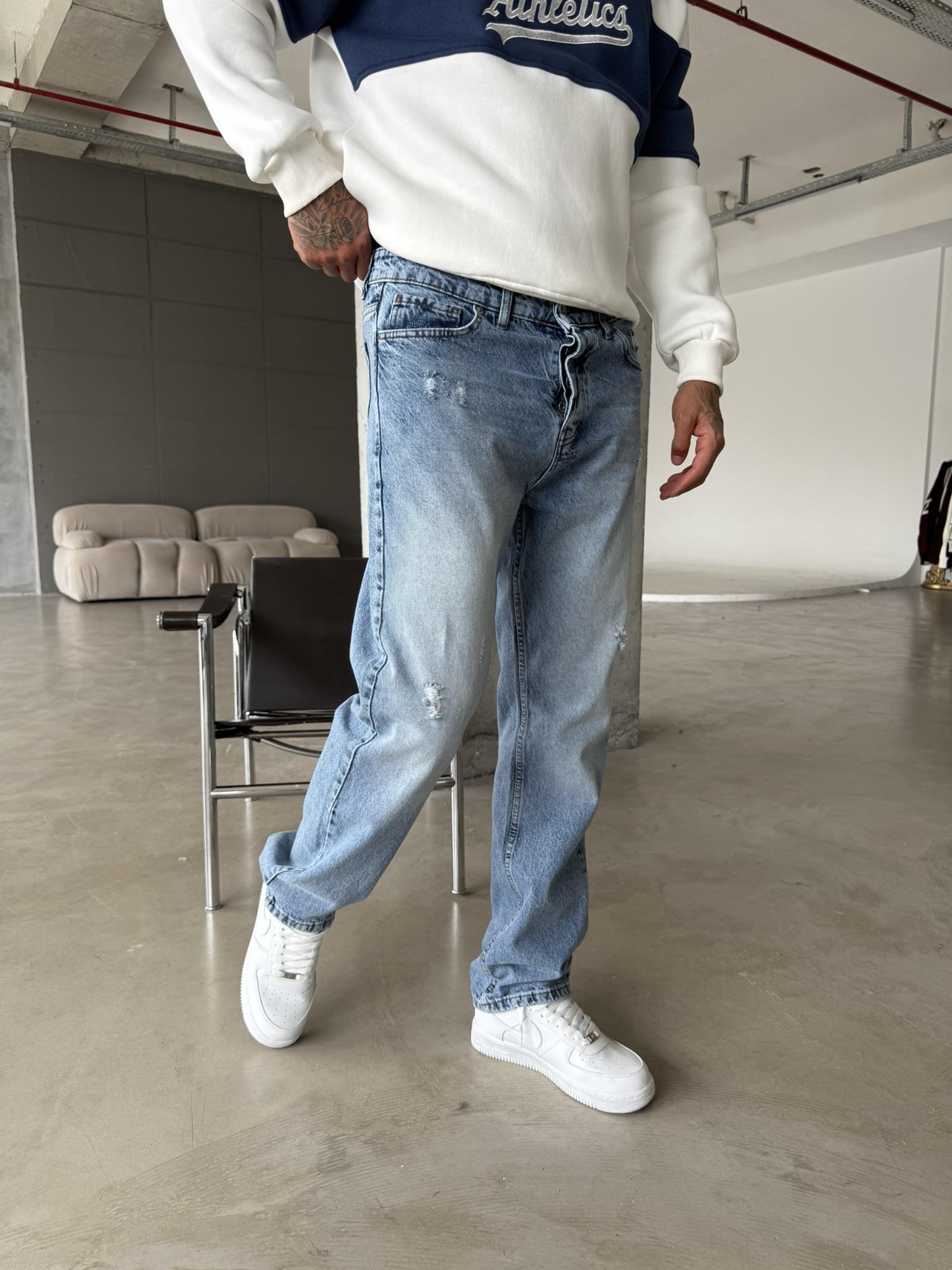 Yırtık Detaylı Koyu Baggy Pantolon - Mavi (PNT.0050-Mavi-29)