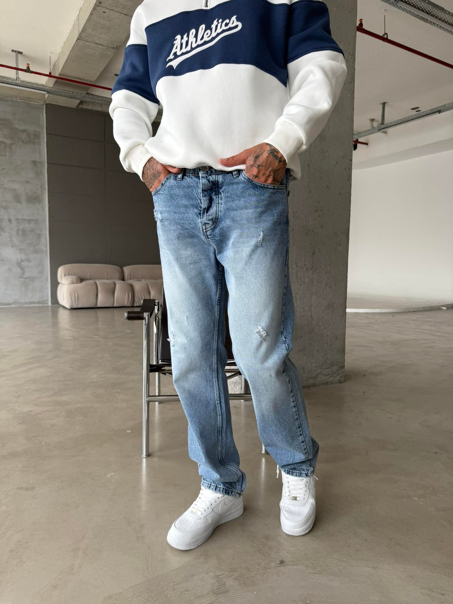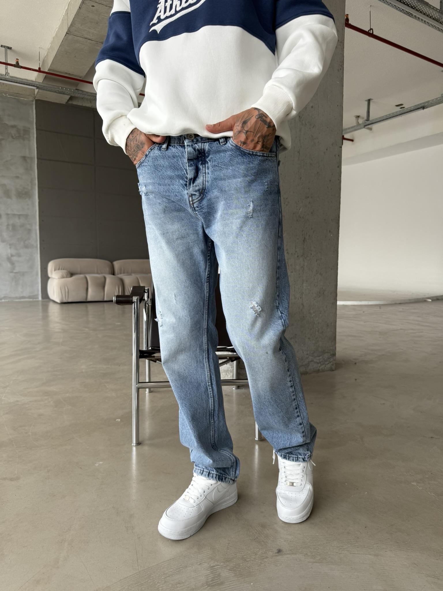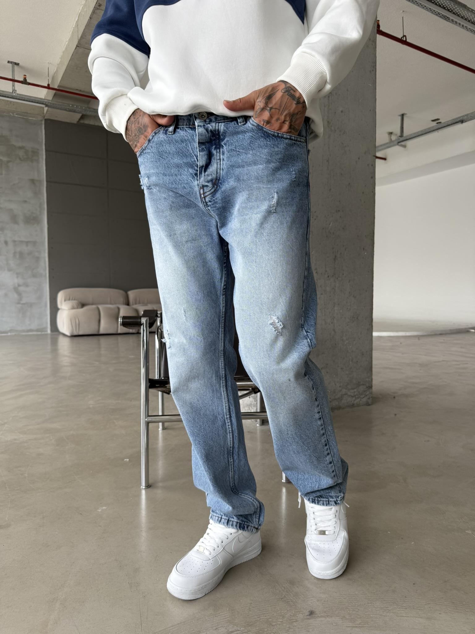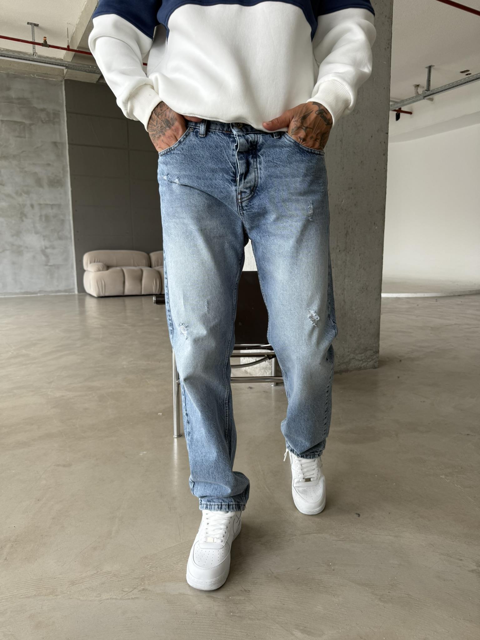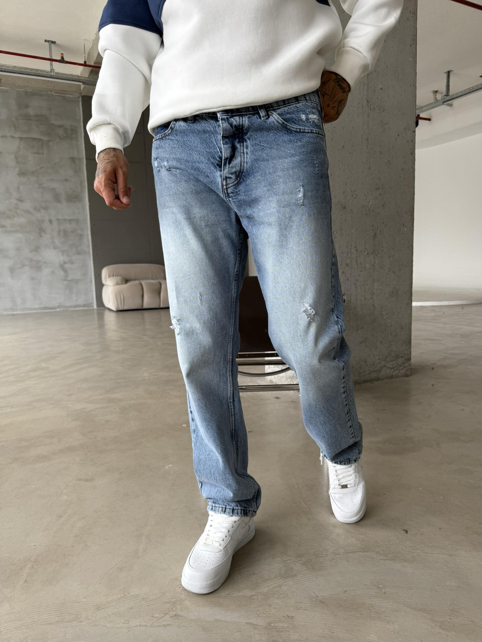 Yırtık Detaylı Koyu Baggy Pantolon - Mavi (PNT.0050-Mavi-29)