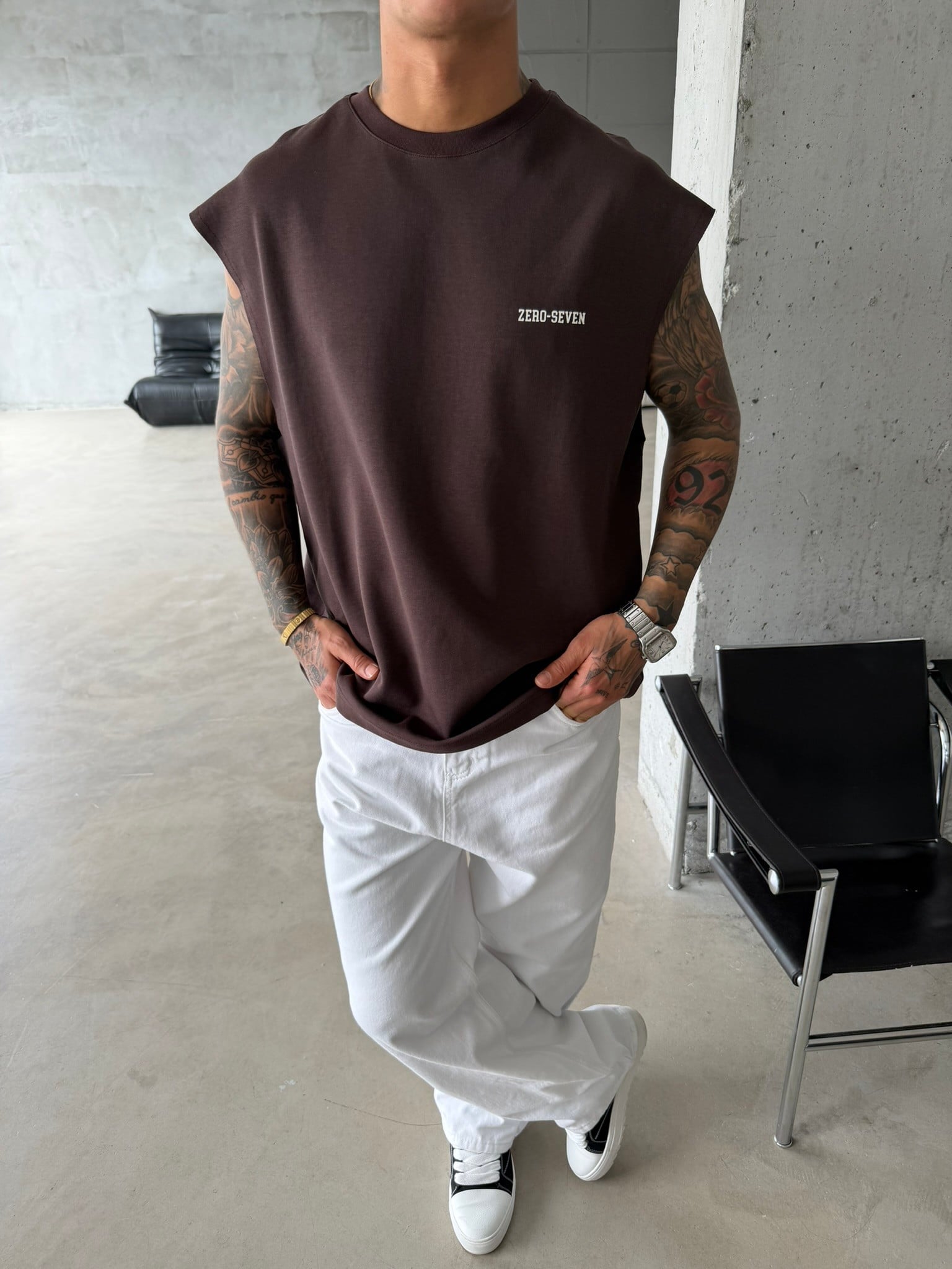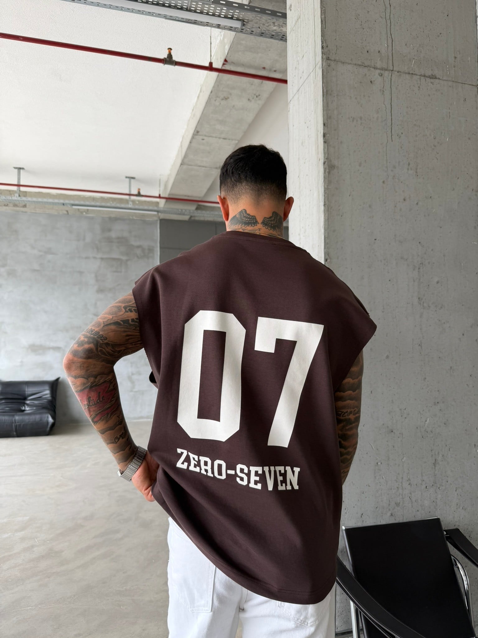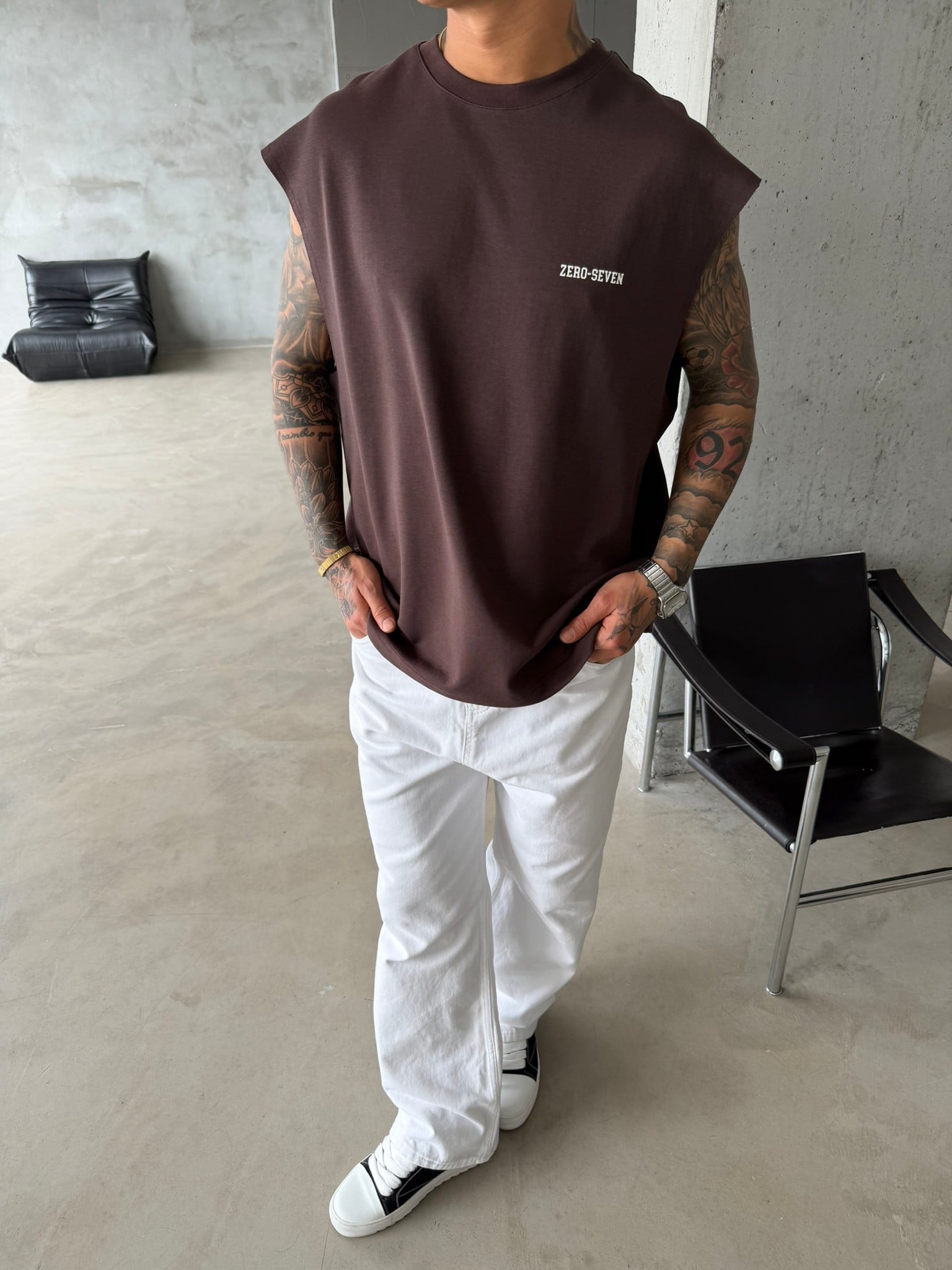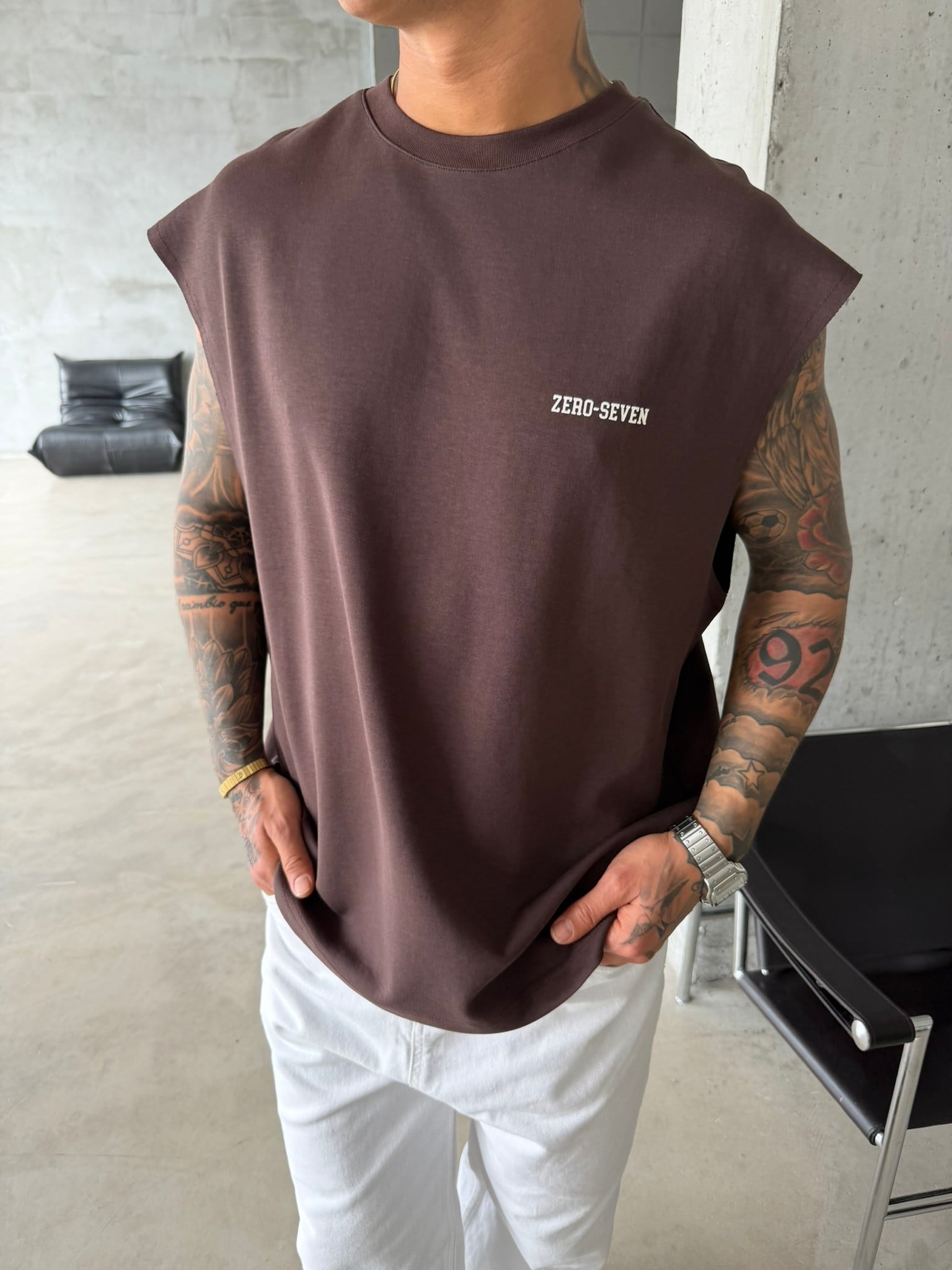 Zero Seven Premium Sıfır Kol T-Shirt - Kahve (TST.0157-Kahve-S)